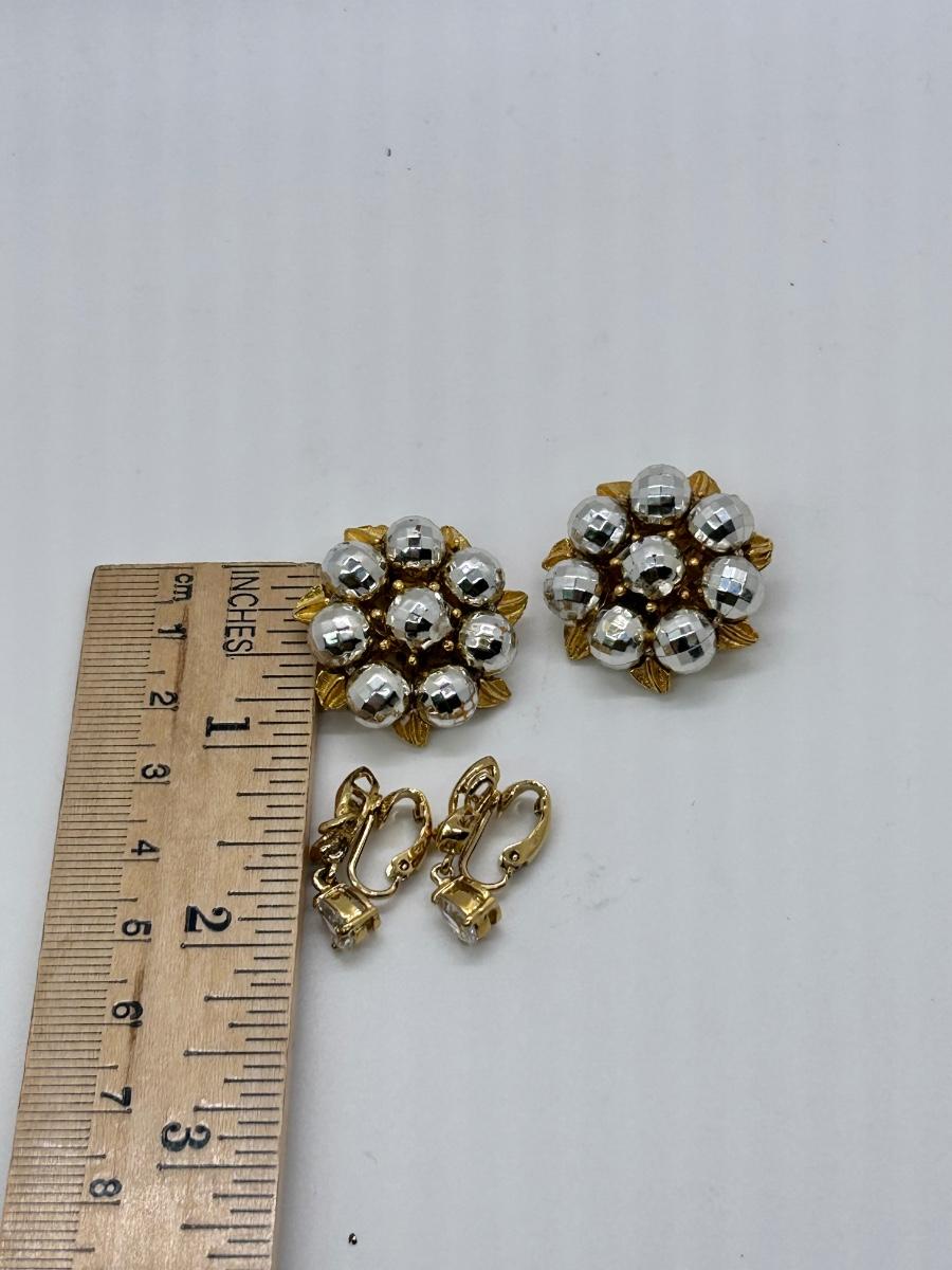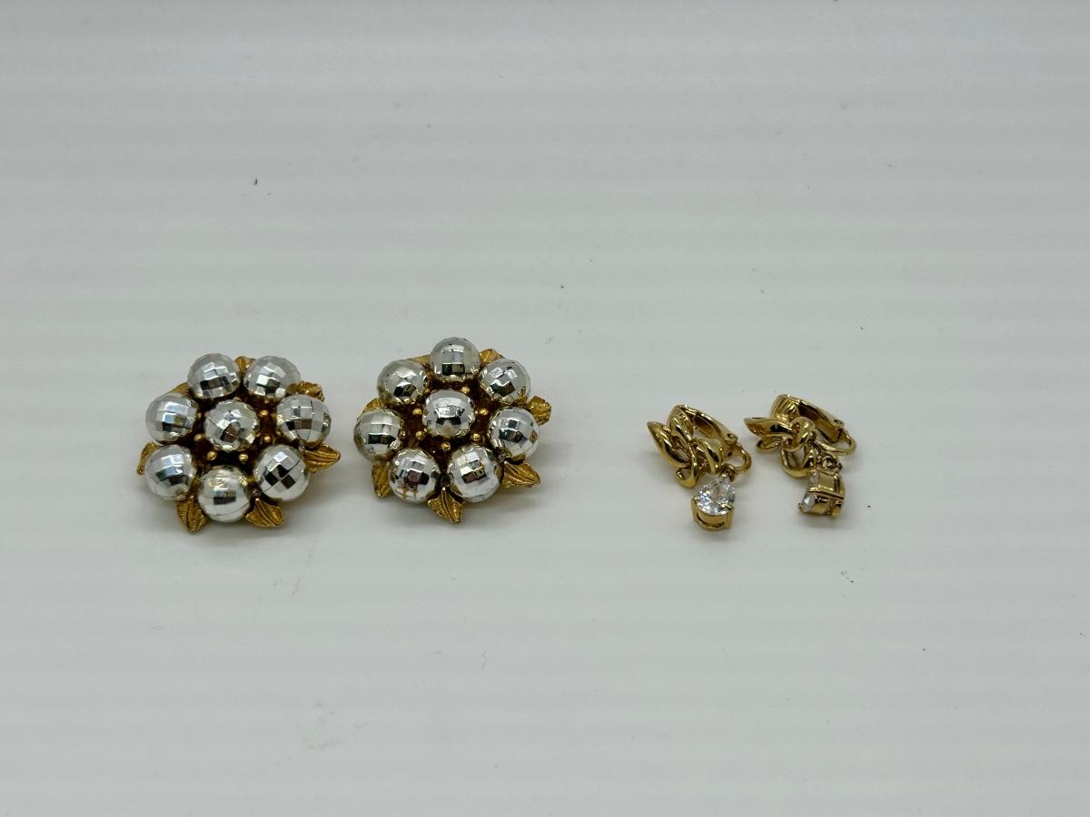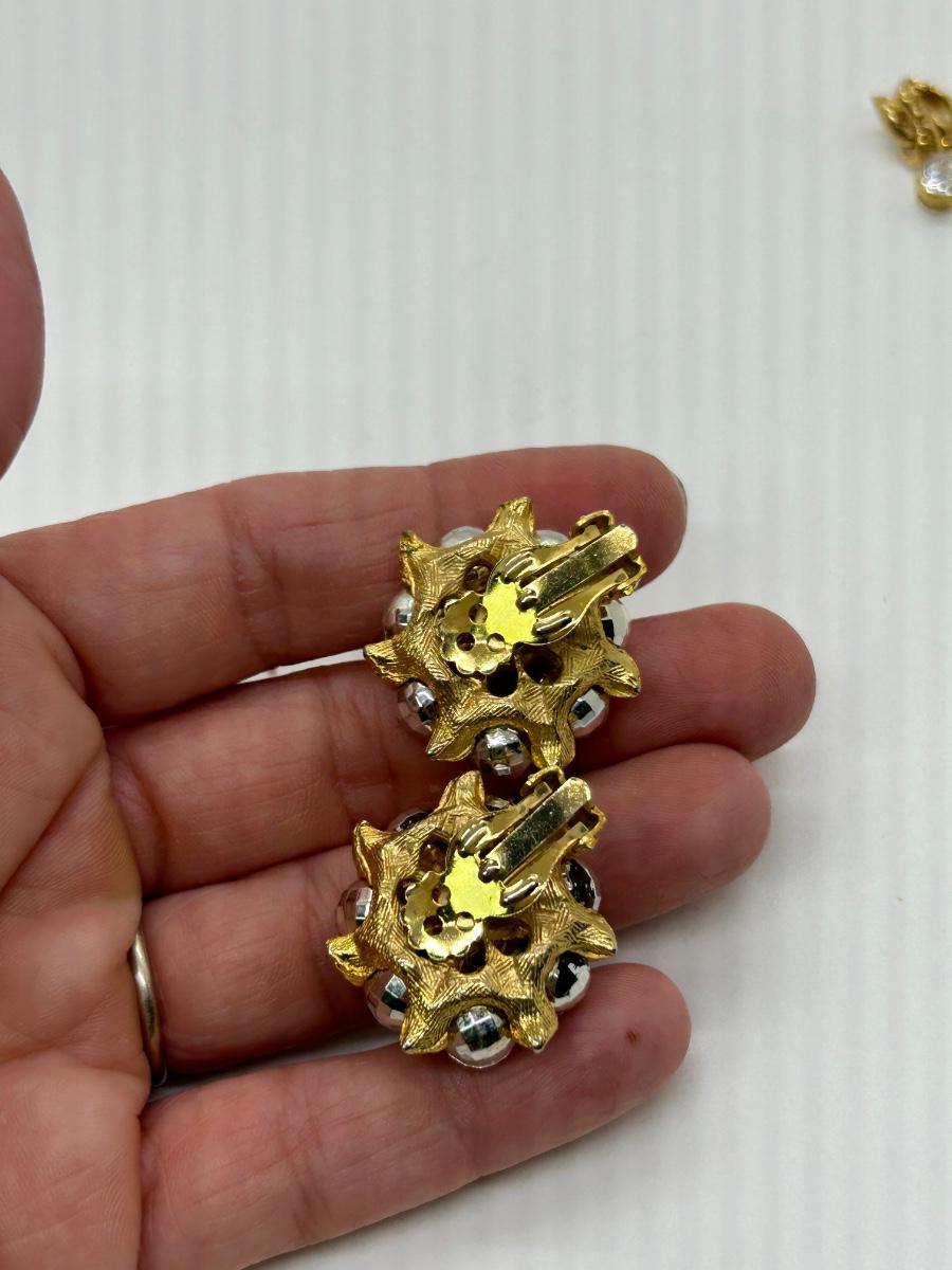 Two Pairs of Vintage Clip Style Earrings Dangling CZ and Metallic Bead Cluster. Both pairs are in good condition. Unbranded.
