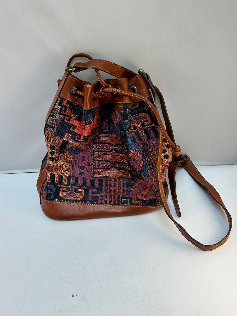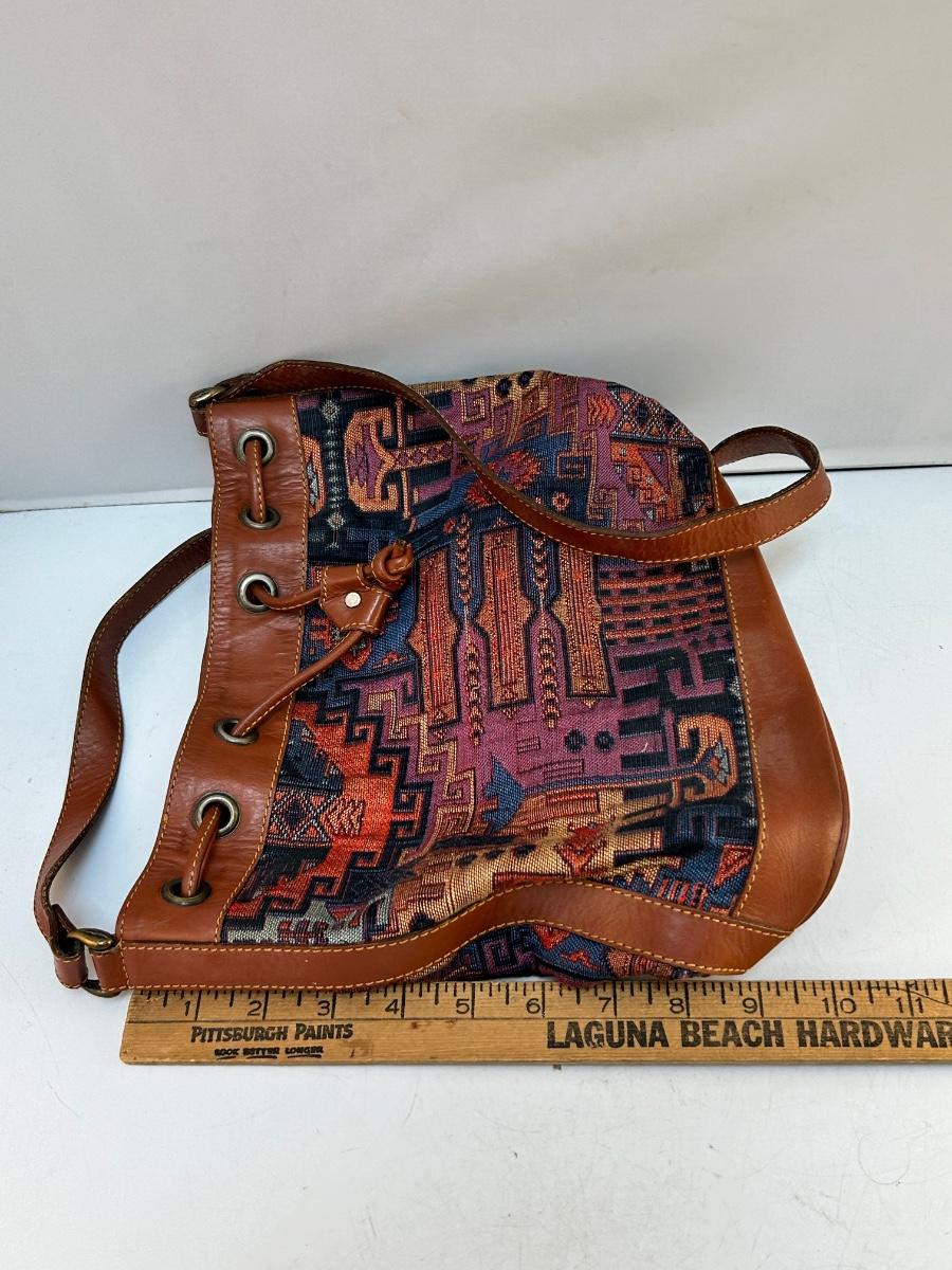 Retro Southwestern Style Tapestry Drawstring Hand Bag Purse Hat-Men Made in Turkey. In good used condition.