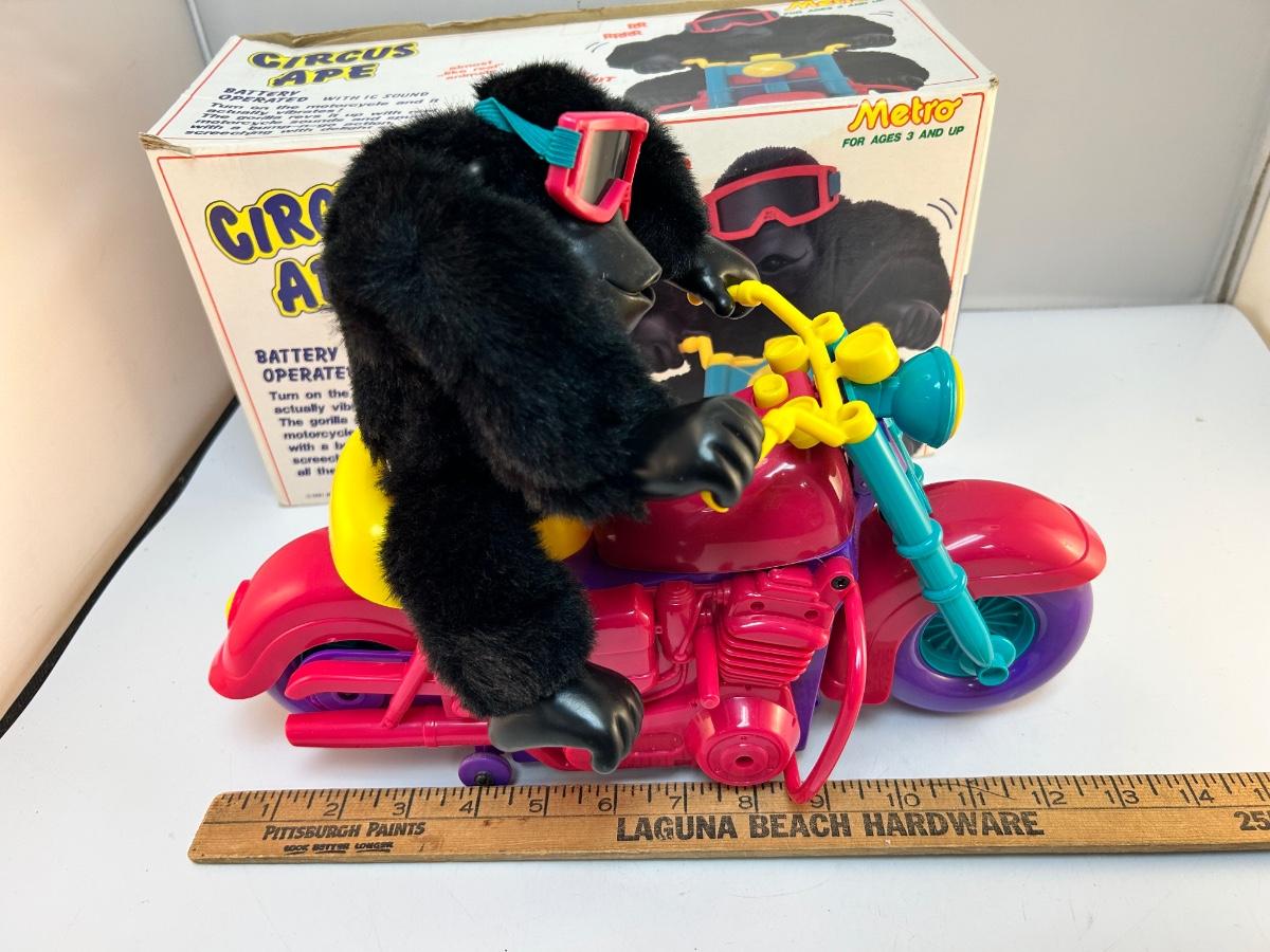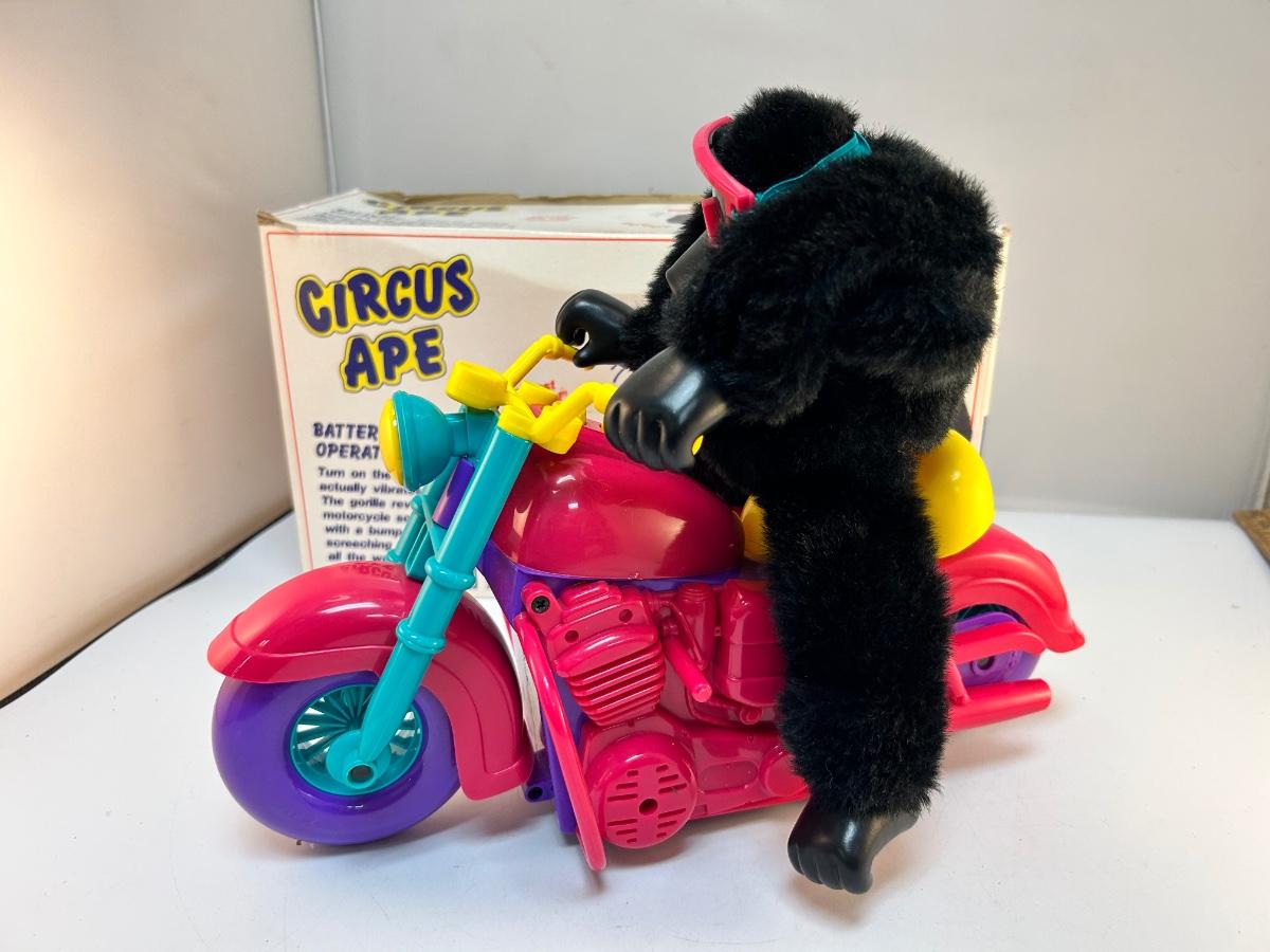 Vintage Retro Battery Operated Circus Ape Animatronic Motorcycle Riding Gorilla