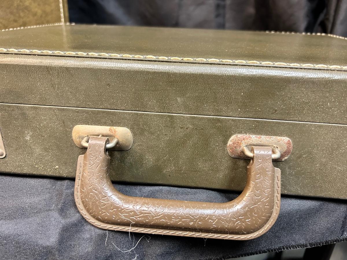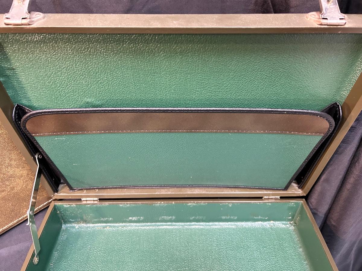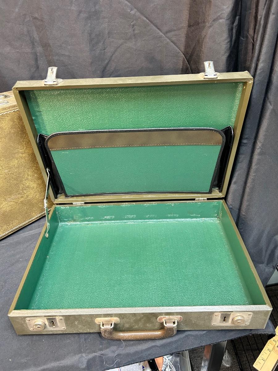 Pair of Vintage Olive Green Vinyl Hard Side Briefcases