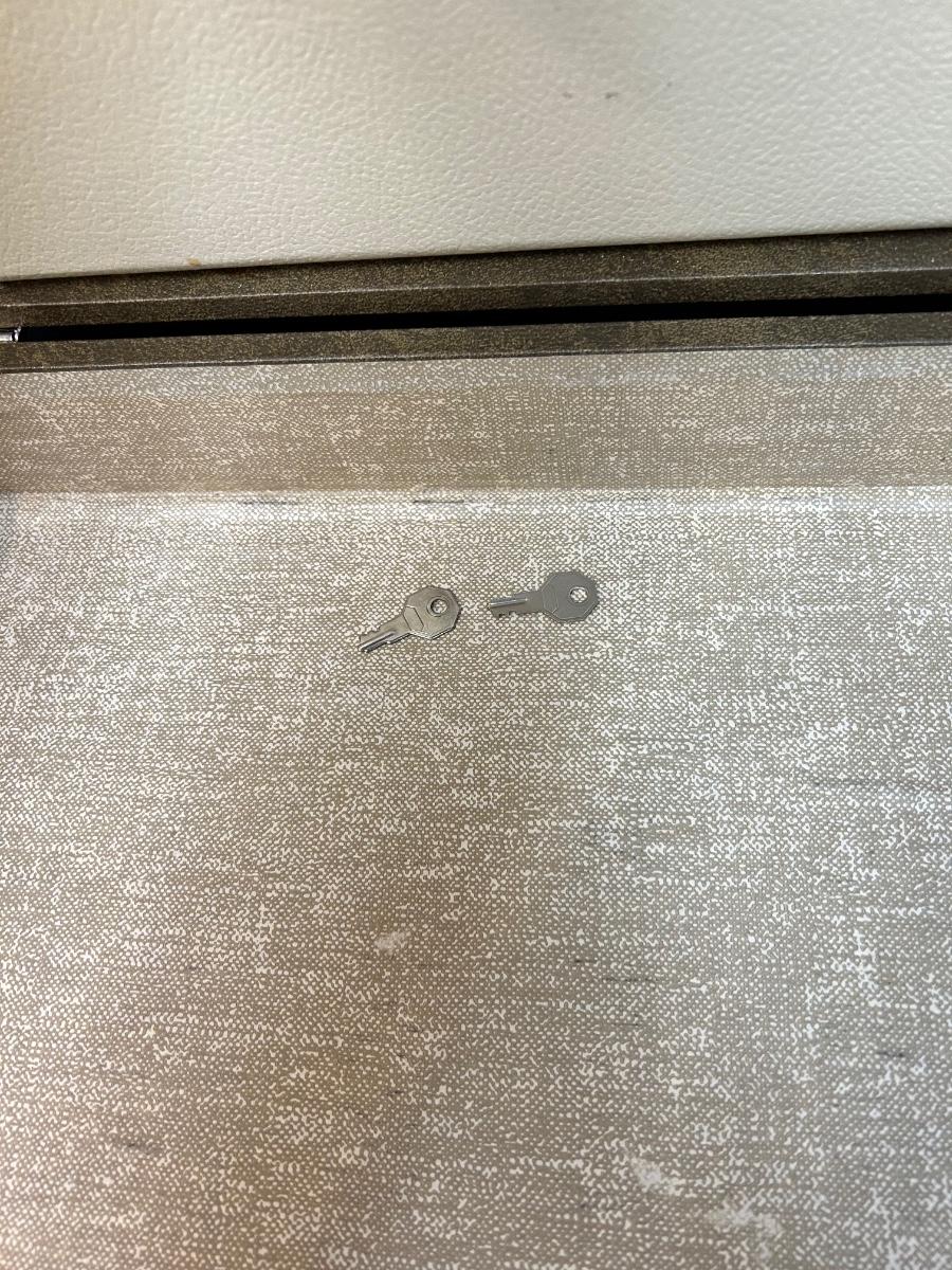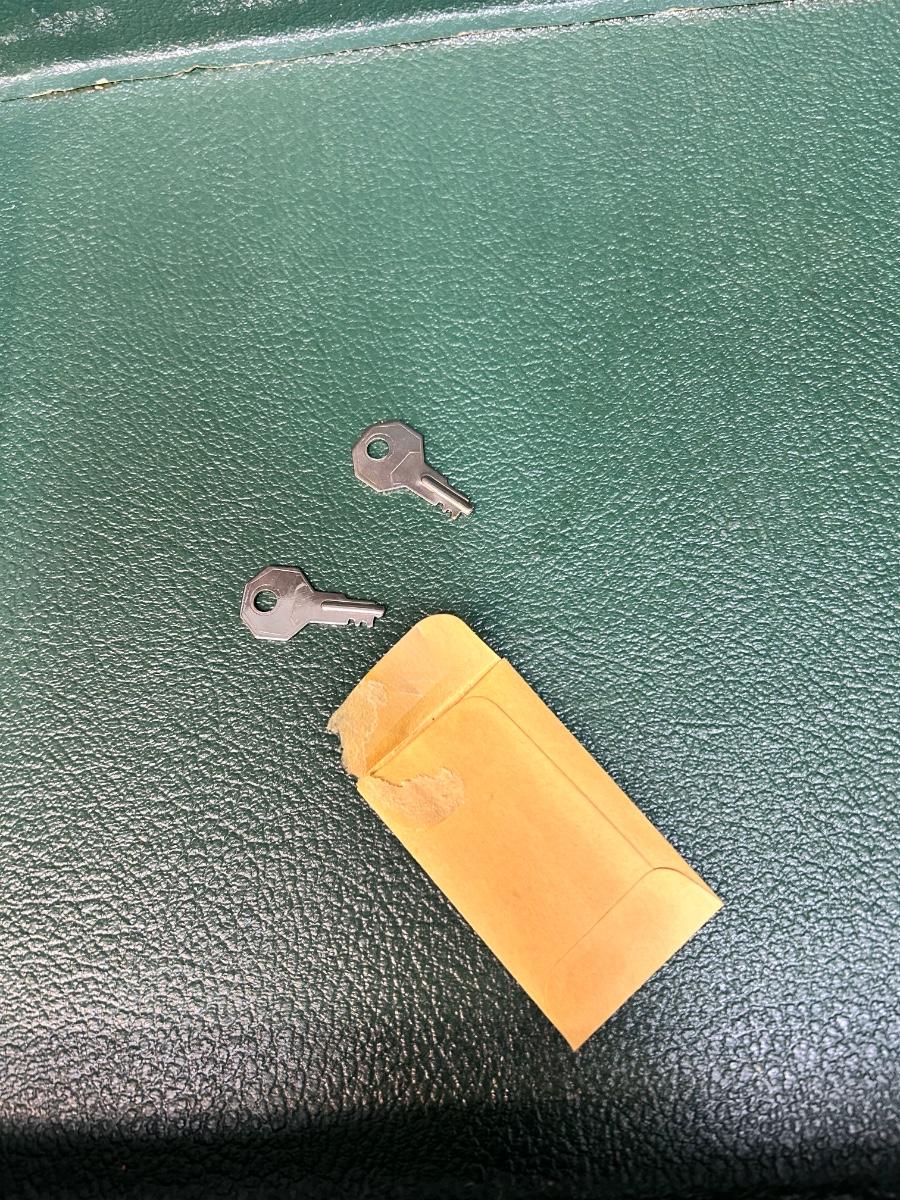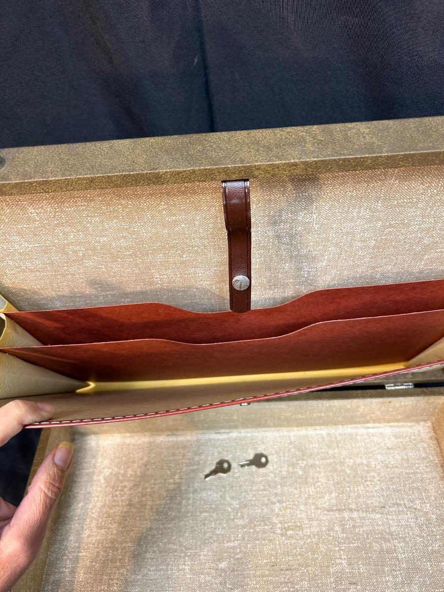 Pair of Vintage Olive Green Vinyl Hard Side Briefcases. In good vintage condition, a little dusty. Latches work well and both have keys for the locks.