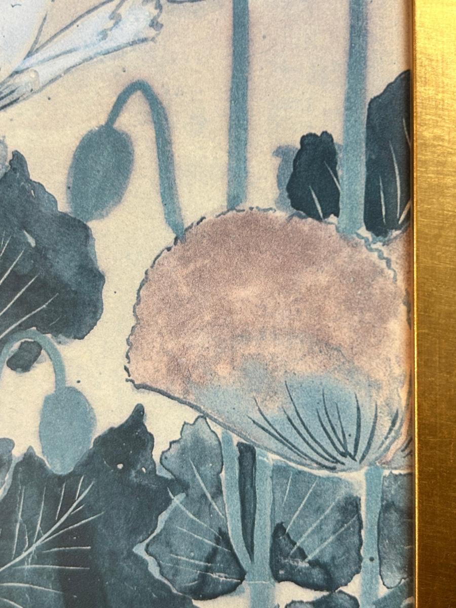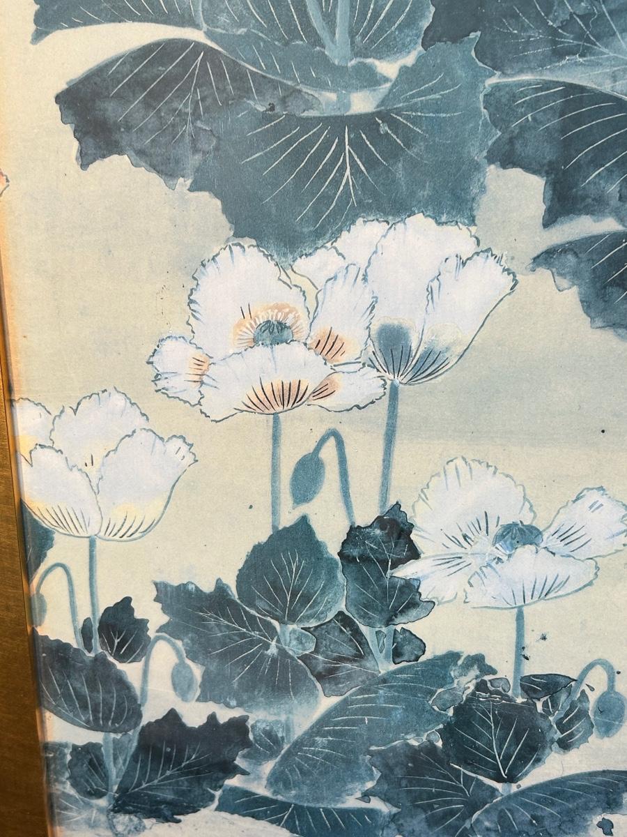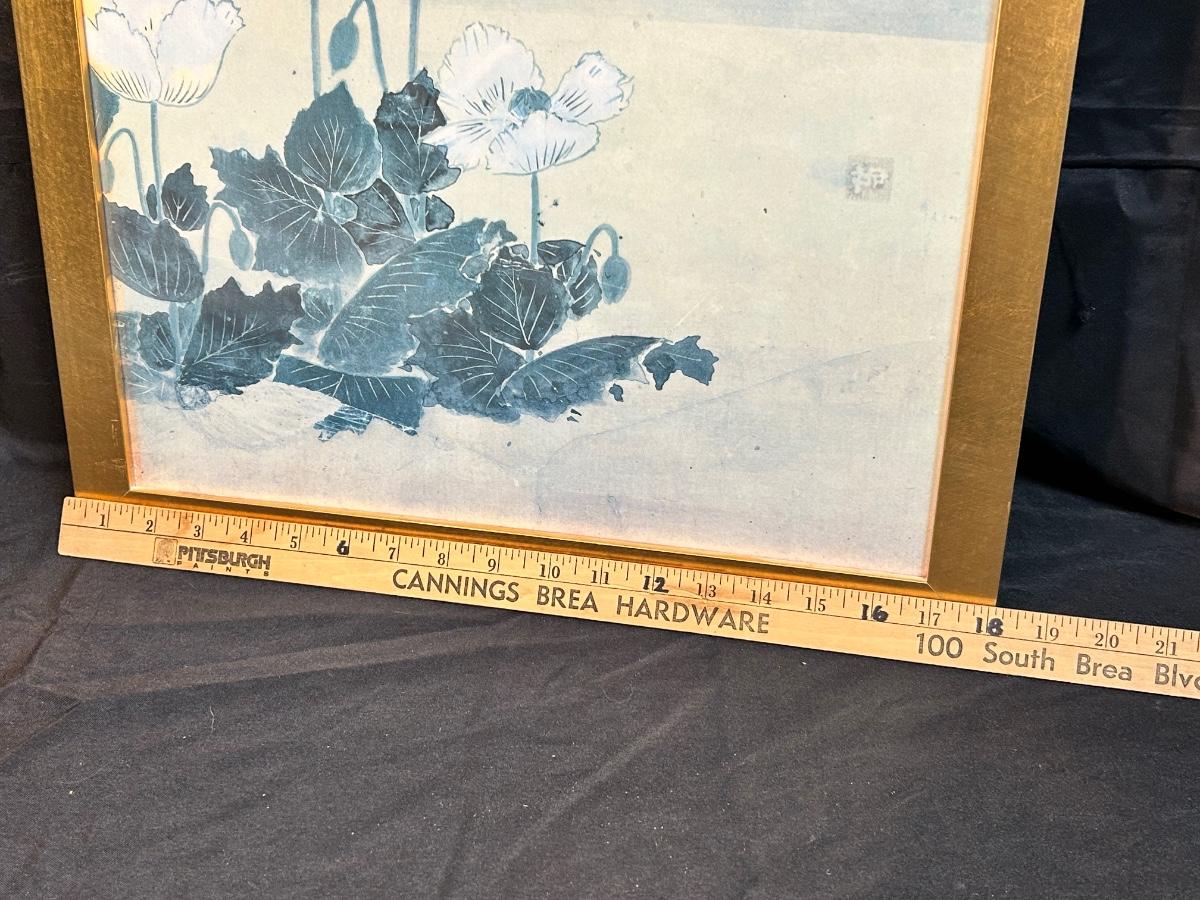Frame Art Print MMA MET Museum POPPIES in Style of Sosetsu Japanese 17th Century. In good condition. Original artwork would have been done with mineral colors on gold leaf paper. About 18"x40" size.