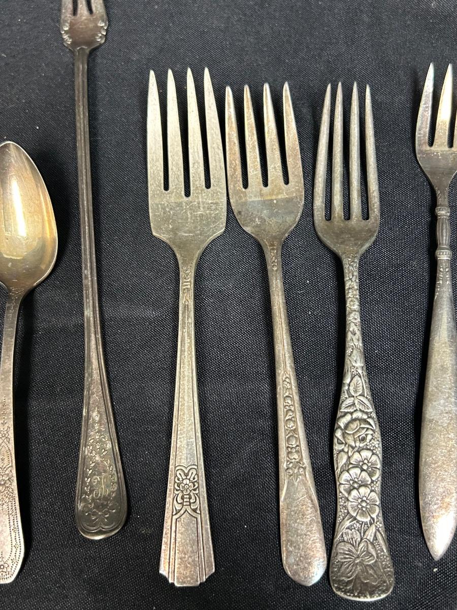 Mixed Fork and Spoon Lot for Use or Crafting. Great variety, some with neat handles. Great for crafting and jewelry making. No sterling pieces.