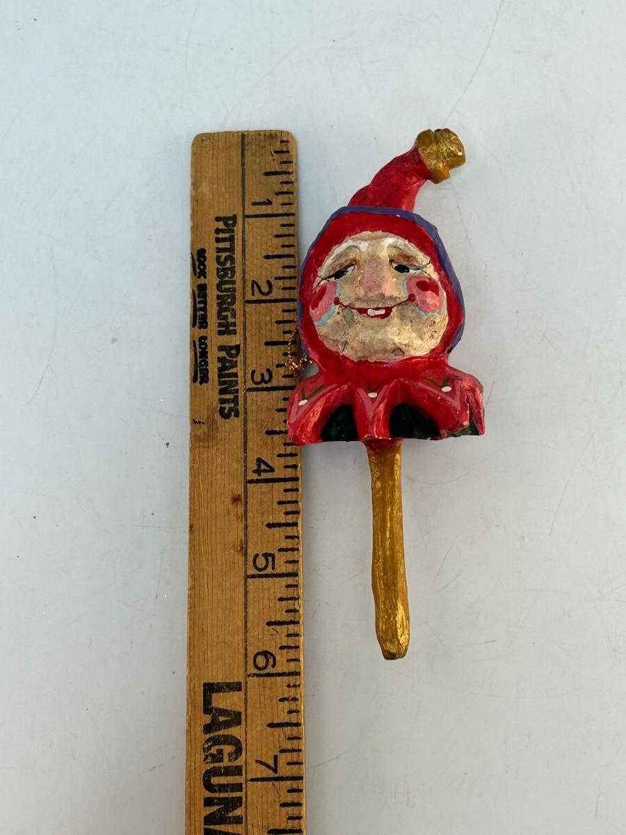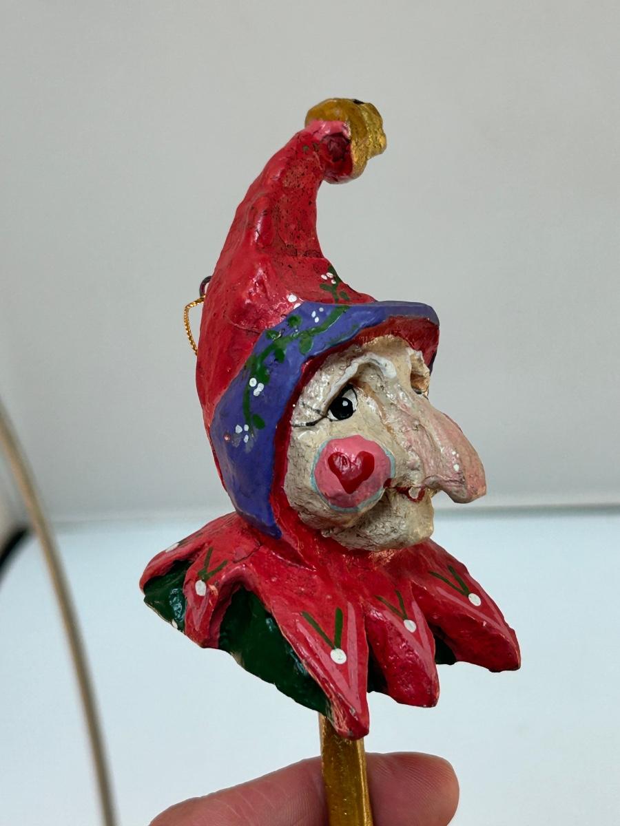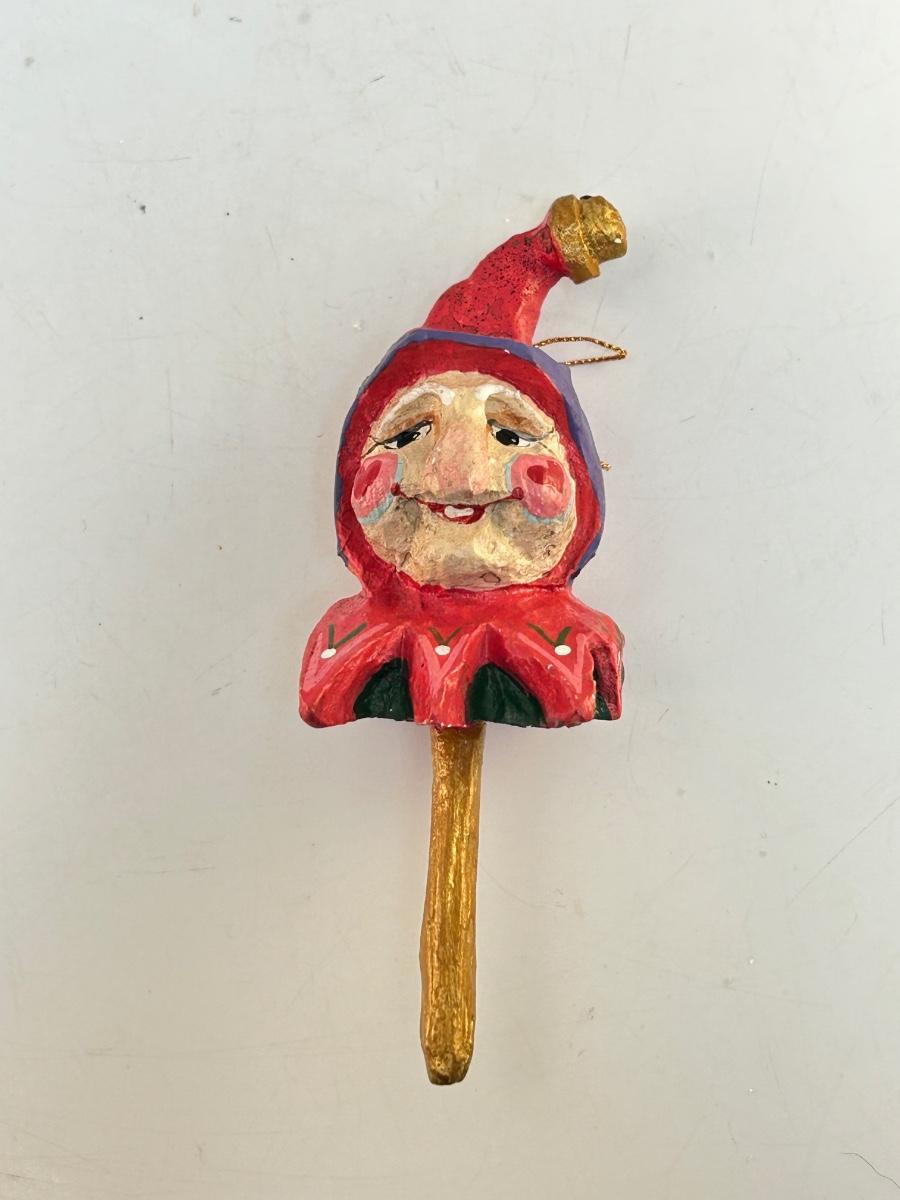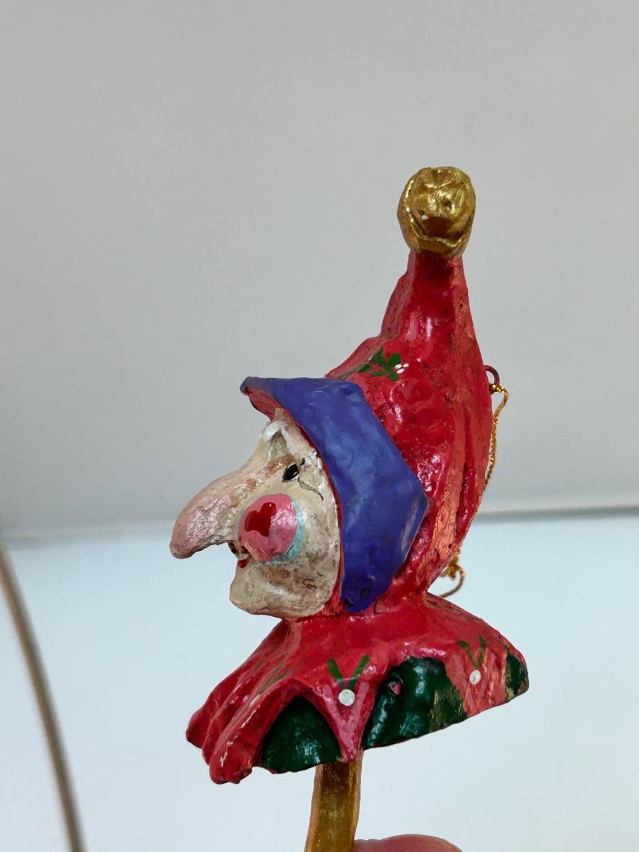 Vintage Folk Art House of Hatten Stick Jester Elf Clown Christmas Holiday Tree Ornament