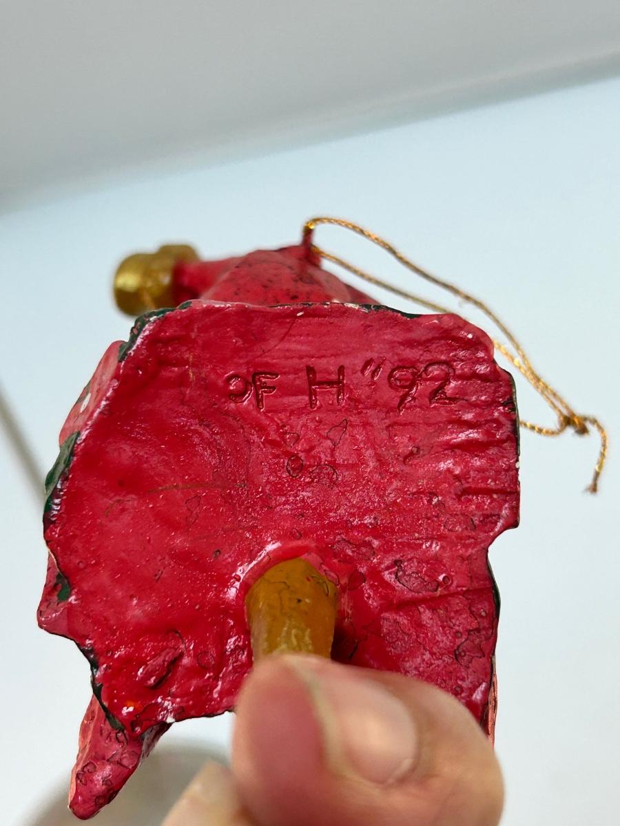 Vintage Folk Art House of Hatten Stick Jester Elf Clown Christmas Holiday Tree Ornament. In good condition. About 6" size. Dated 1992.