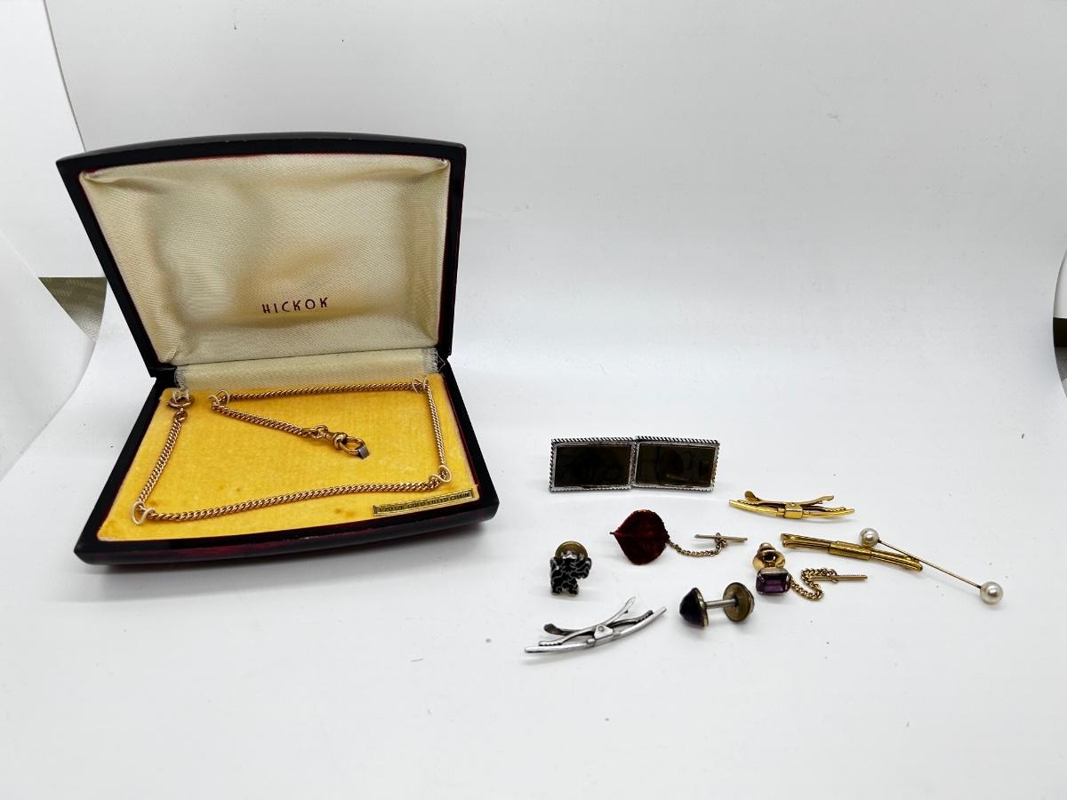Mixed Lot of Miscellaneous Men's Jewelry Cuff Links Watch Chain Tie Clips Pins