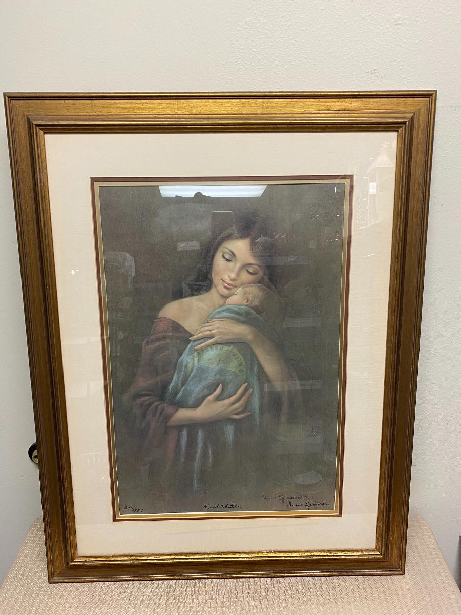 1978 Irene Spencer Mother & Child Framed Art Signed Numbered. Titled "First Edition", #544/550, signed by artist. Large size, about 28"x36".