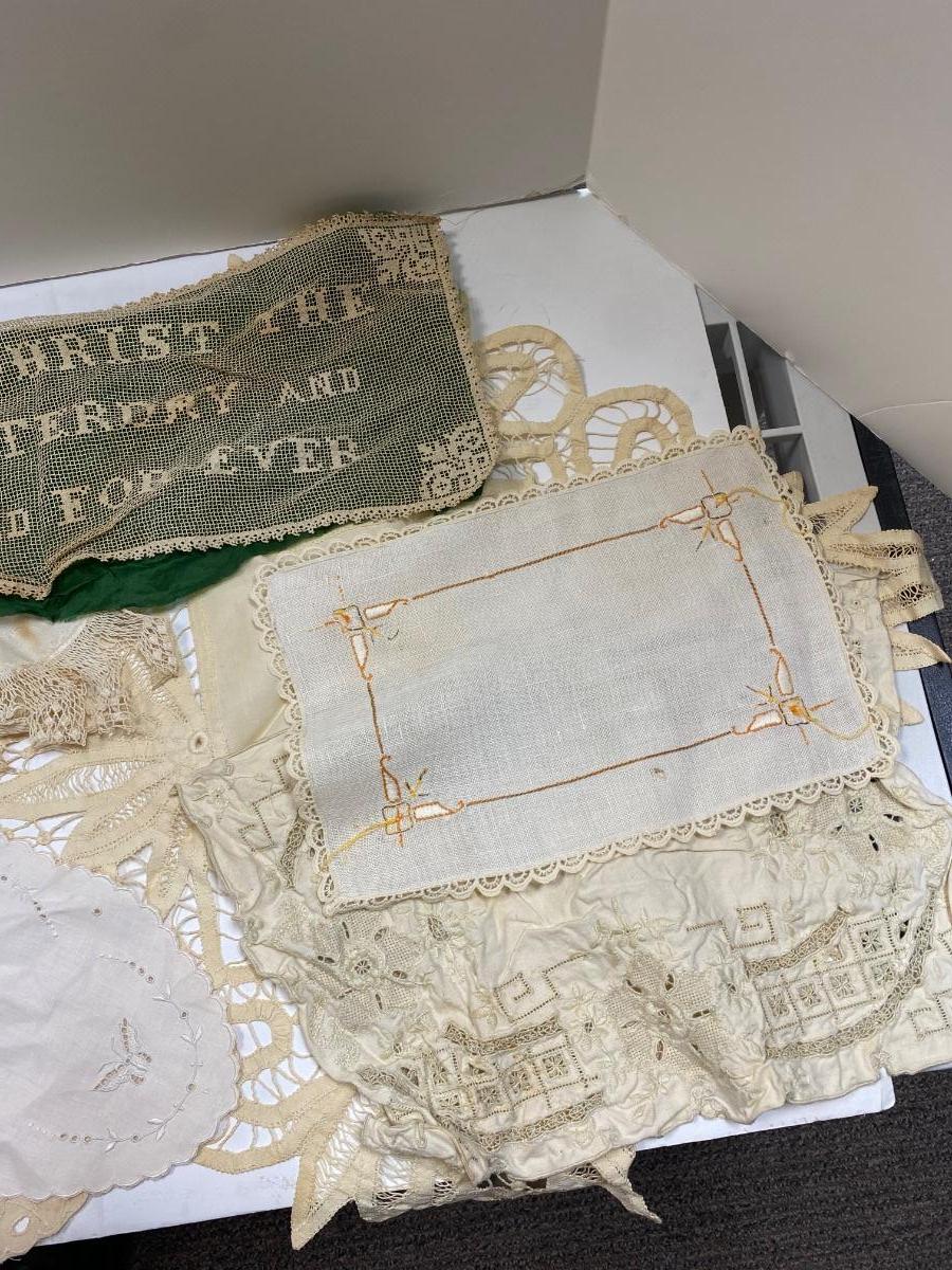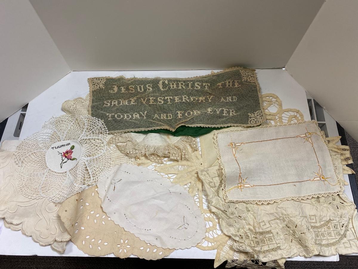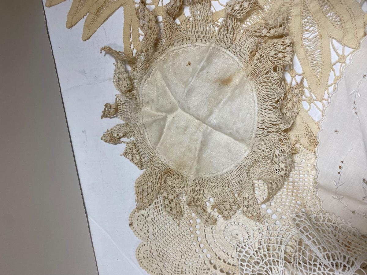 Mixed Lot of Vintage Doily Table Protectors. Various styles and sizes. May have spots and discolor.