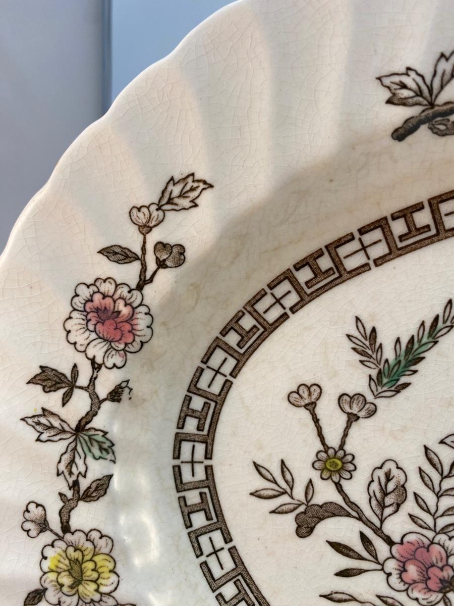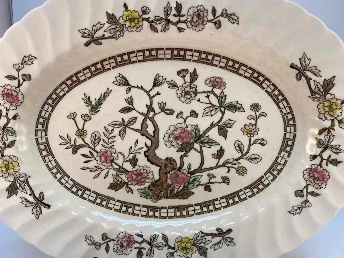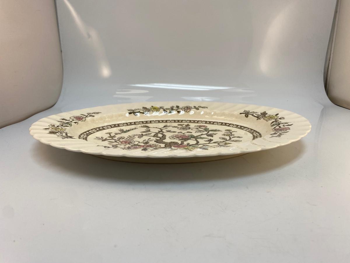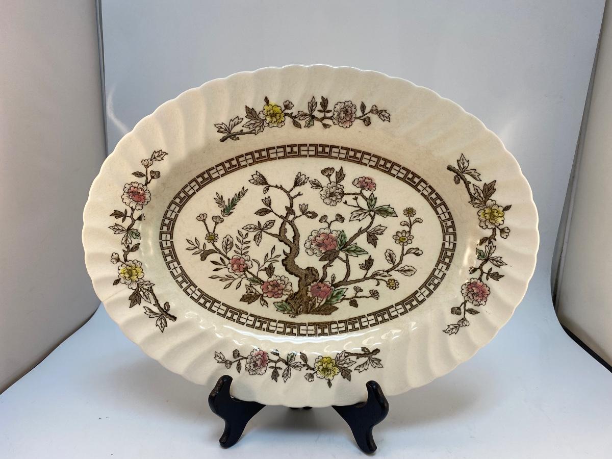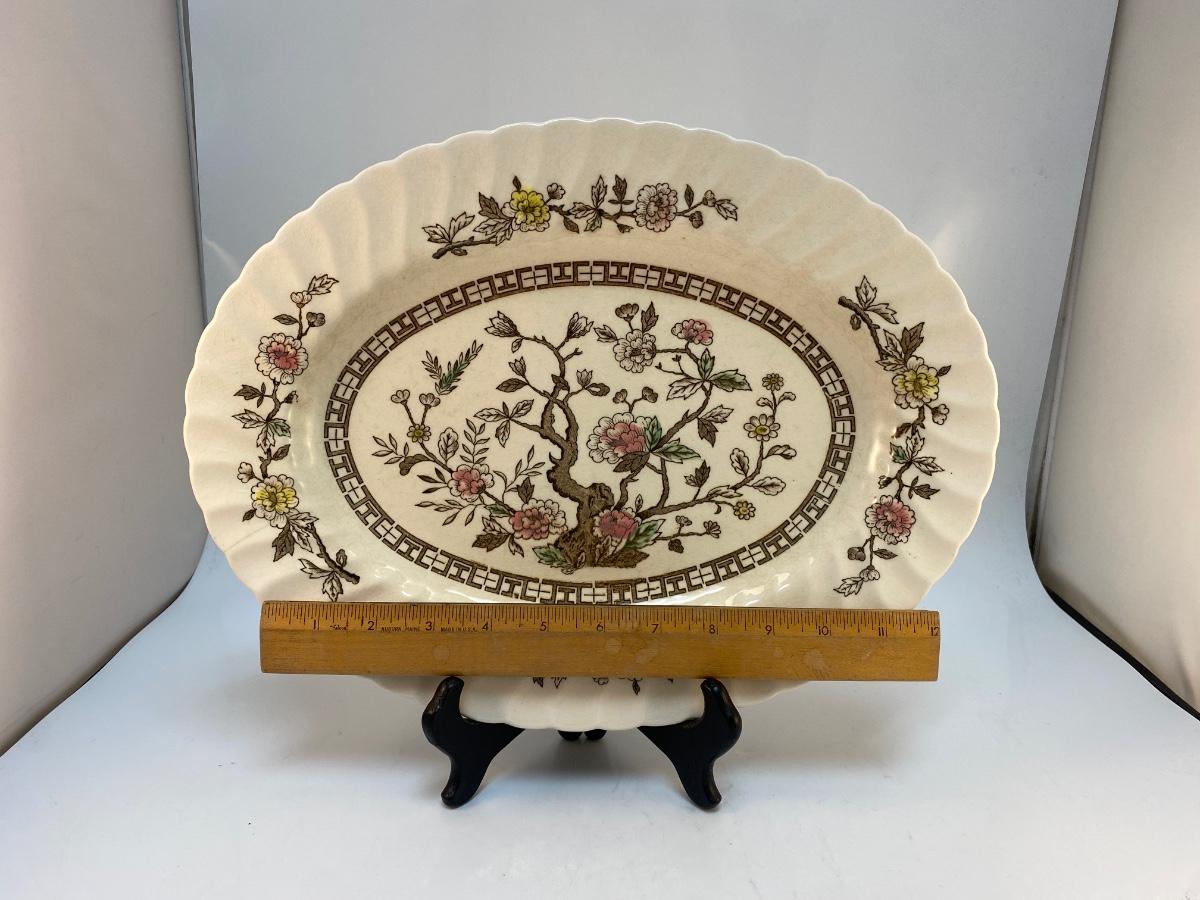 Vintage Earthen Ware Kashmir Tree Hand Engraving Scalloped Edge Serving Platter