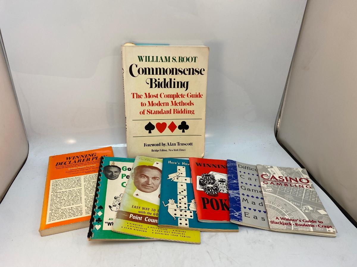 Mixed Lot of Various Learning and Strategy Books on Poker Bridge Dominoes Gambling. In read condition.