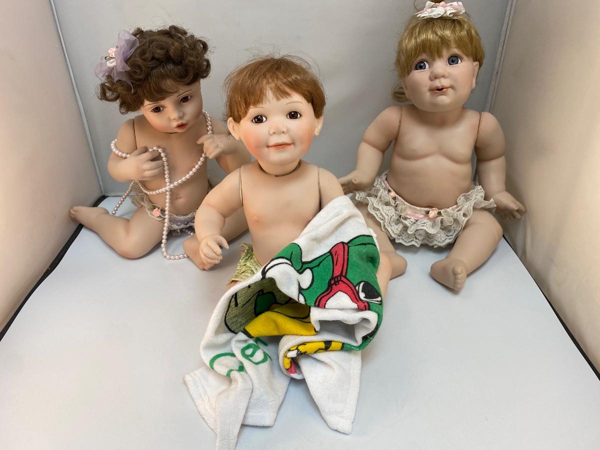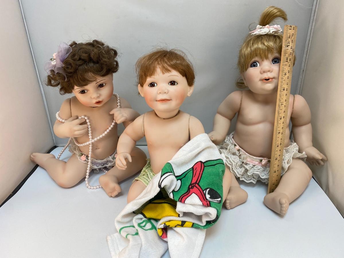 Lot of Three Cute Porcelain Bisque Jointed Body Baby Dolls Ashton Drake