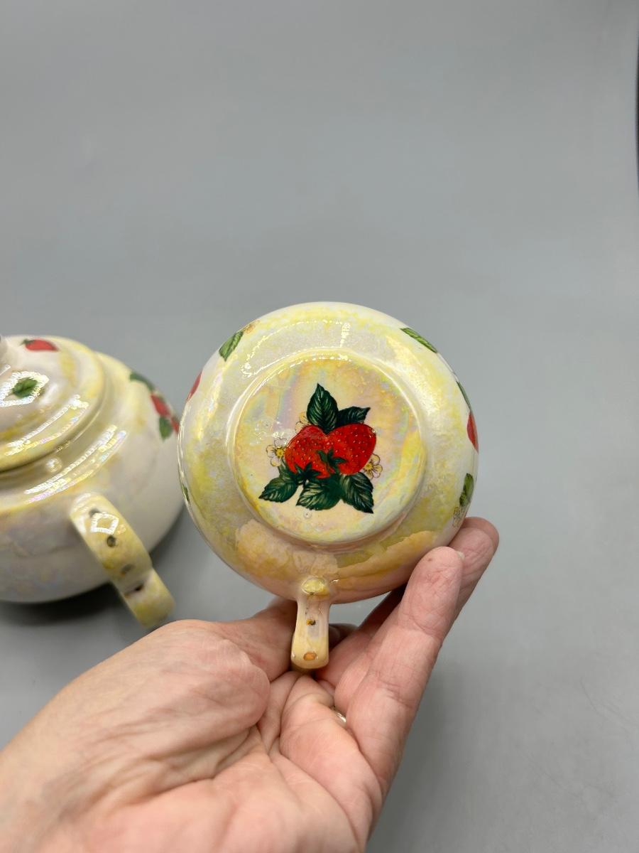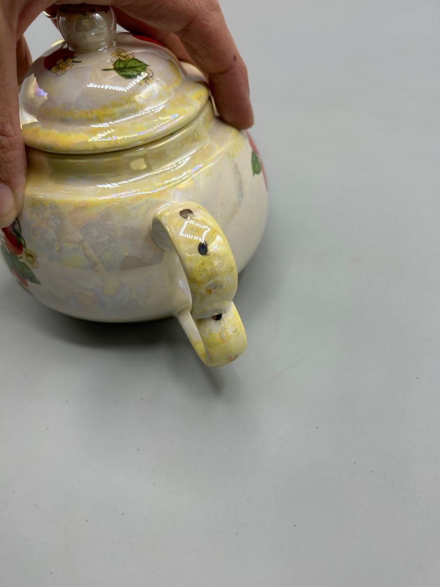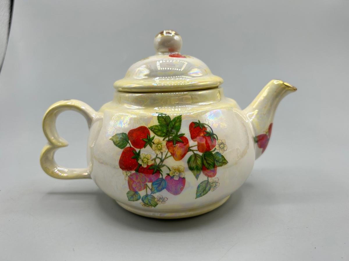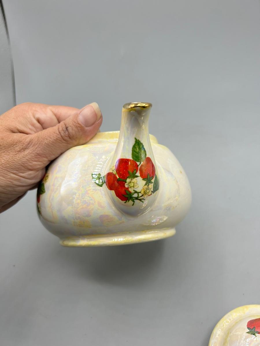 Vintage Nag Original Handmade Handpainted Iridescent Strawberry Pattern Teapot and Matching Teacup