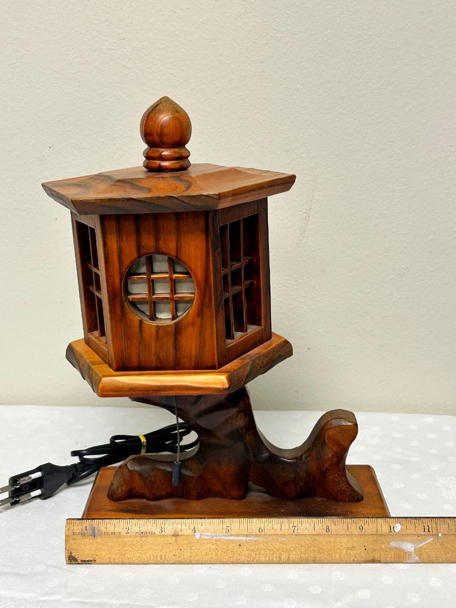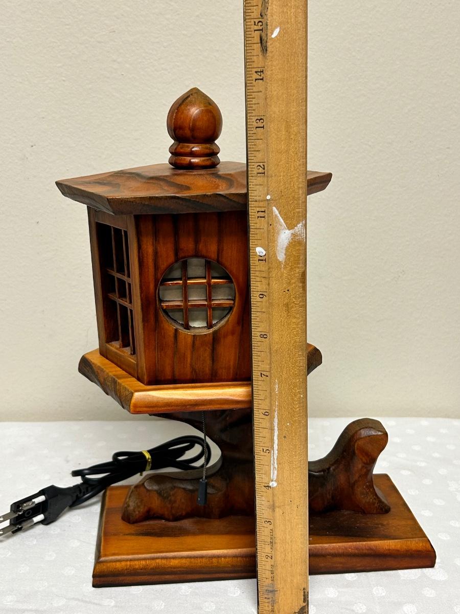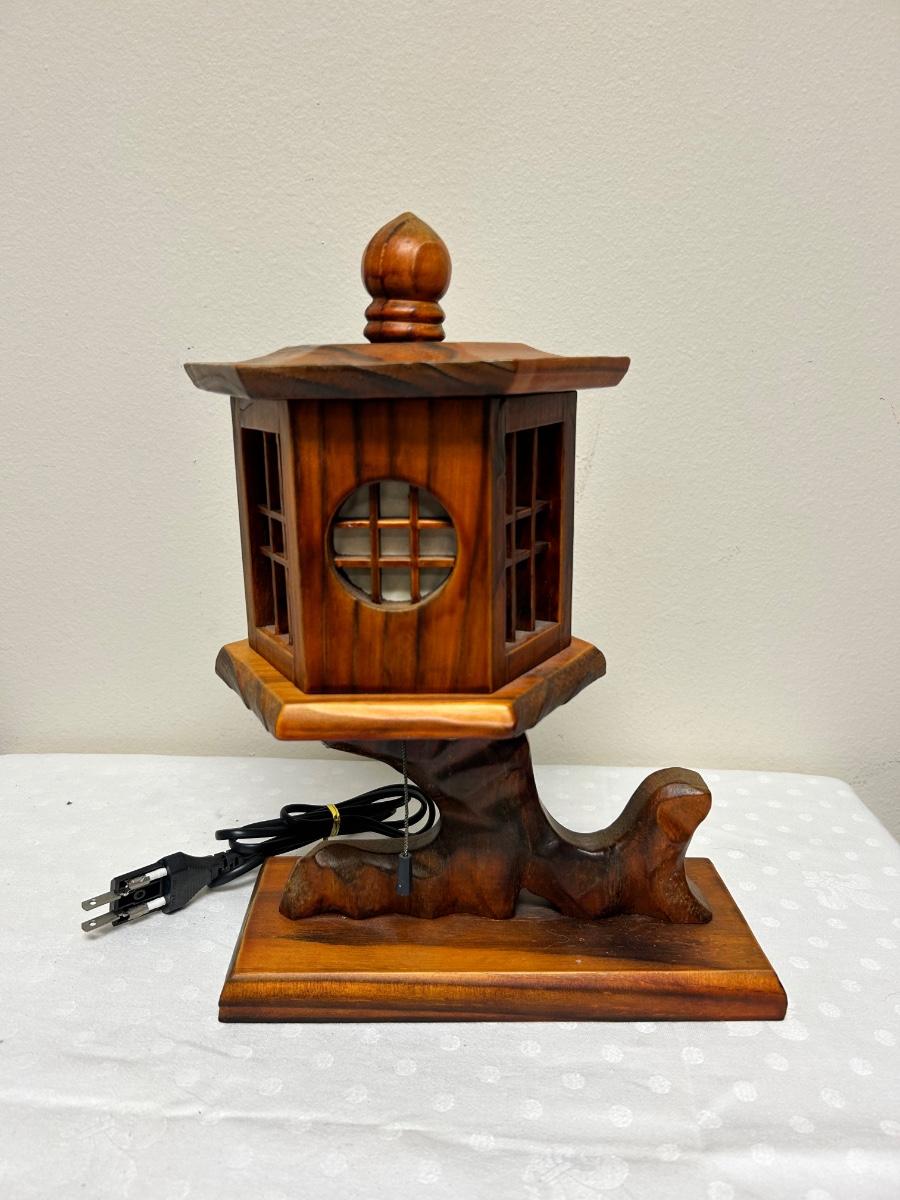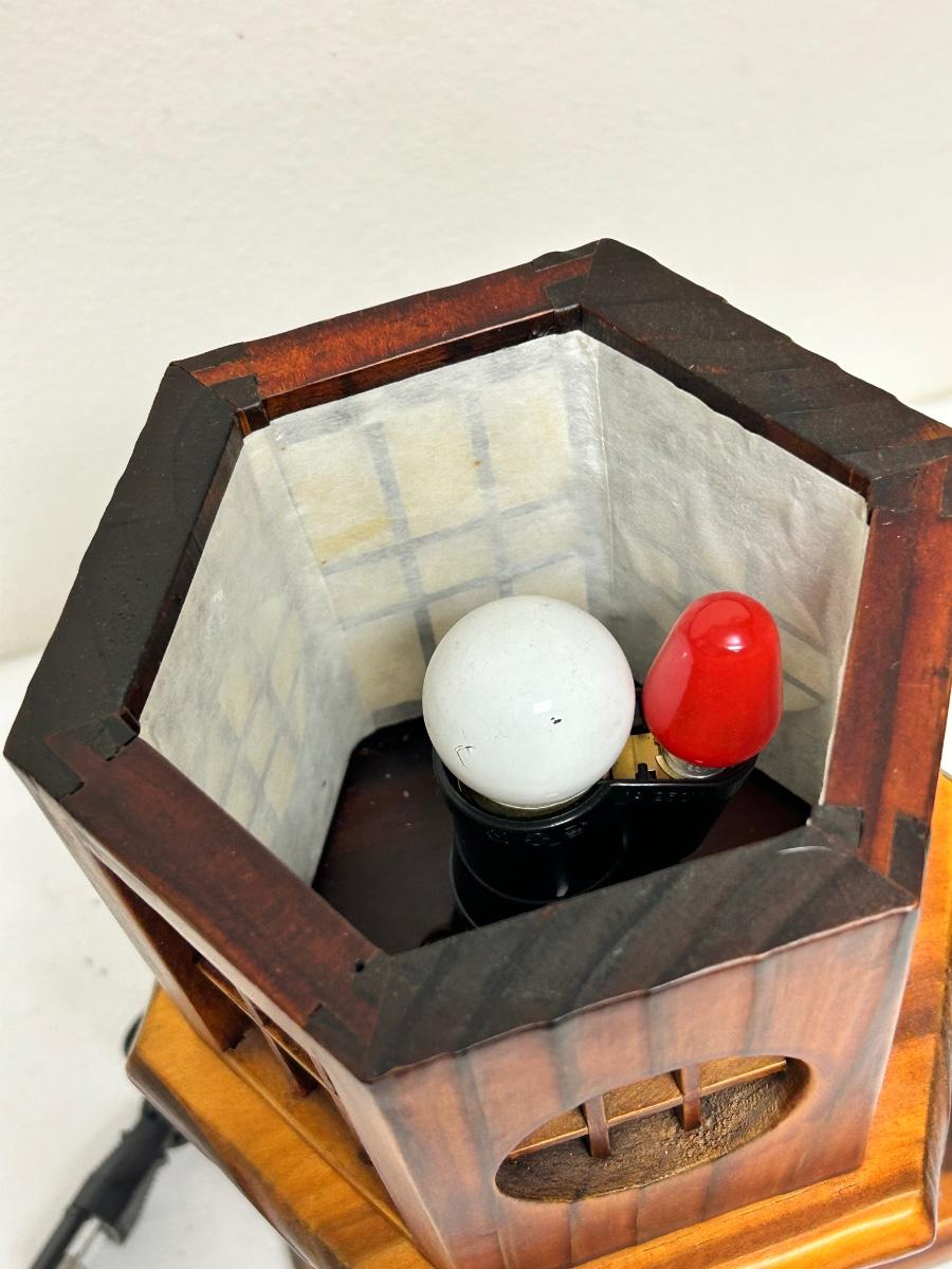 Wood Lighthouse Like Table Lamp. Untested because of the plug, see photo. Displays nice.