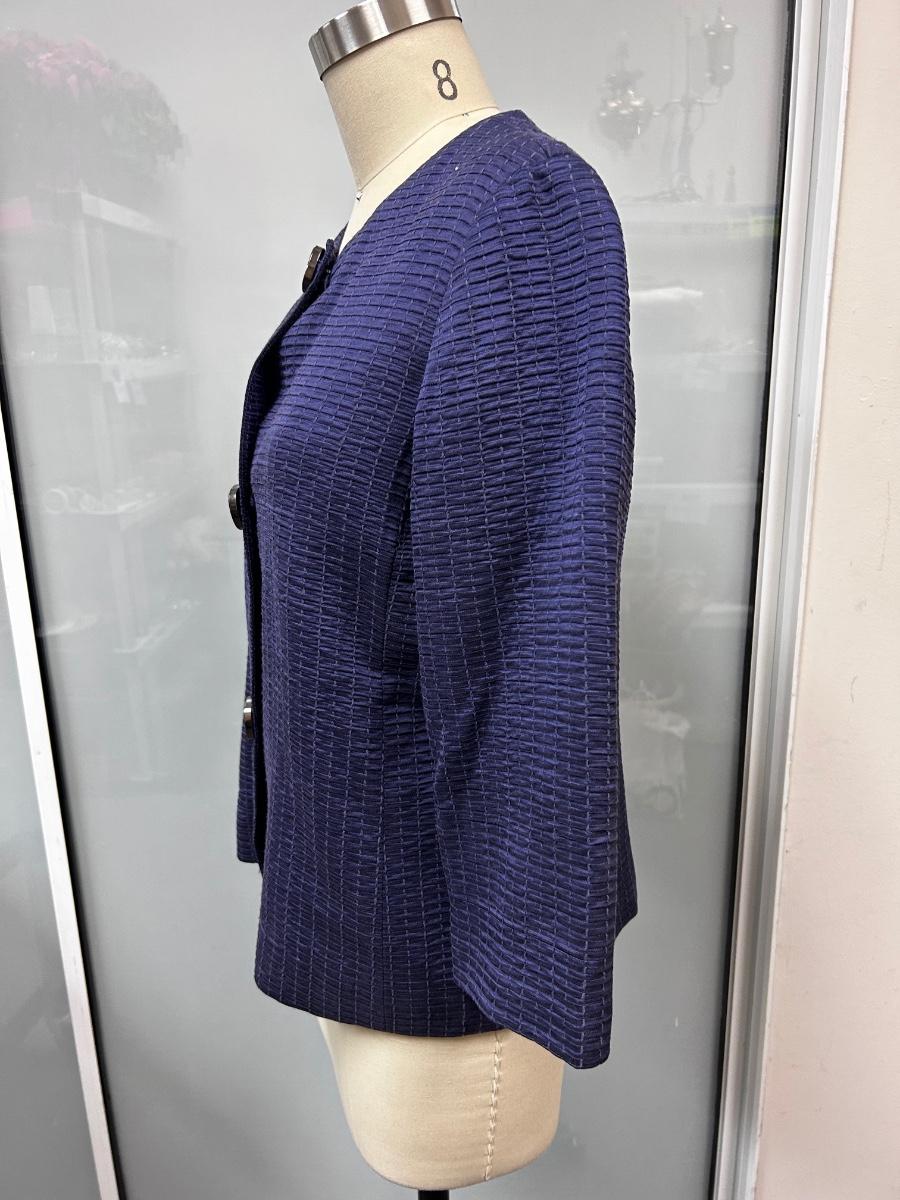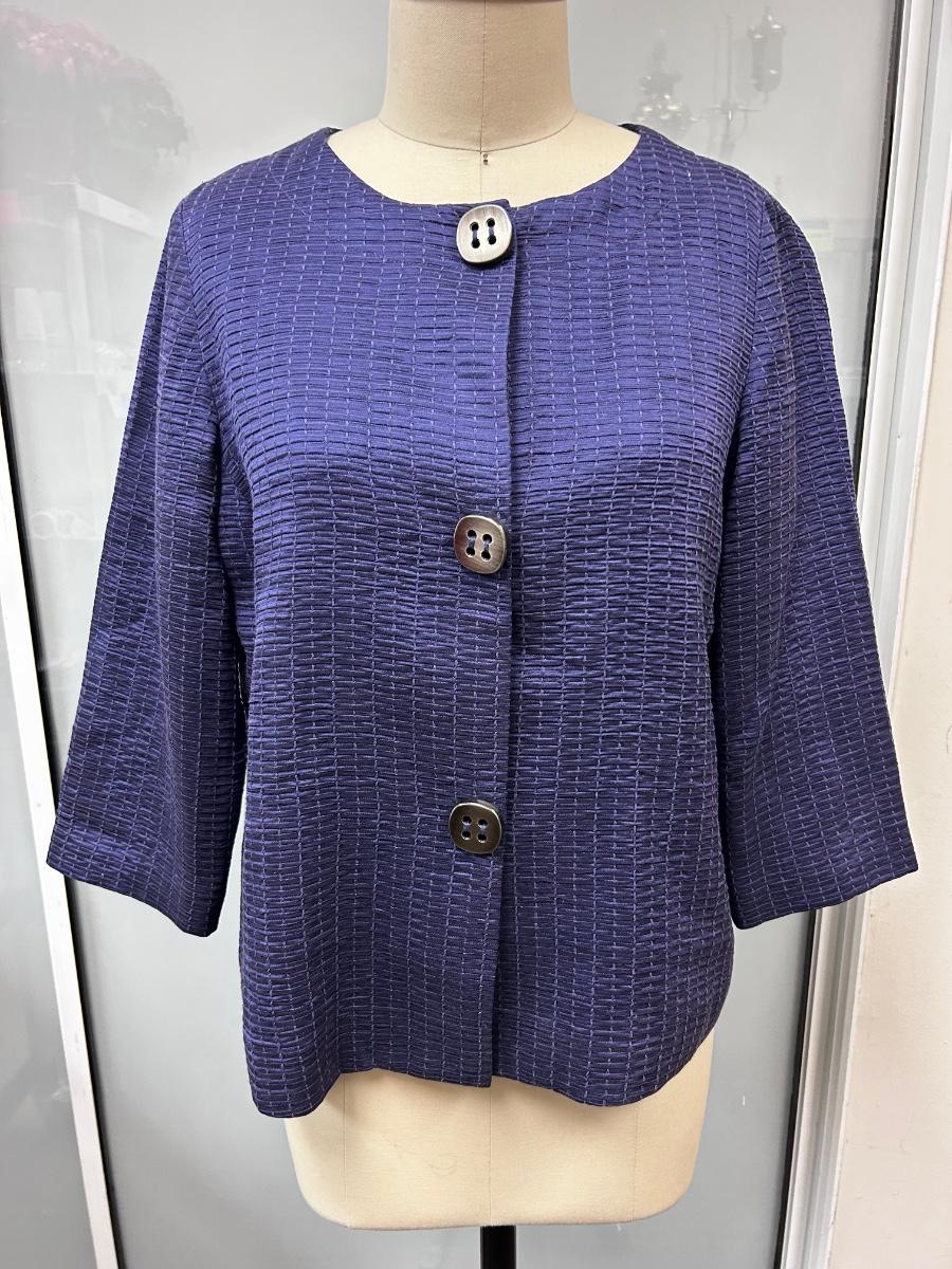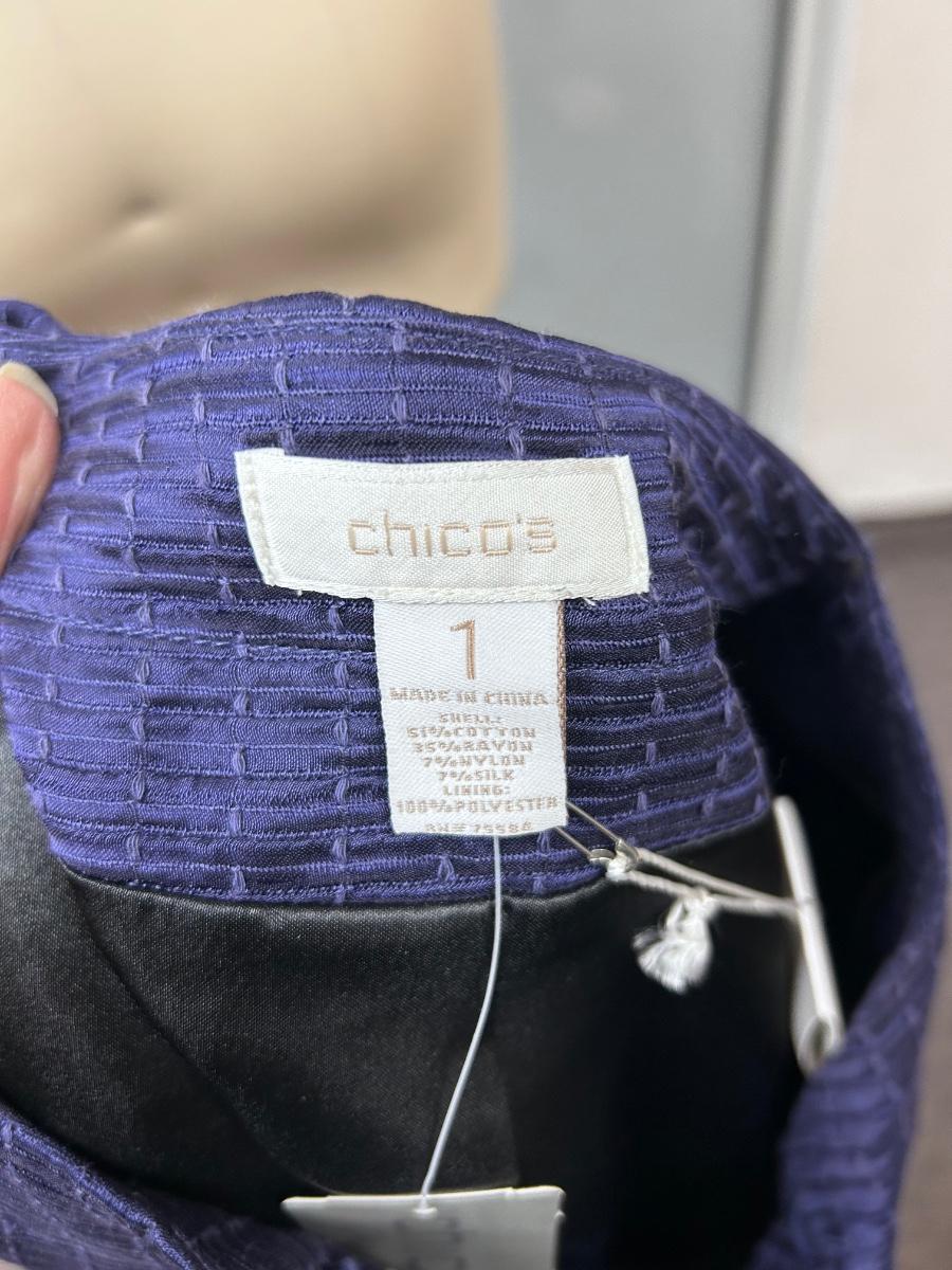 New with Tags Chico's Size 1 Purplish Blue Snap Front Jacket. In good condition.