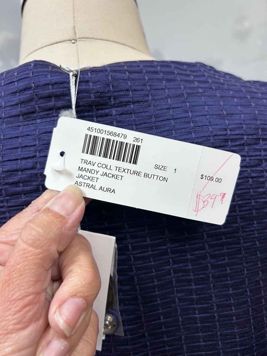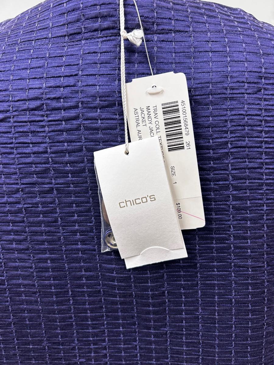 New with Tags Chico's Size 1 Purplish Blue Snap Front Jacket