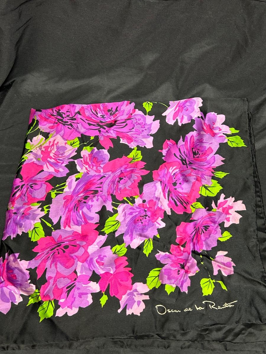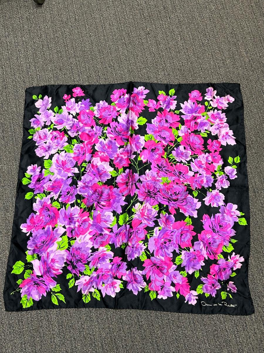 Lot of Three Vintage Scarves Scarf Oscar de la Renta Sally Gee Vera. In good vintage condition. May have some light discolored spots, no major stains or holes.
