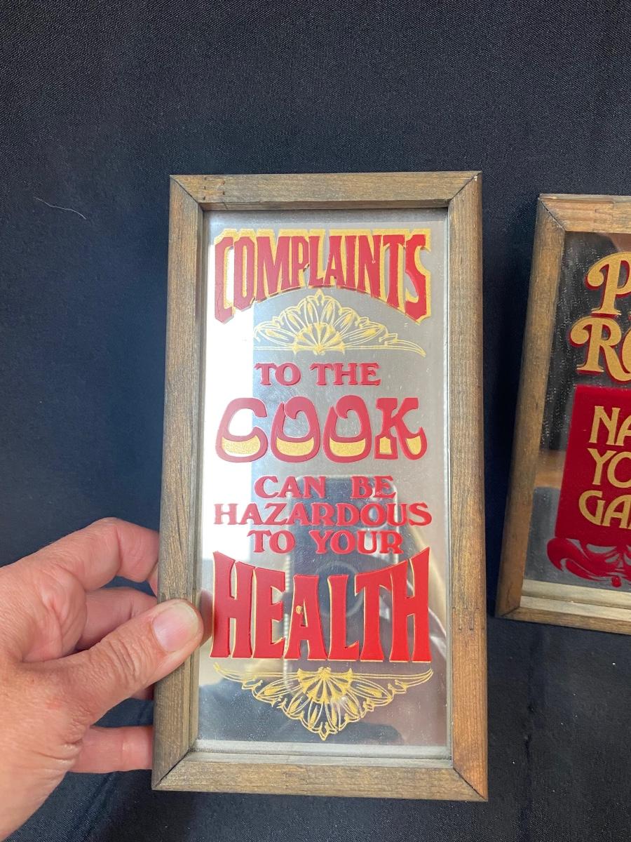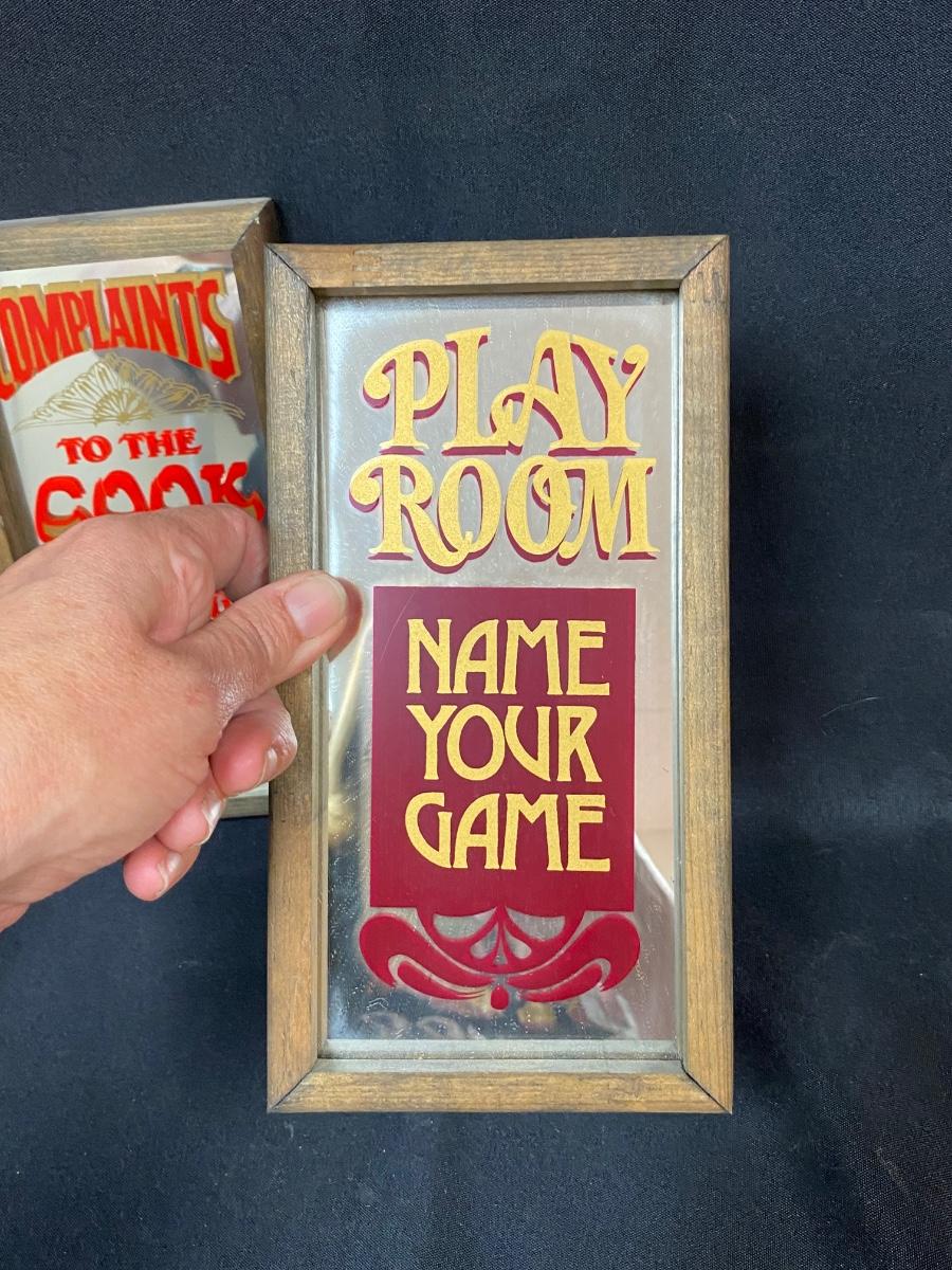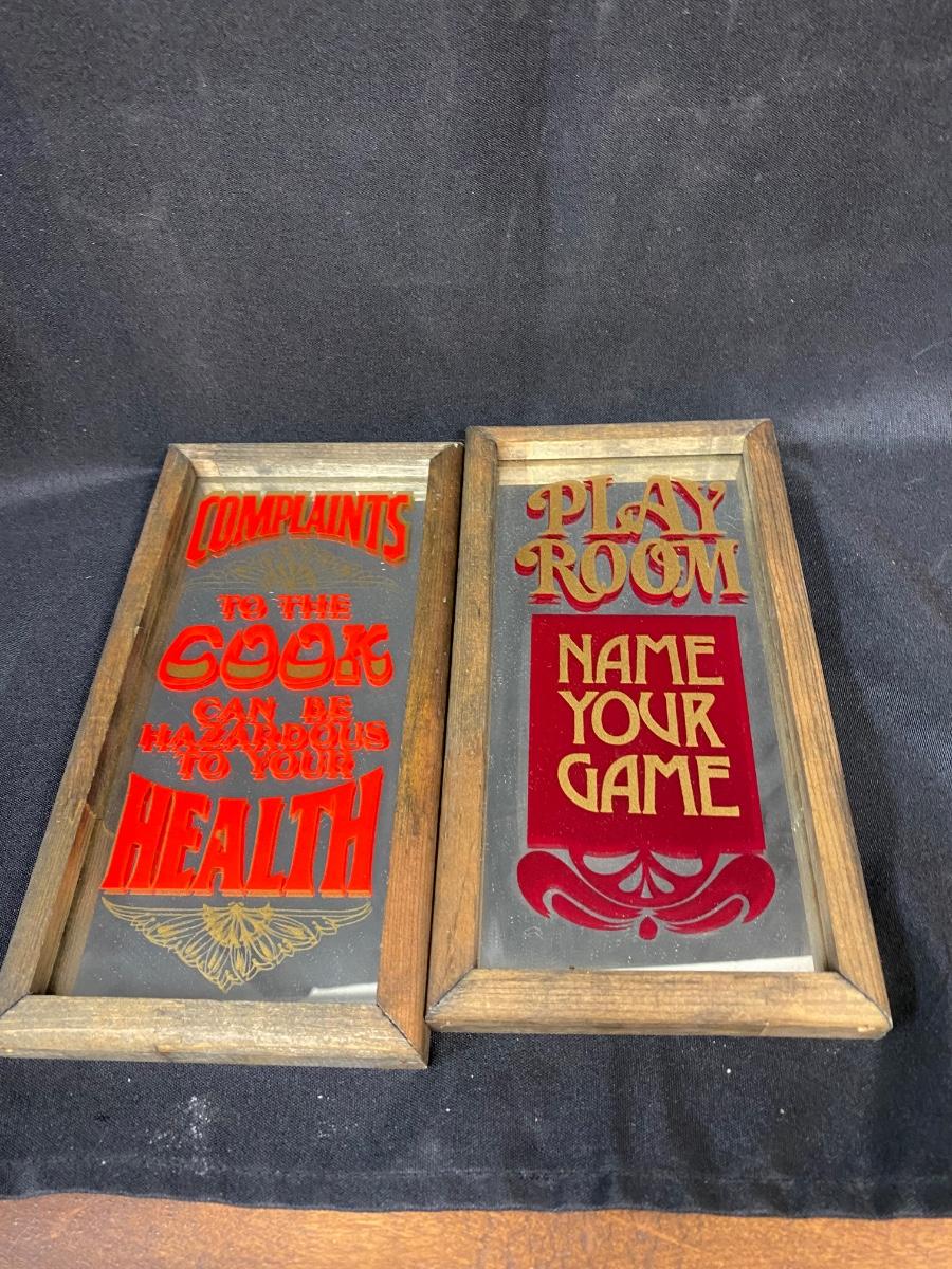 Pair of Novelty Mirrored Bar Room Pool Hall Vintage American Wall Signs. In good condition, just dusty. About 8.5"x4" size.