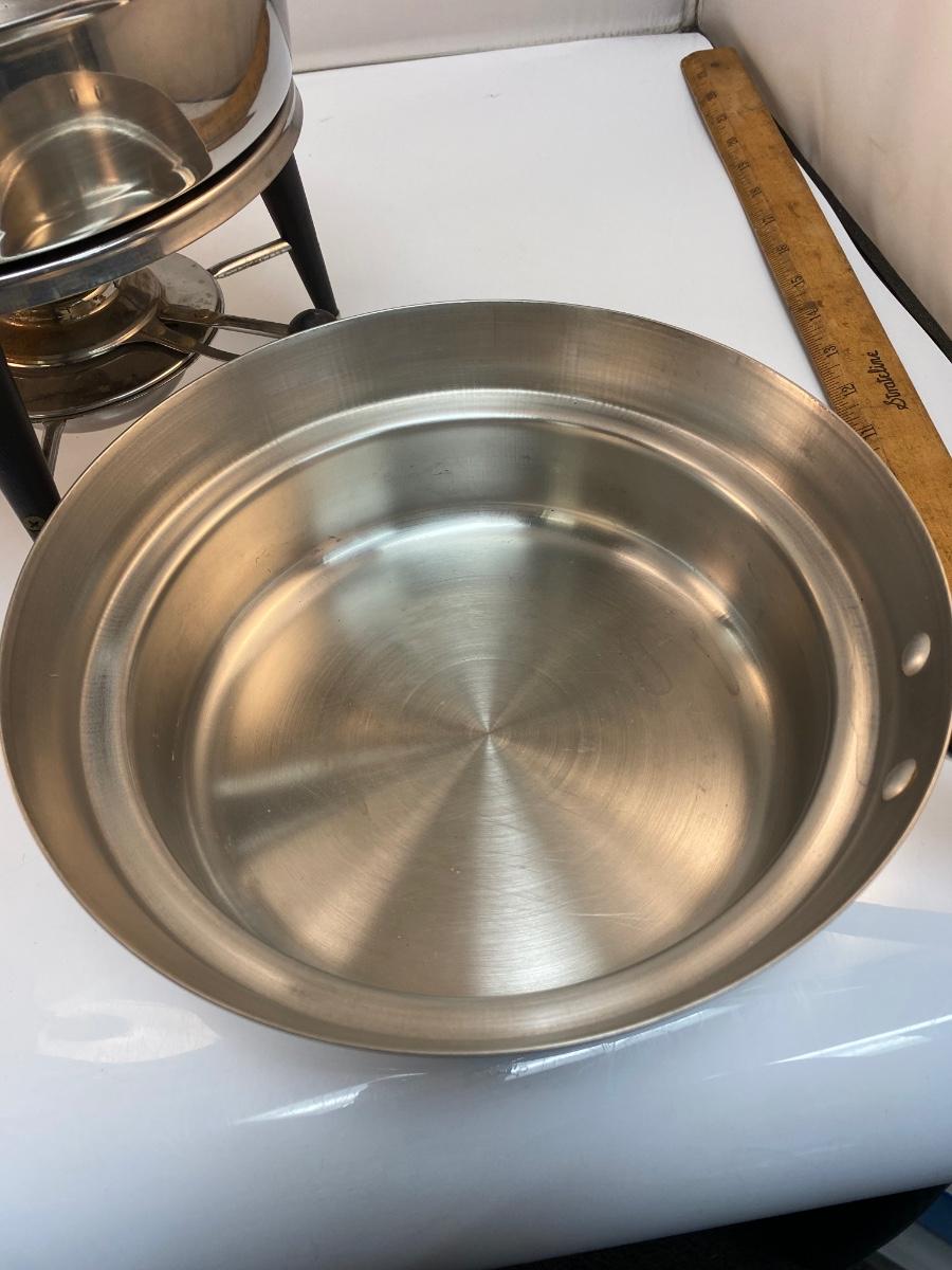 Vintage Stainless Steel Fondue Pot Chaffing Dish Food Warmer. In good used condition. Double pot to keep food warmer without direct heat.