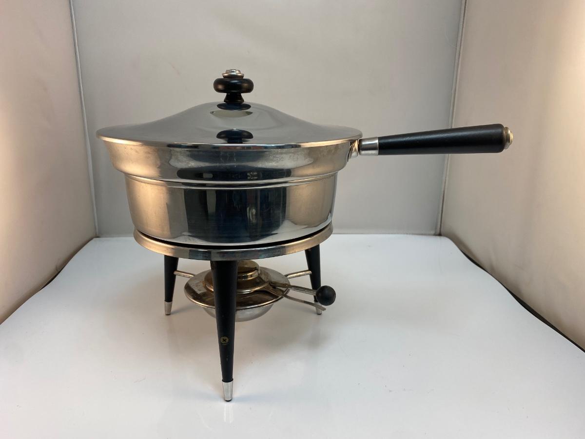 Vintage Stainless Steel Fondue Pot Chaffing Dish Food Warmer