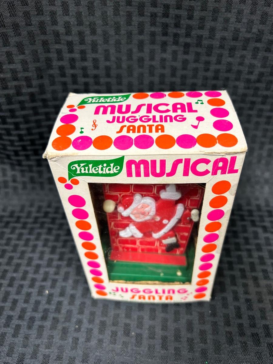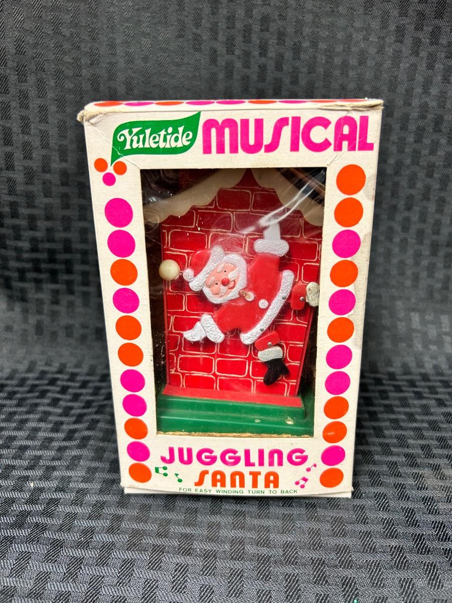 Vintage Musical Wind-Up Juggling Santa Claus Christmas Holiday Figurine. Works. Comes in original box.
