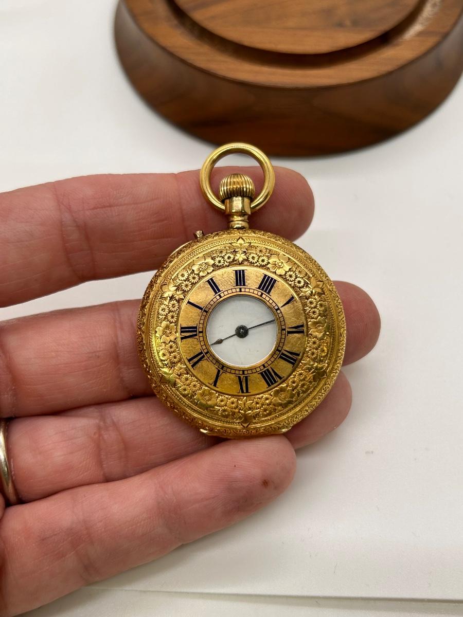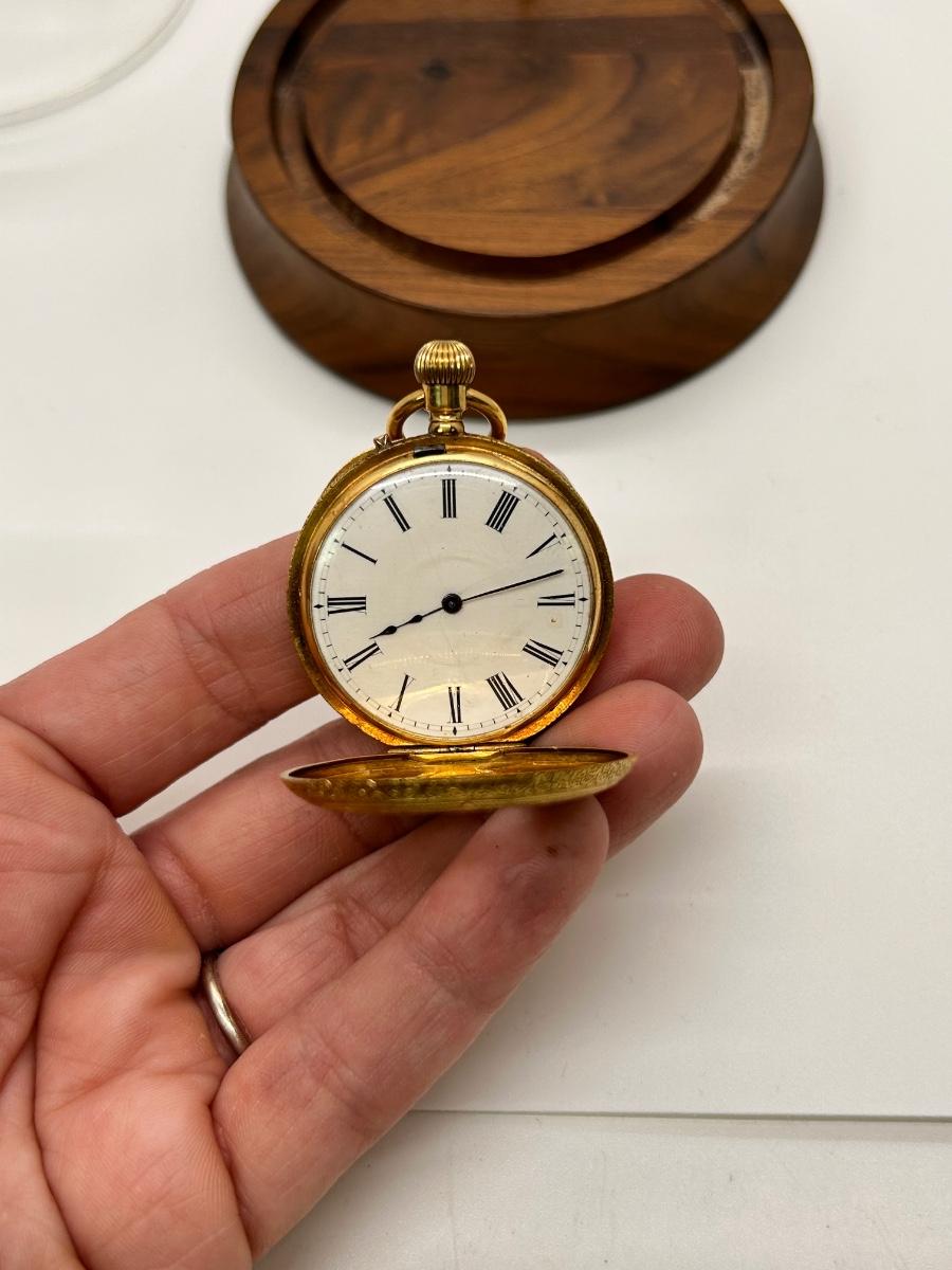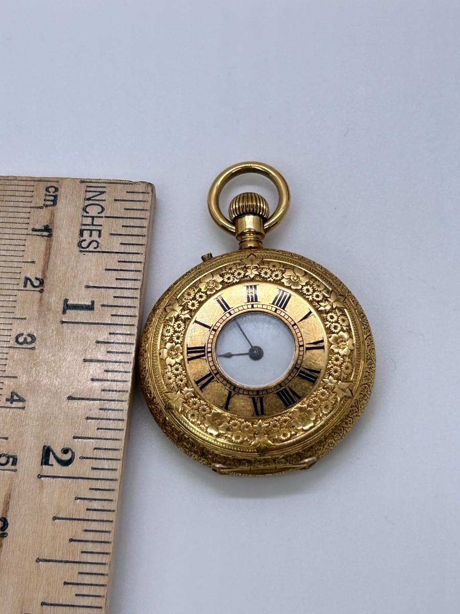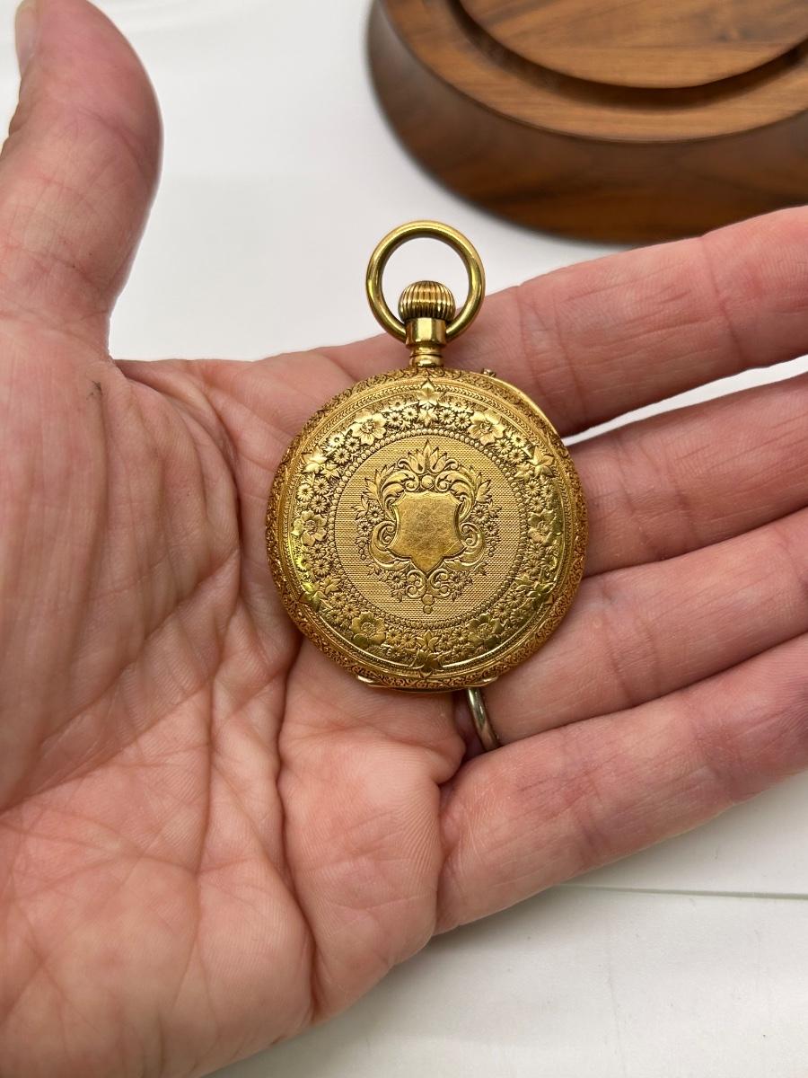 Vintage 18k Yellow Gold Small Pocket Watch with Display Holder H & Co Numbered Works