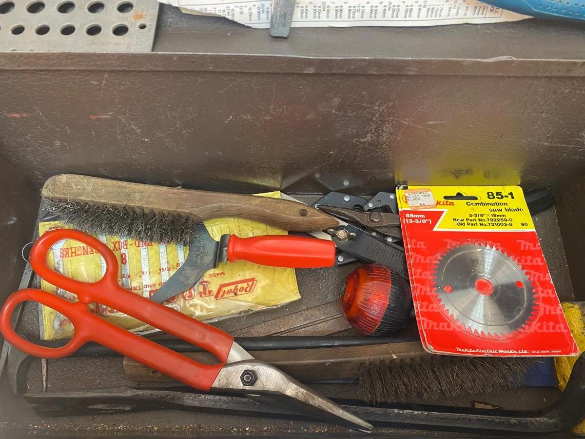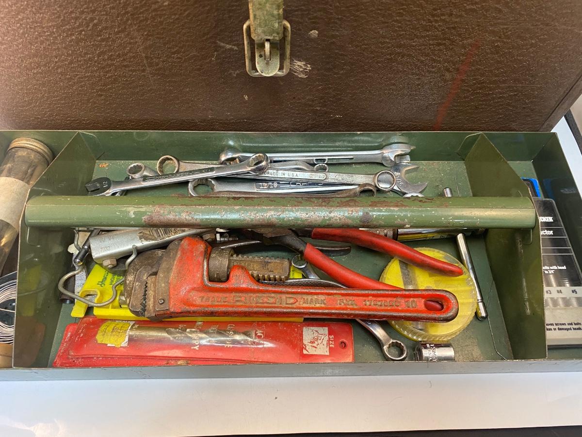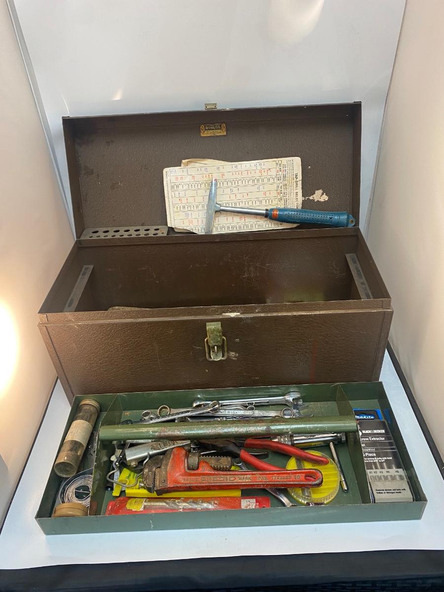 Vintage Kennedy Metal Toolbox with Miscellaneous Hand Tools Included