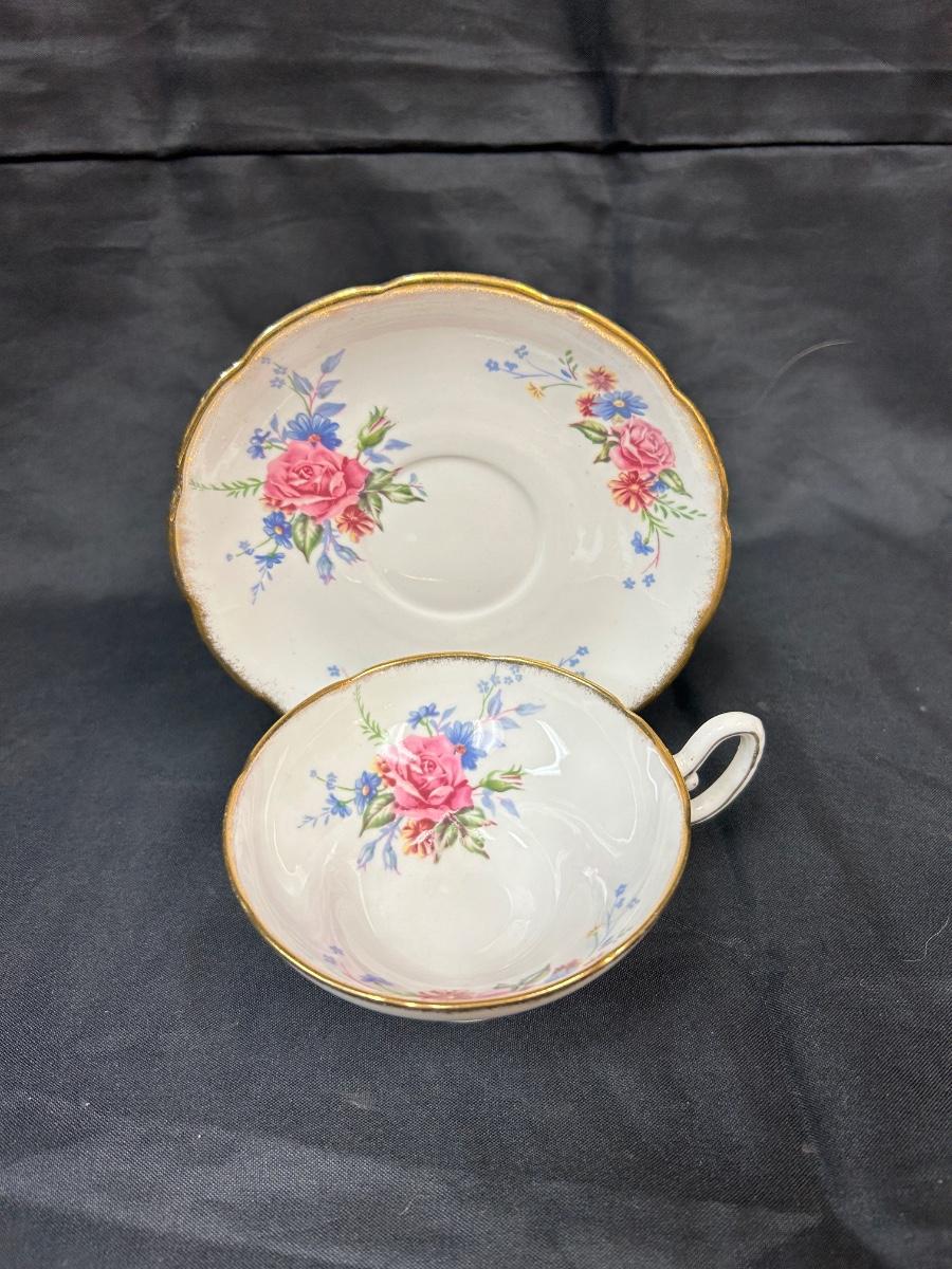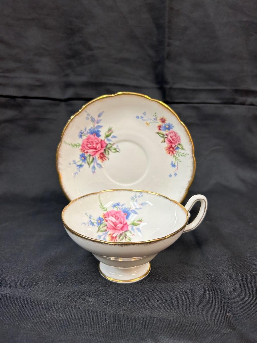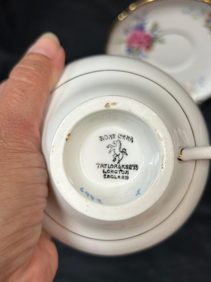Vintage Taylor & Kent England Bone China Dainty Pink and Blue Floral Teacup and Saucer. In good vintage condition. No damage noticed.