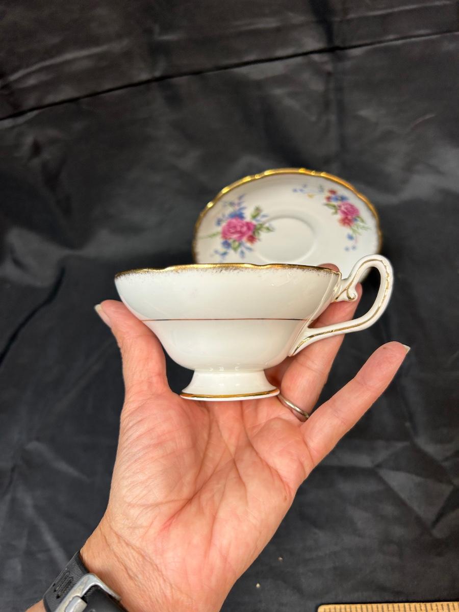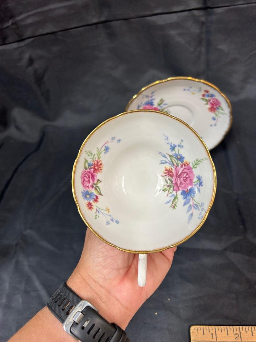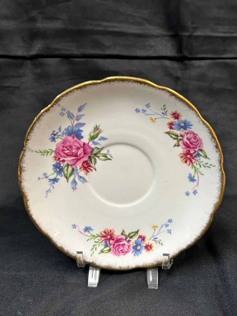 Vintage Taylor & Kent England Bone China Dainty Pink and Blue Floral Teacup and Saucer. In good vintage condition. No damage noticed.