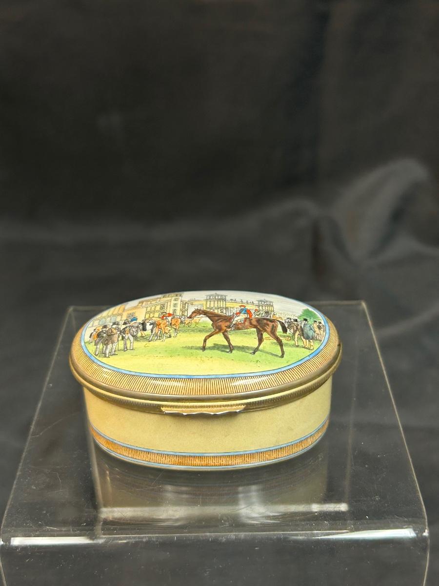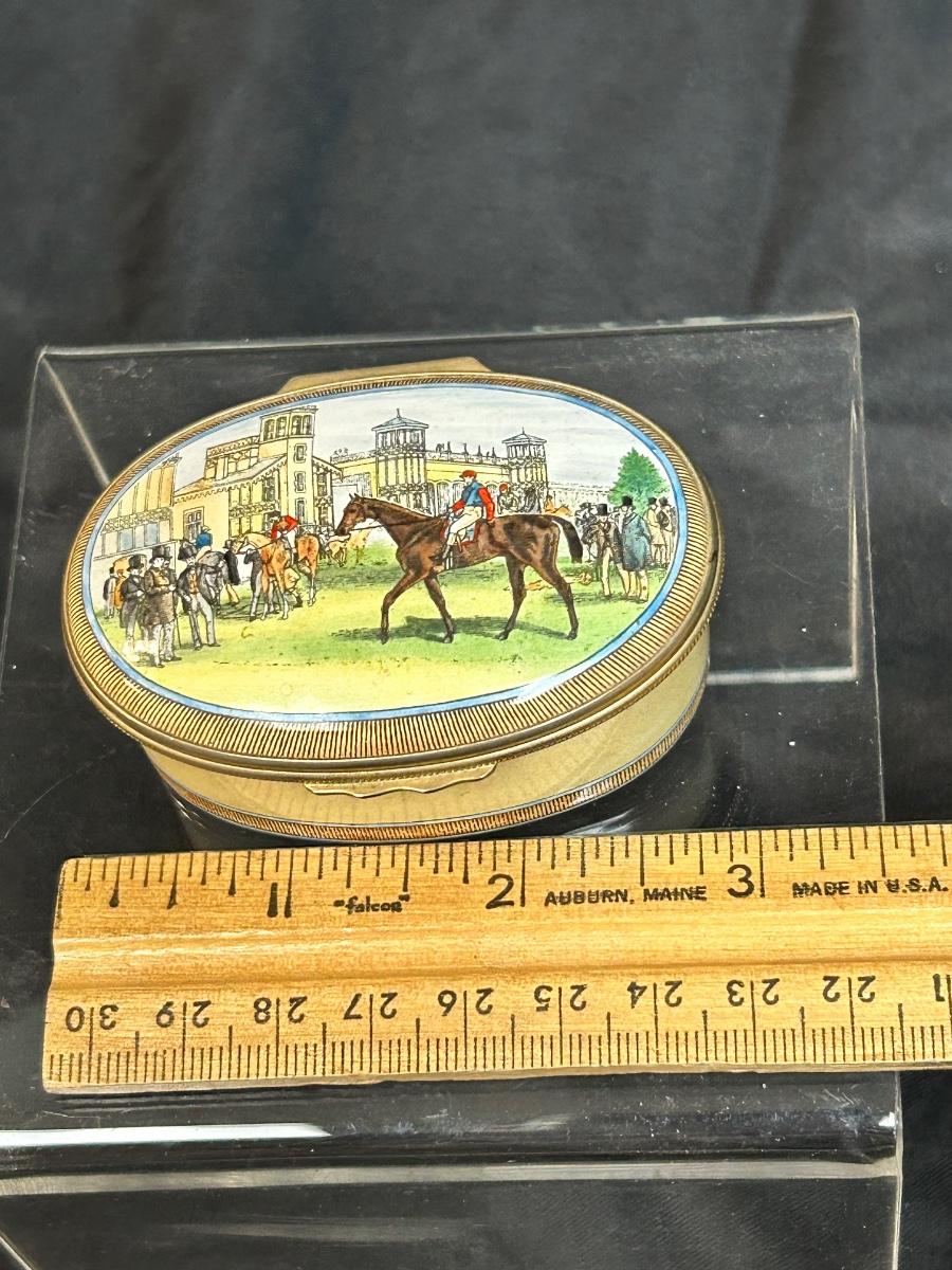 Vintage Horse Racing Themed Trinket Box Halcyon Days Enamels *Damaged*