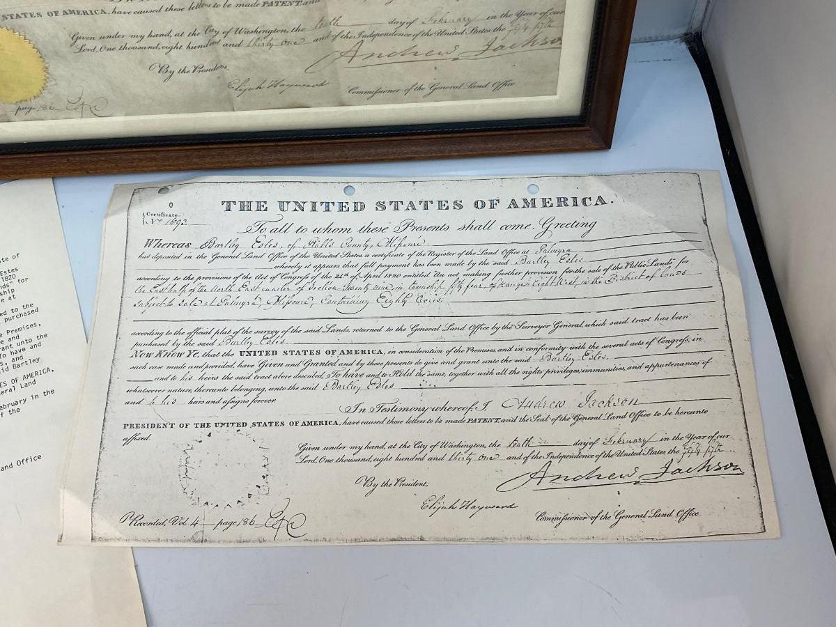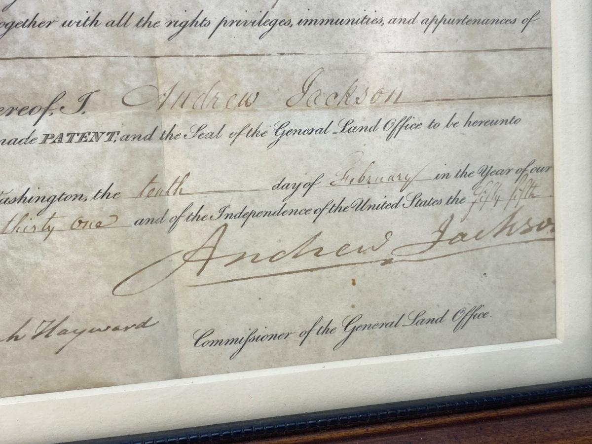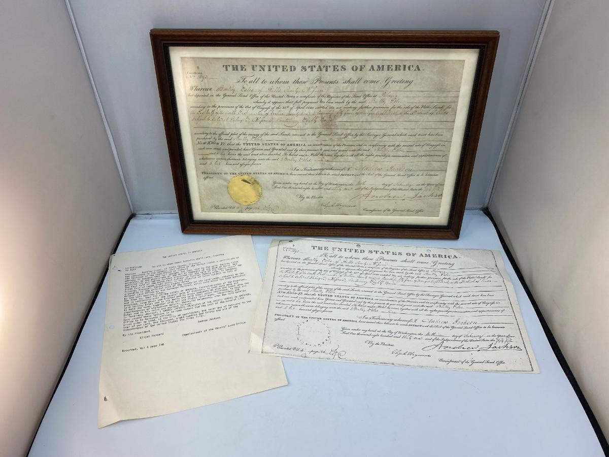 Antique 1831 United States Framed Land Document Missouri Signed by Pres. Andrew Jackson with Photocopy and Transcript