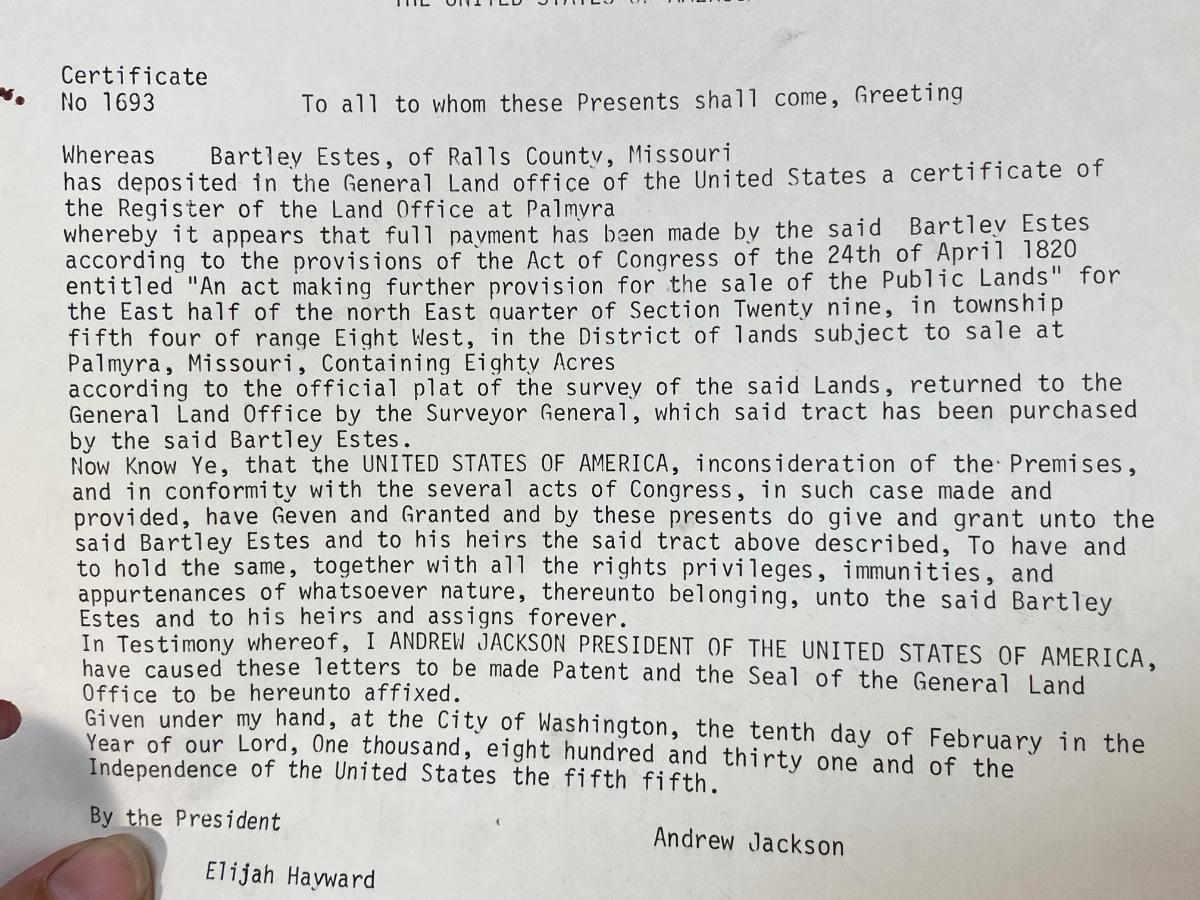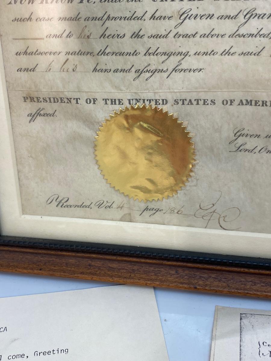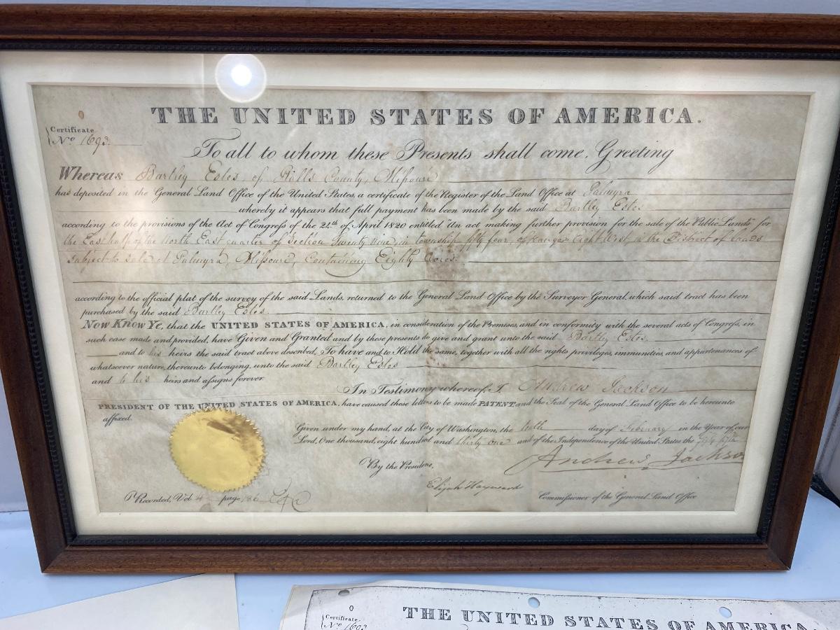 Antique 1831 United States Framed Land Document Missouri Signed by Pres. Andrew Jackson with Photocopy and Transcript