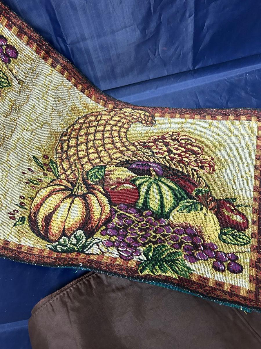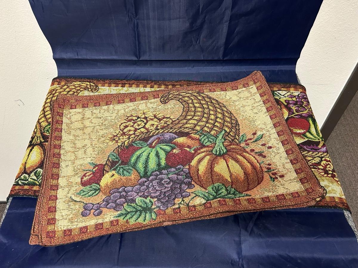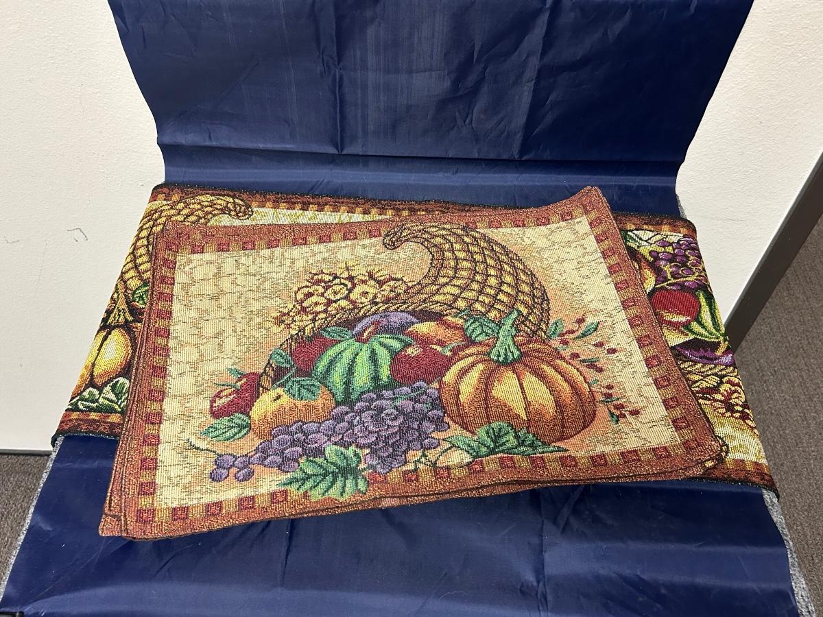 Set of Four Thanksgiving Cornucopia Placemats with Matching Table Runner. In good condition.