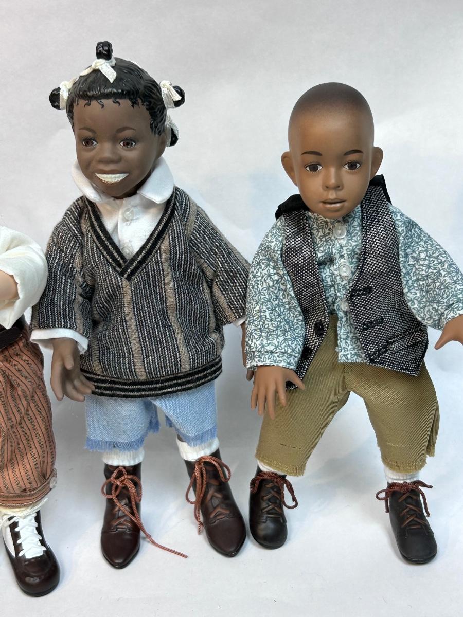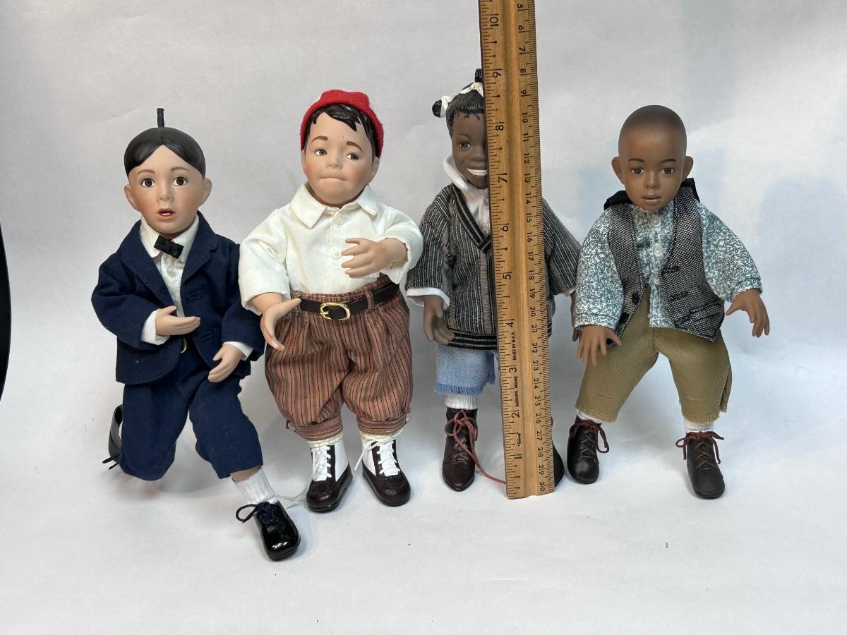 2002 Our Gang Little Rascals Porcelain Collector Dolls Set of 4. In good previously displayed condition. The boy on right is missing hat. About 9" size.