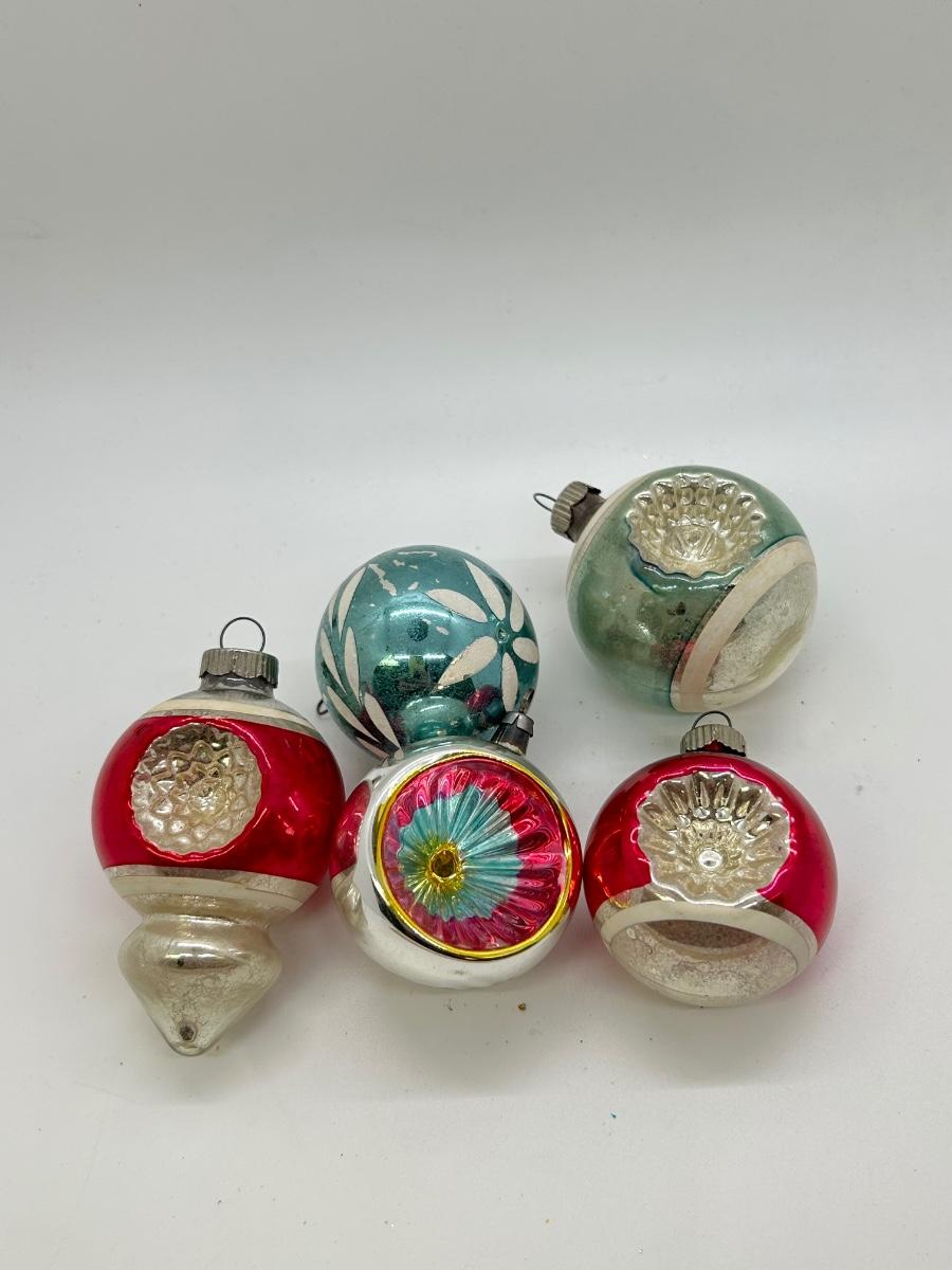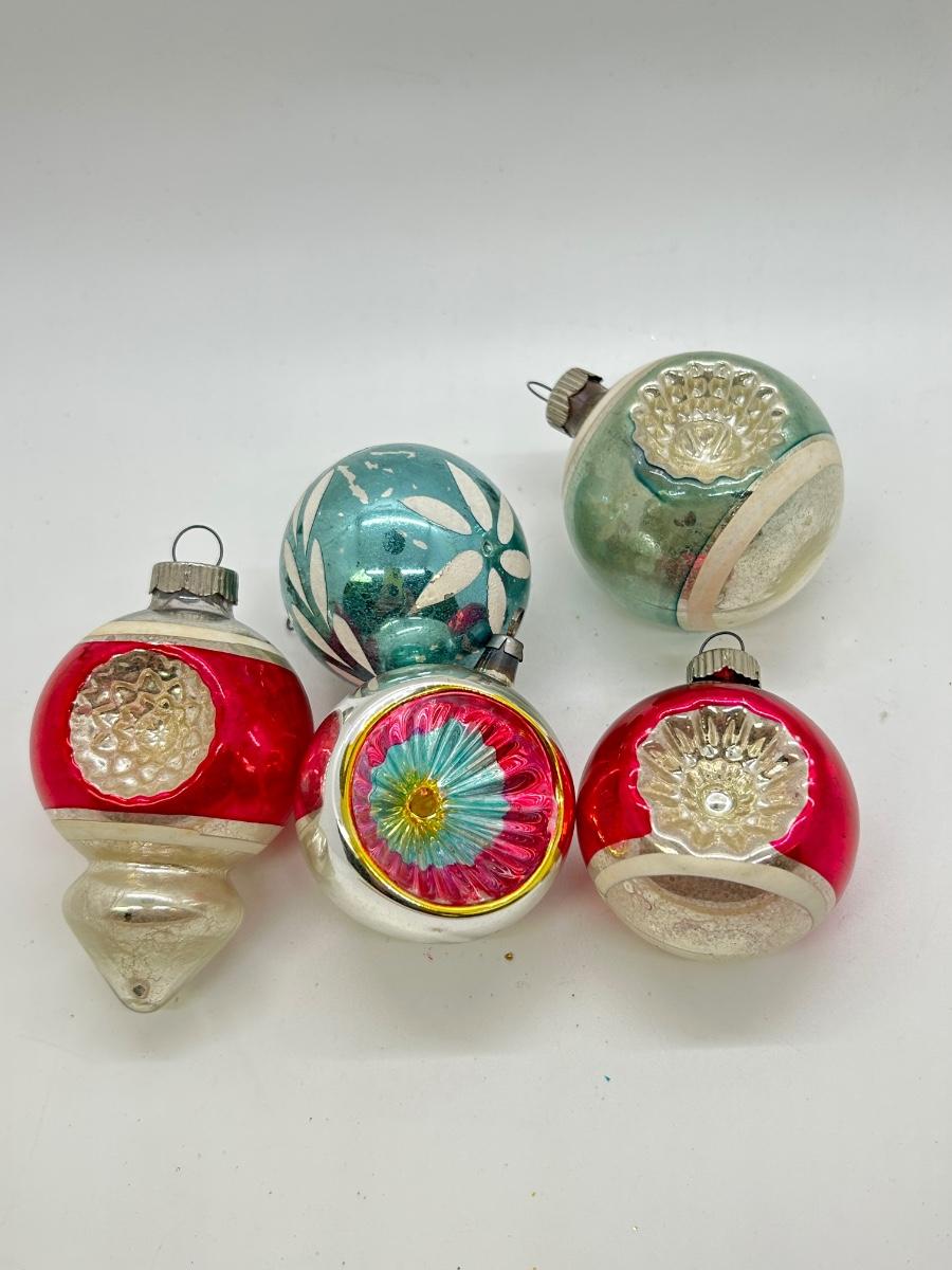 Vintage Shiny Brite Indented Colorful Blown Glass Christmas Holiday Tree Ornaments
