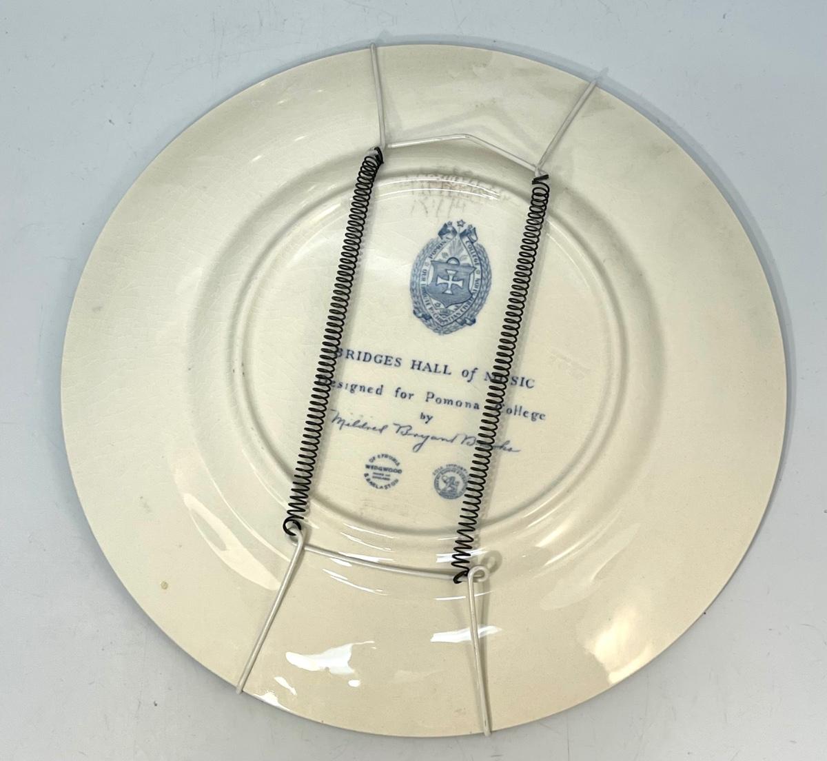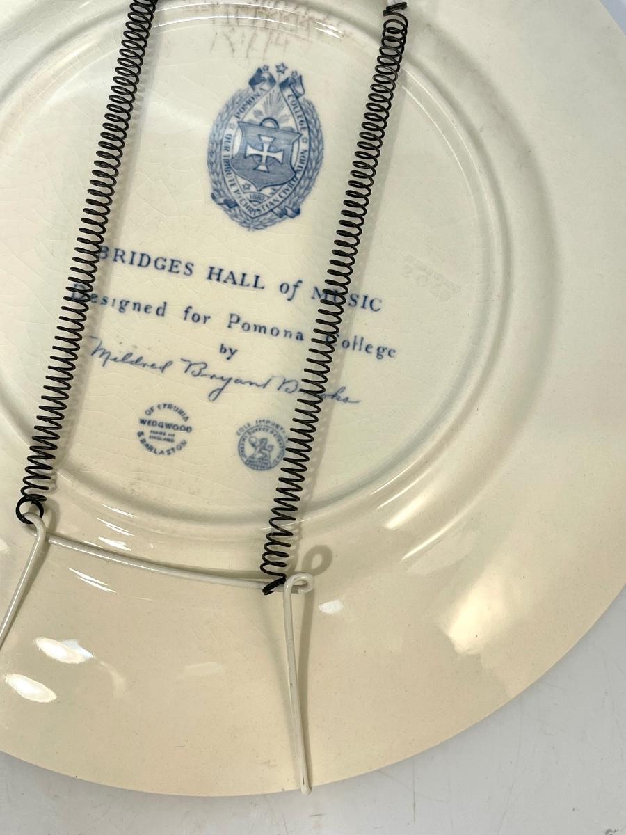 Pomona College Bridges Hall of Music Transferware Blue & White Wedgwood Commemorative Plate