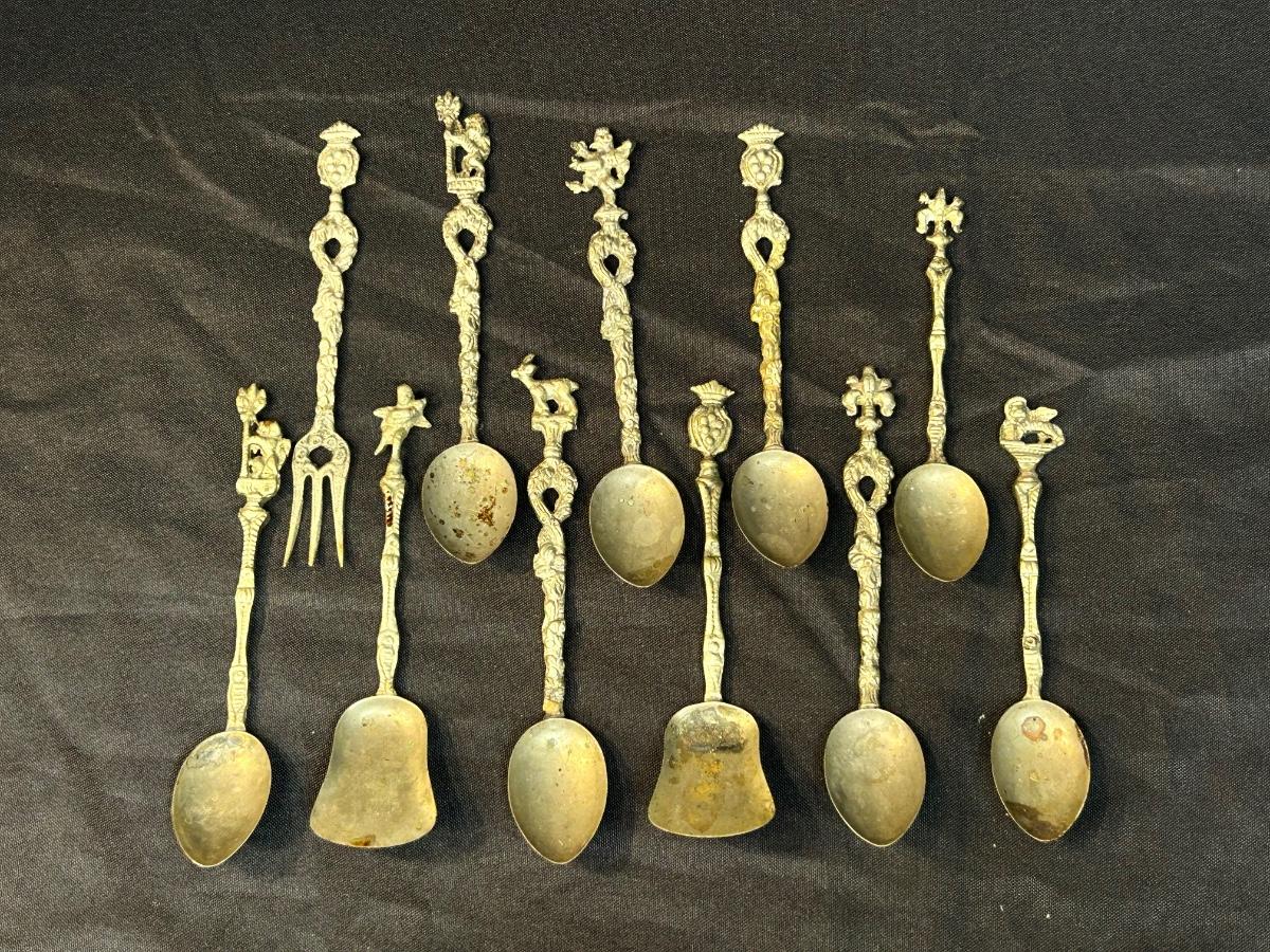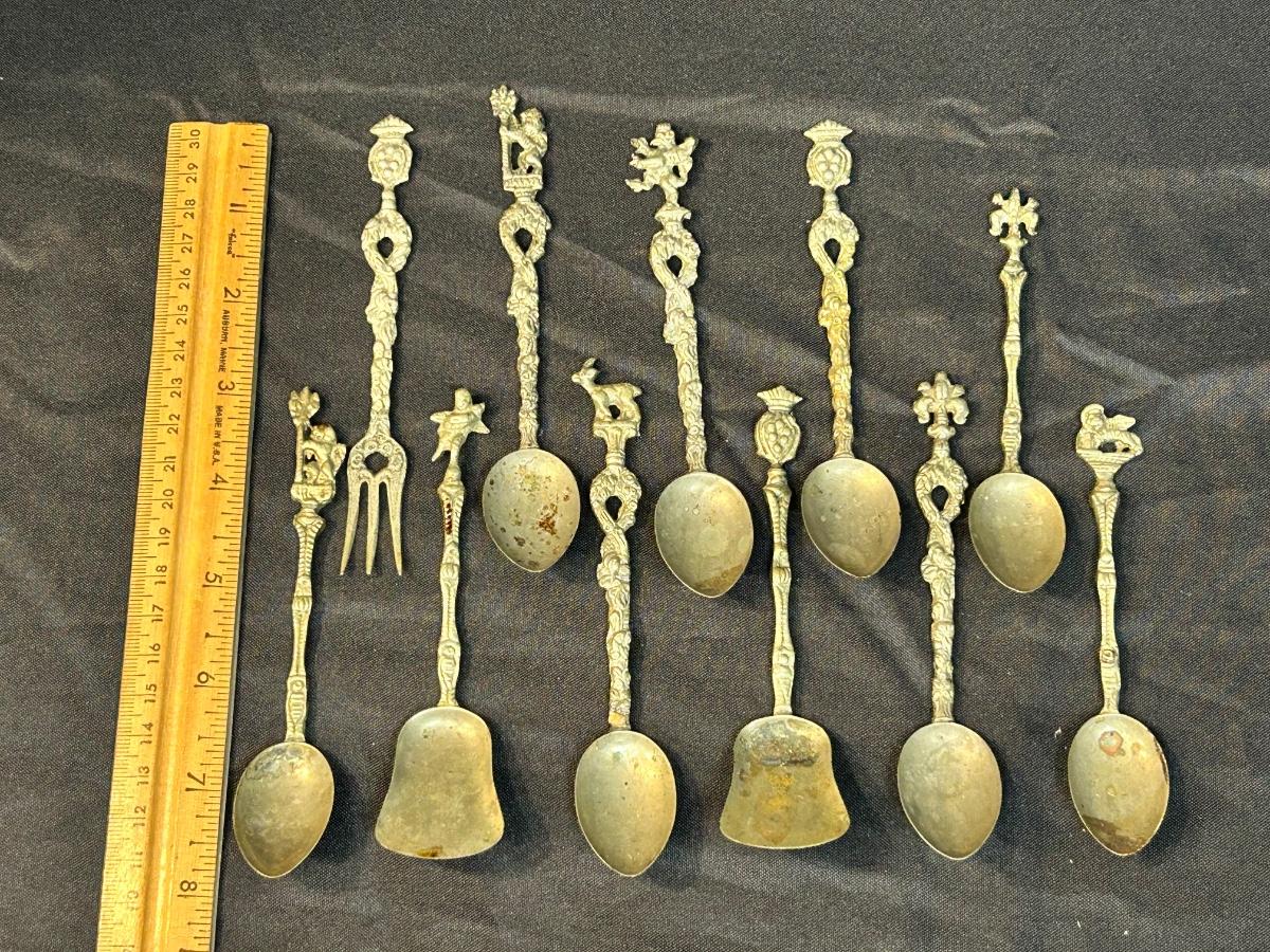 Vintage Brass Metal Tone Collectible Sugar Teaspoons Different End Patterns