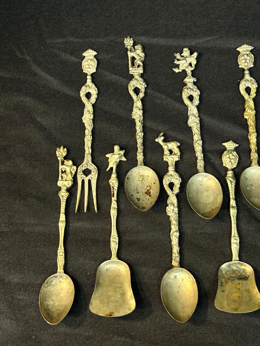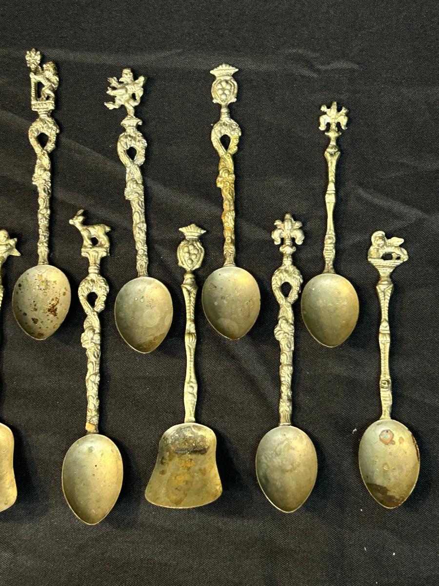 Vintage Brass Metal Tone Collectible Sugar Teaspoons Different End Patterns. Each one a little different. In vintage condition, show signs of age.