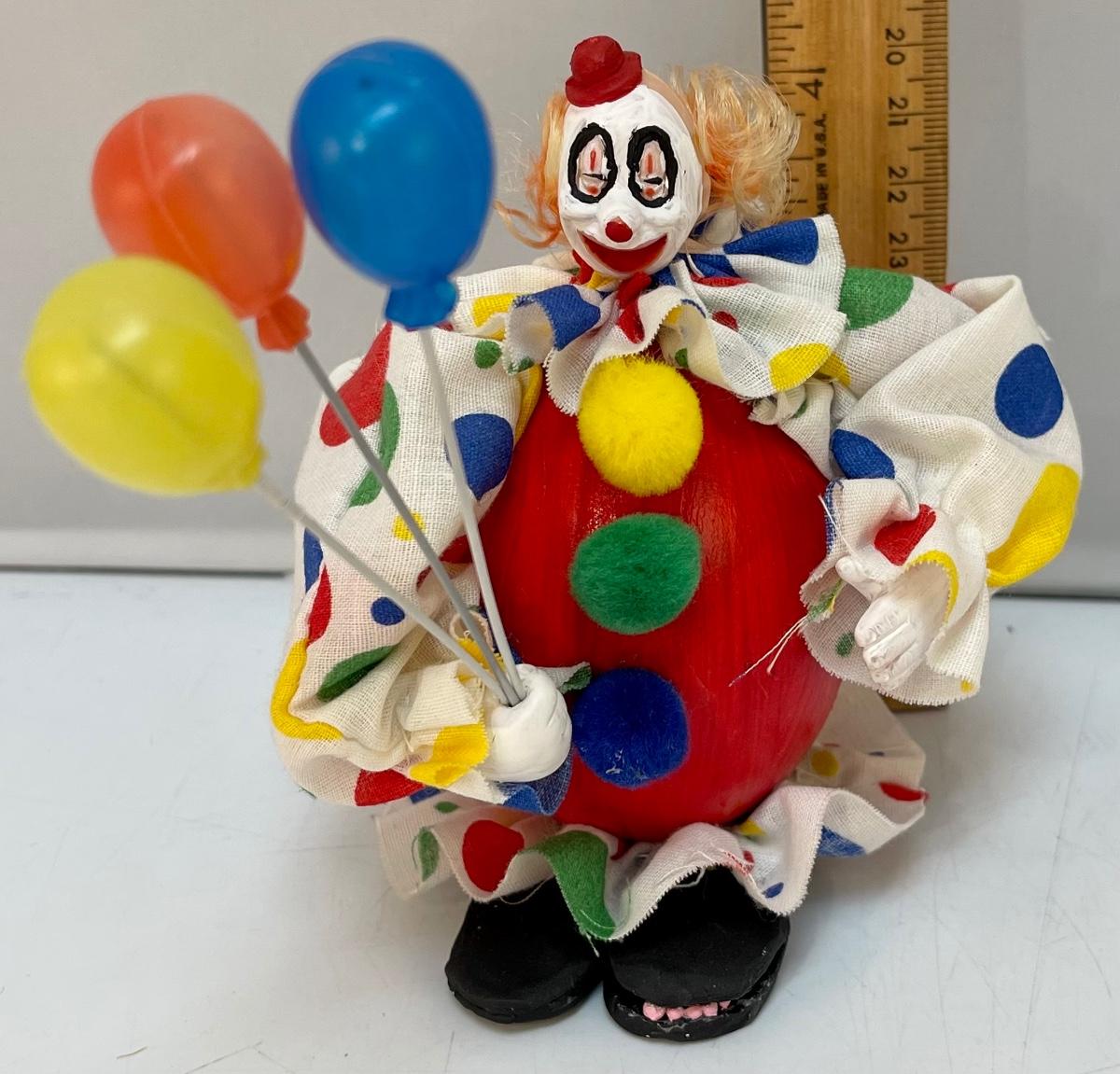 Vintage Retro Hand Made Painted Egg Body Colorful Circus Clown. Handmade, the body is an egg painted red. Under 5" size.
