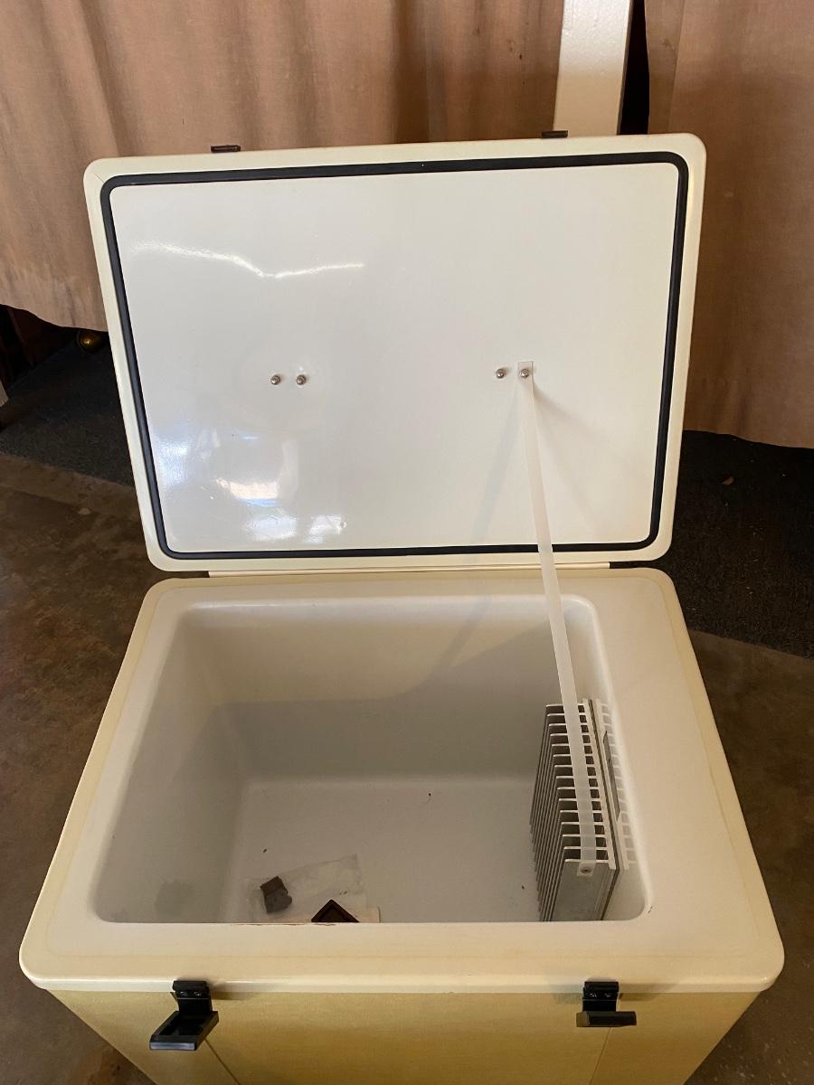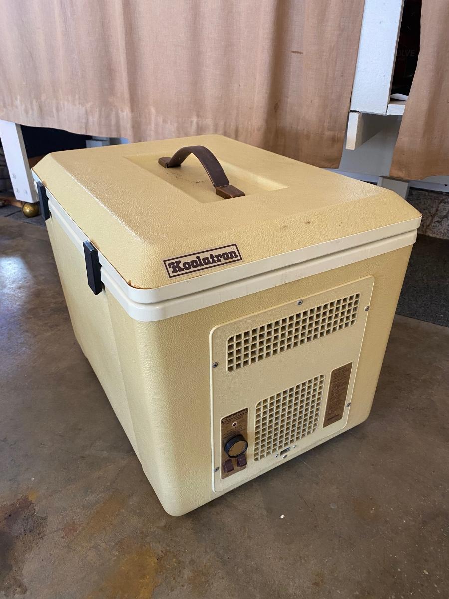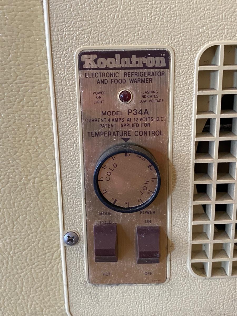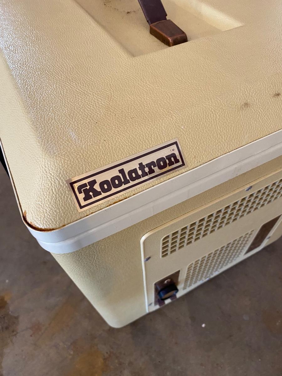 Vintage Koolatron Electronic Refrigerator and Food Warmer Model P34A. Looks to be in well-kept condition. Untested as it is missing the power cord. Power cord looks pretty standard for replacing.