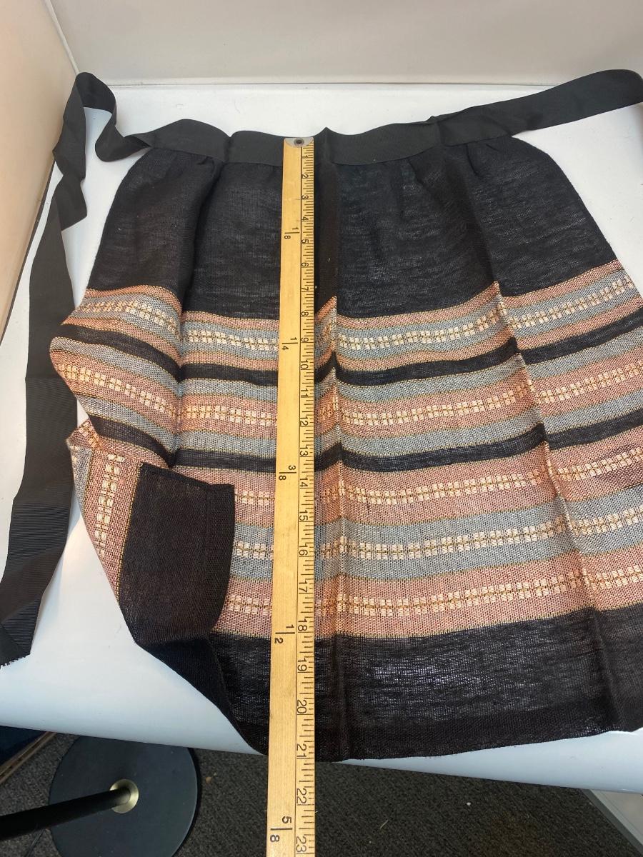Vintage Black with Pink & Grey Stripes Half Apron. In good condition.