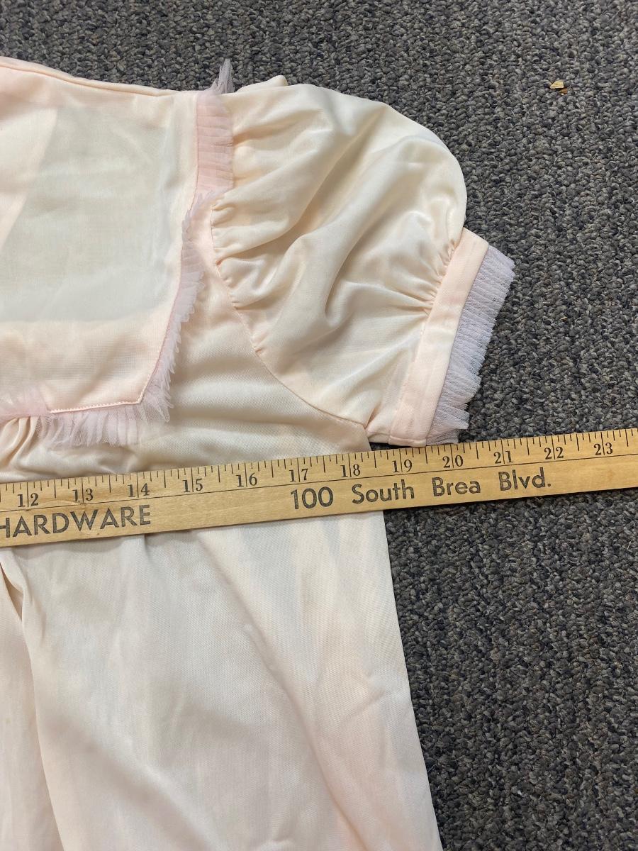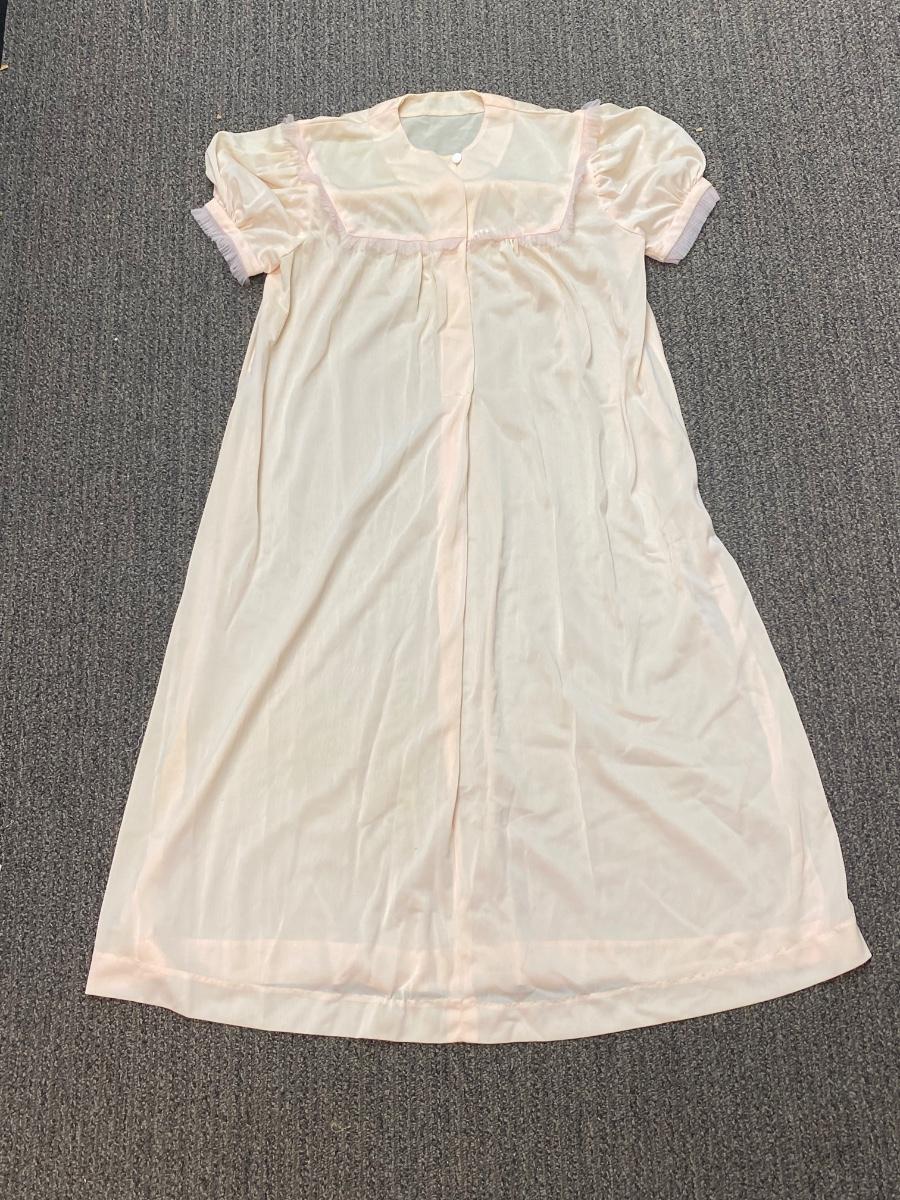Vintage Ladies Satin Nylon Nightgown Robe Coverup Pale Pink. In good vintage condition. No tags. There is a couple spots on back near arm but they are faint. Measures about 18" at armpit. Below the knee length.