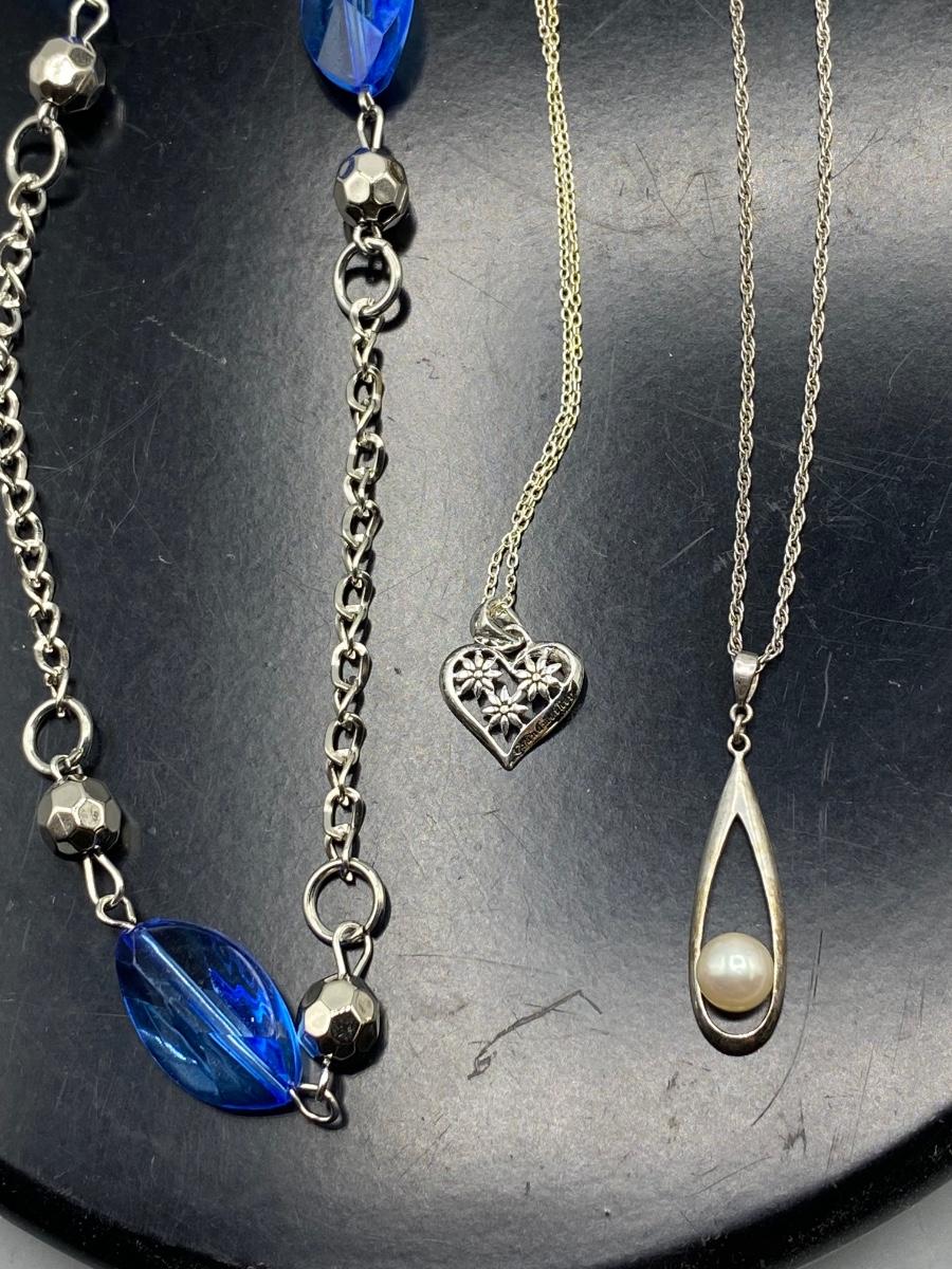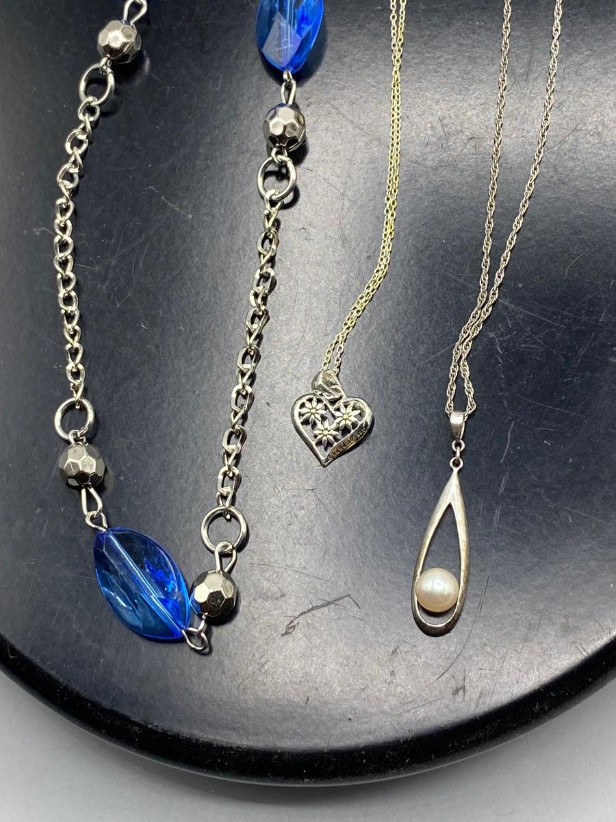 Lot of Three Silver Tone Fashion Jewelry Necklaces. In good condition.