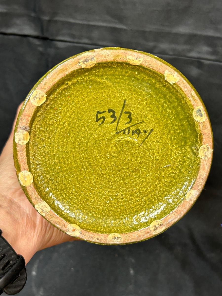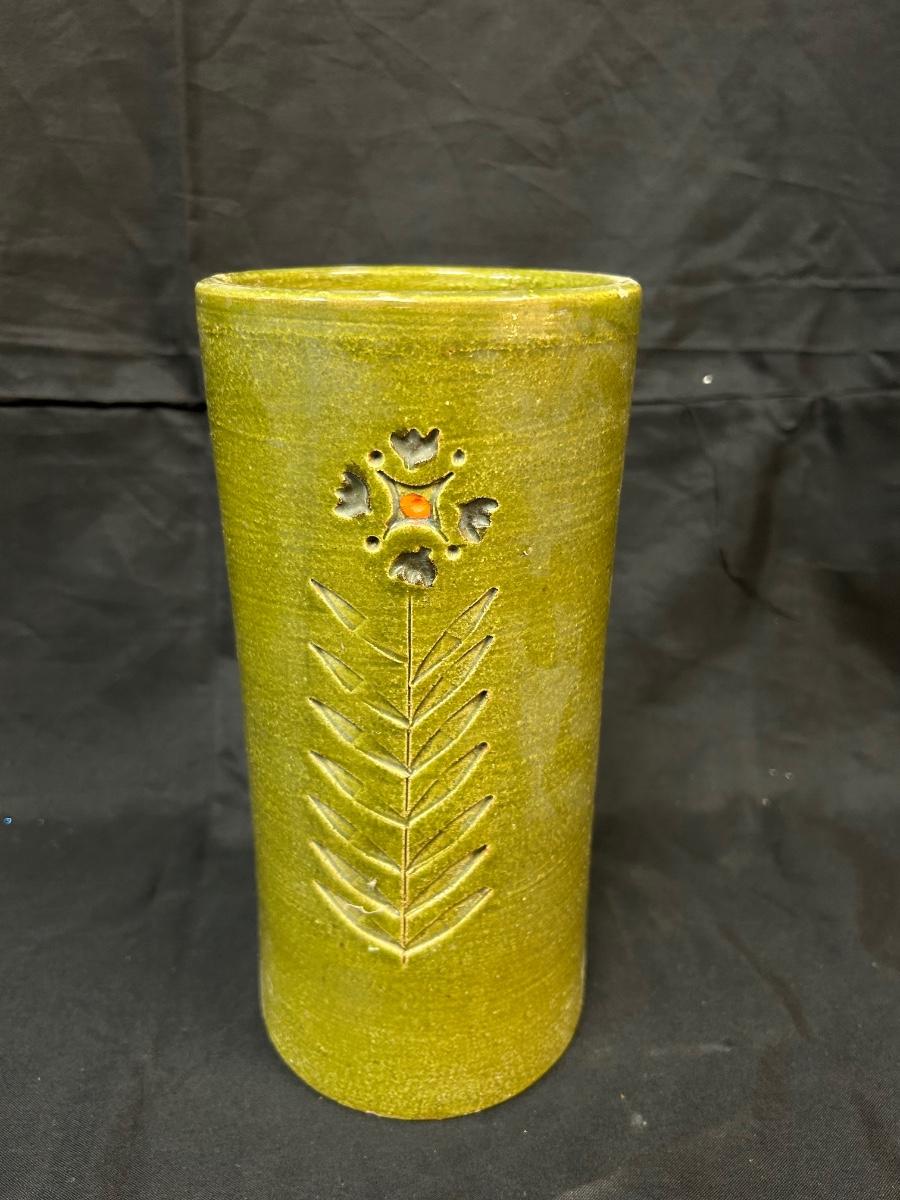 Vintage Midcentury Floral Stamped Hand-Crafted Painted Pottery Vase Numbered