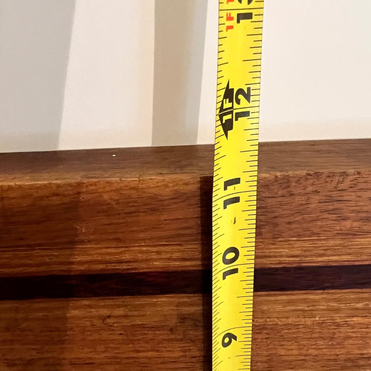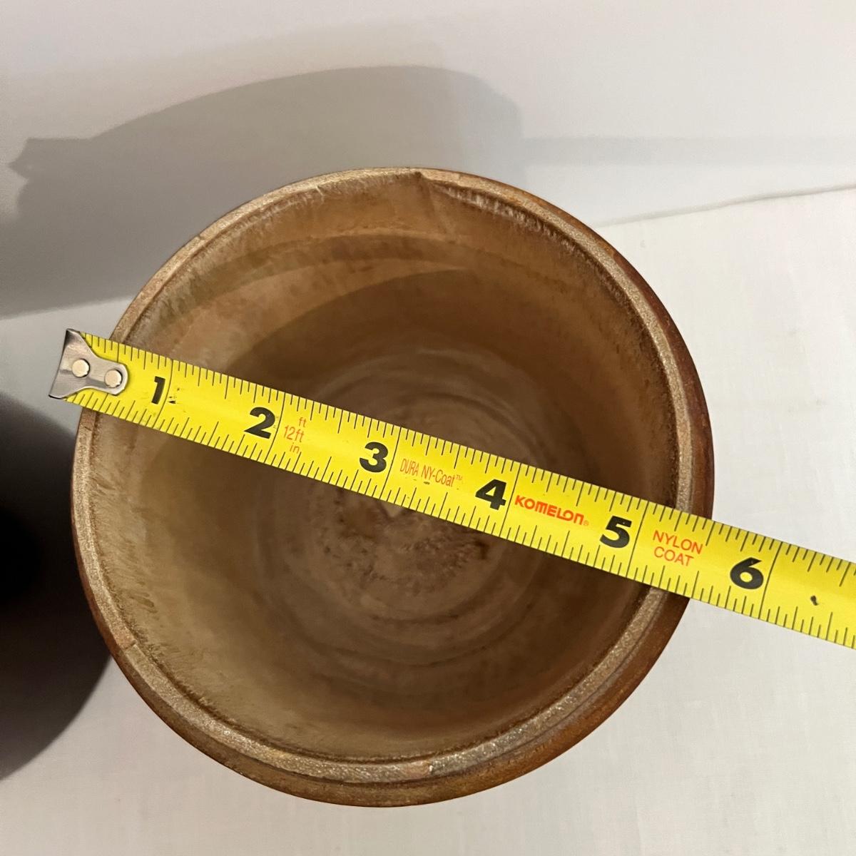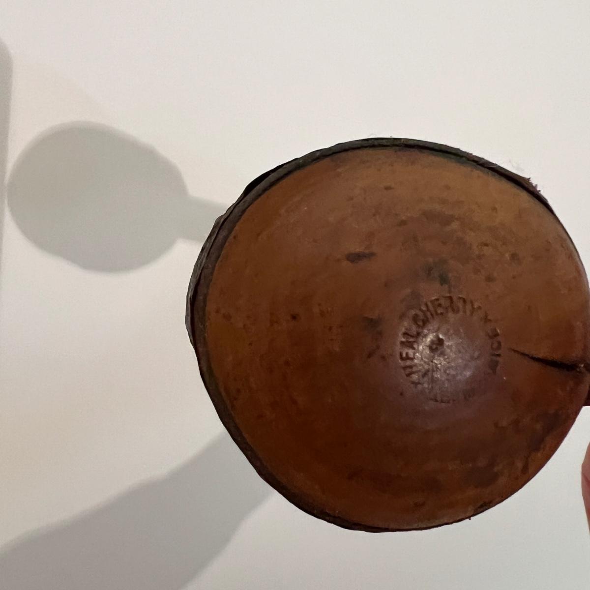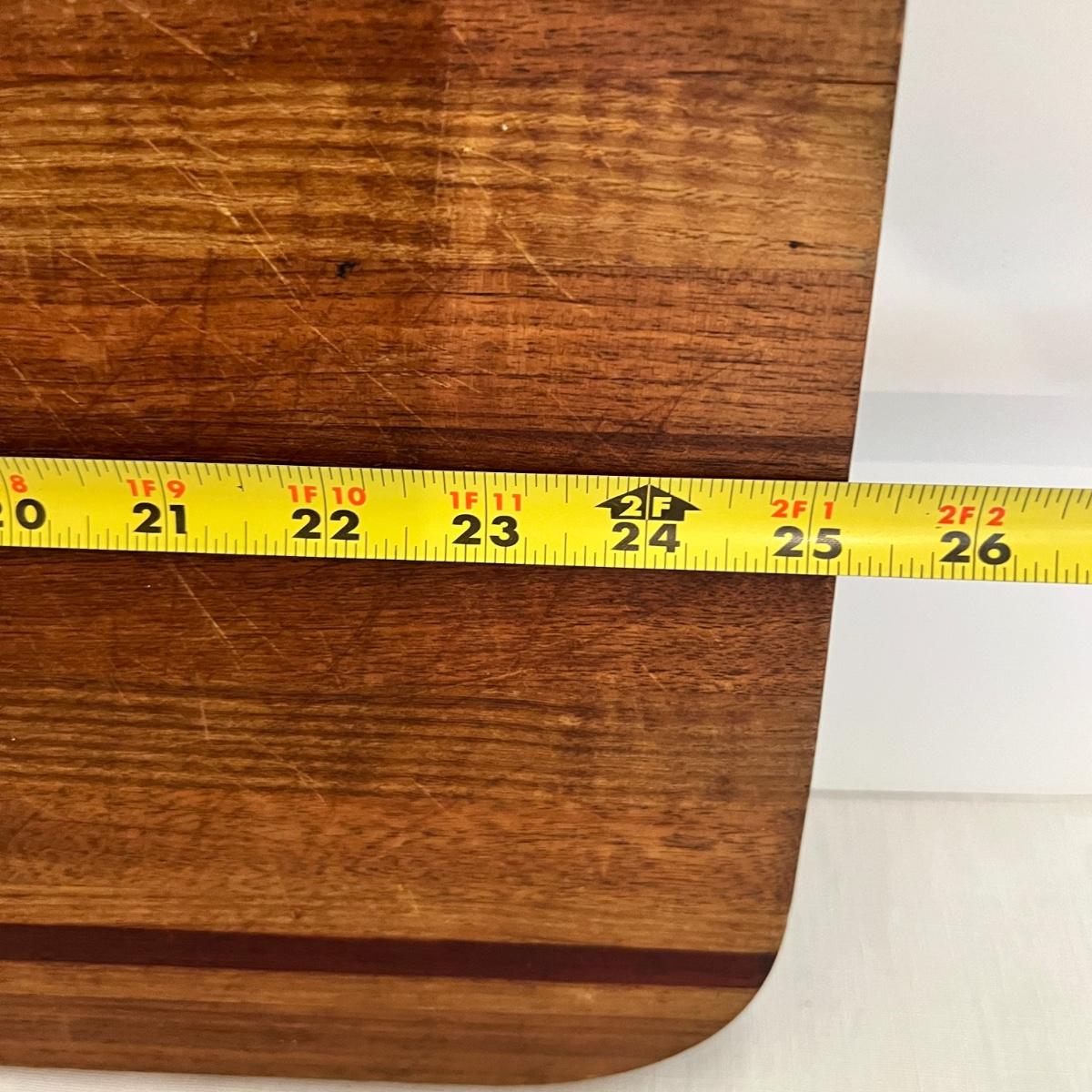 Great quality thick cutting board, 2 round wood canisters, brass inlaid napkin holder, primitive tray? and pipe.