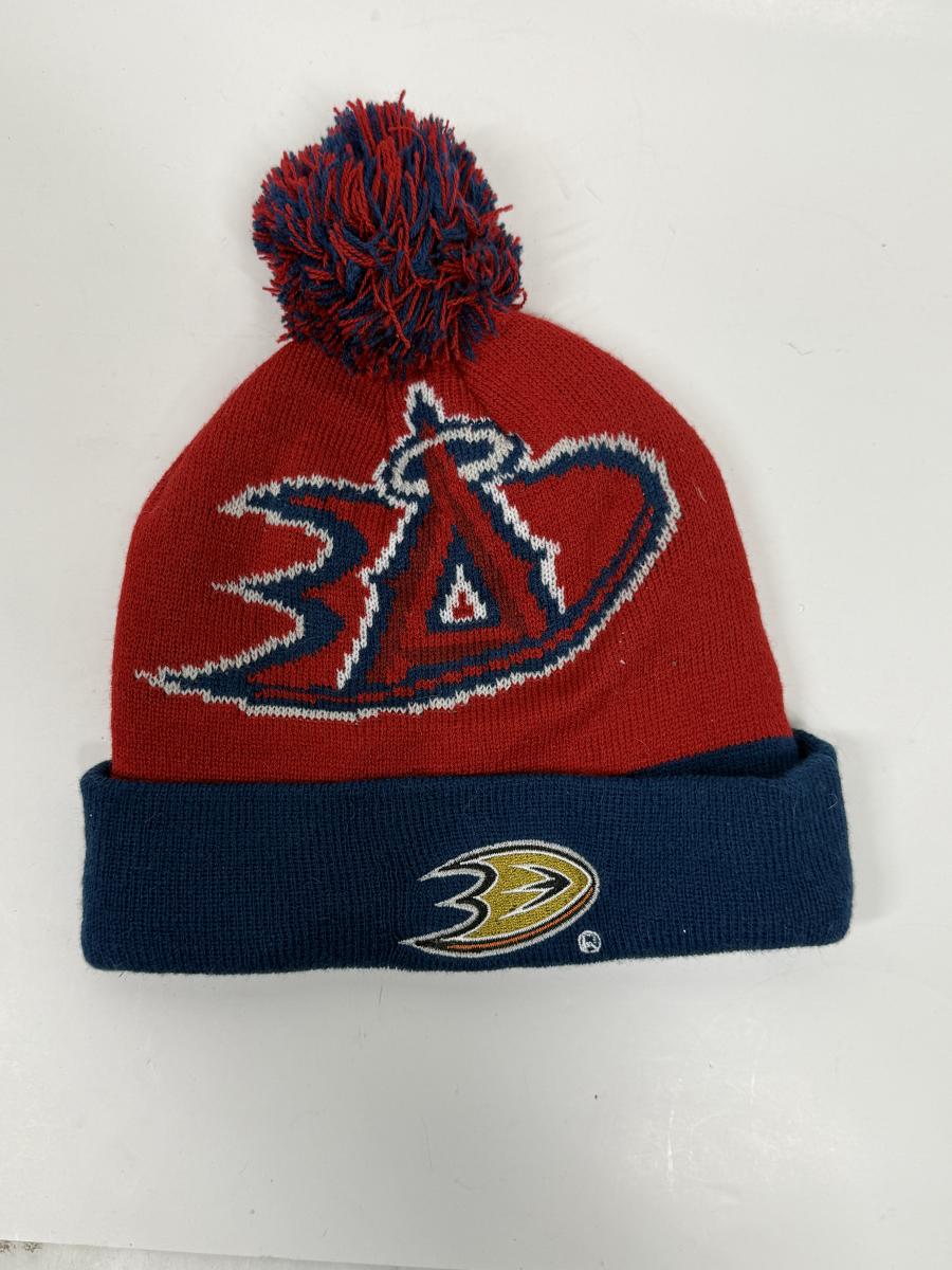 Los Angeles Angels Anaheim Ducks Crossover Beanie MLB NHL Sock Hat with Pompom