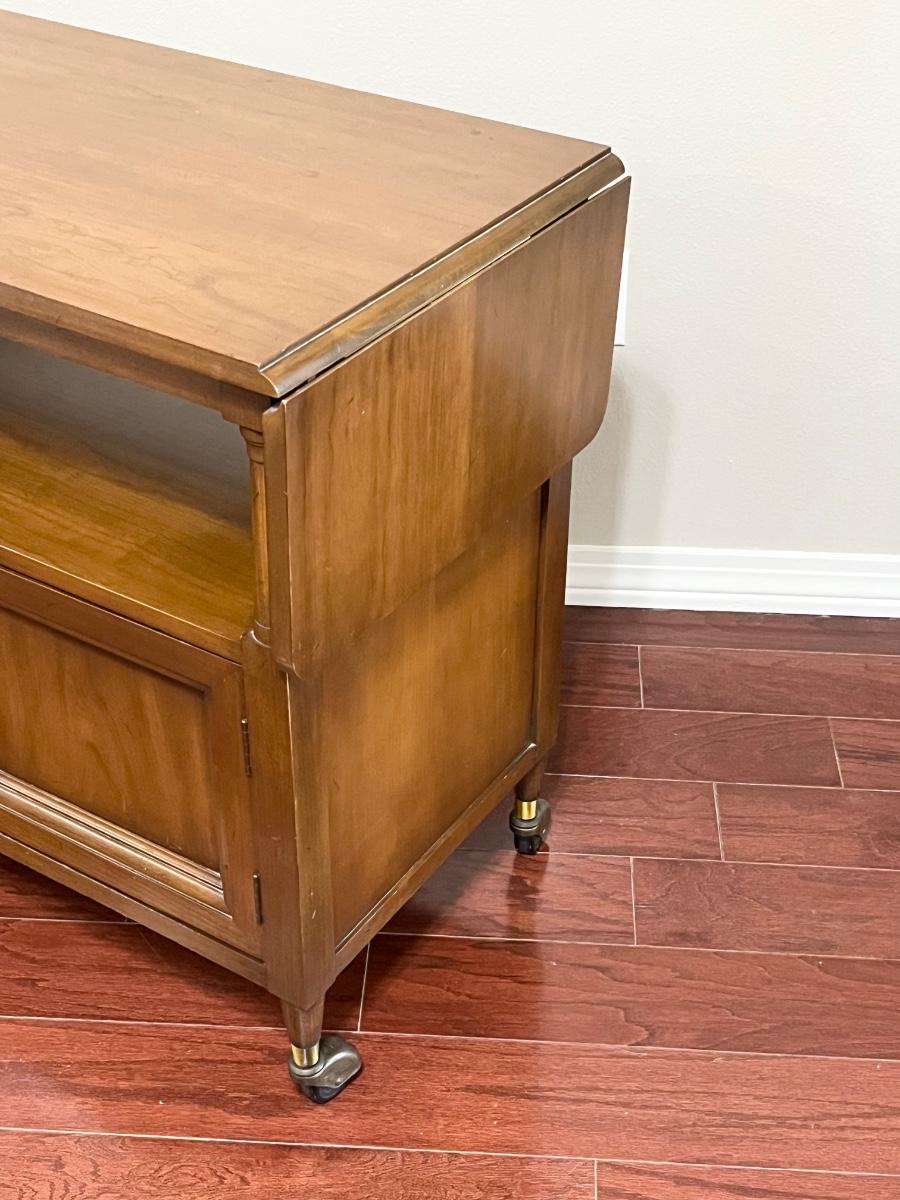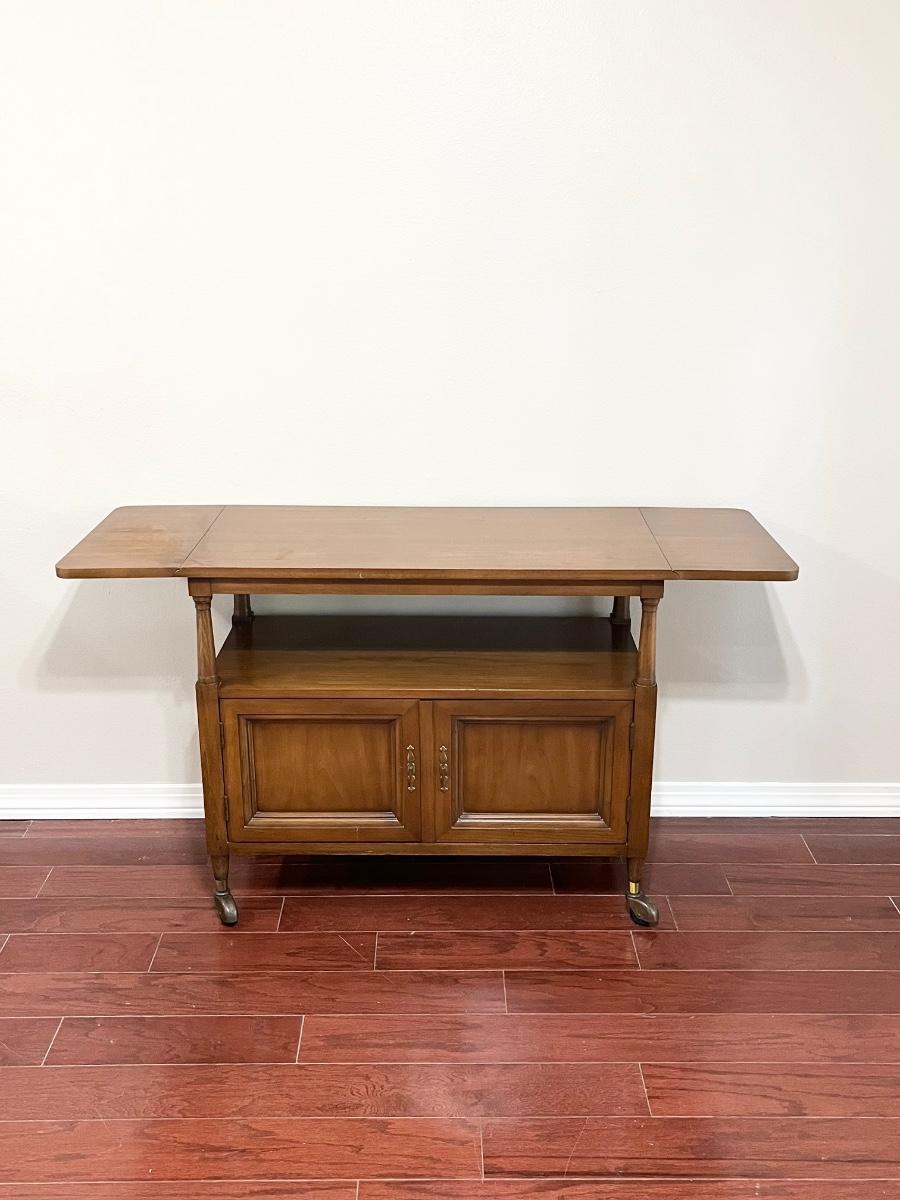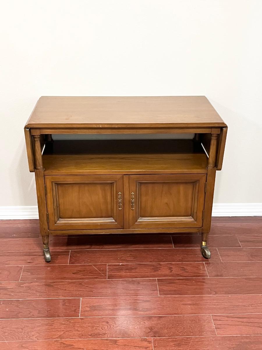 30” H x 53” W x 18” D with leaves up ~ minor scratches ~ minor wear & tear ~ one leaf has some finger nail polish on it ~ no brand name found
