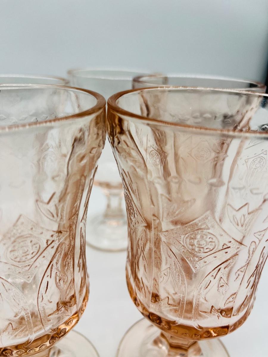 INDIANA GLASS ~ Set of (5) ~ Federal Pink Depression ~ "Madrid" ~ Footed Goblets