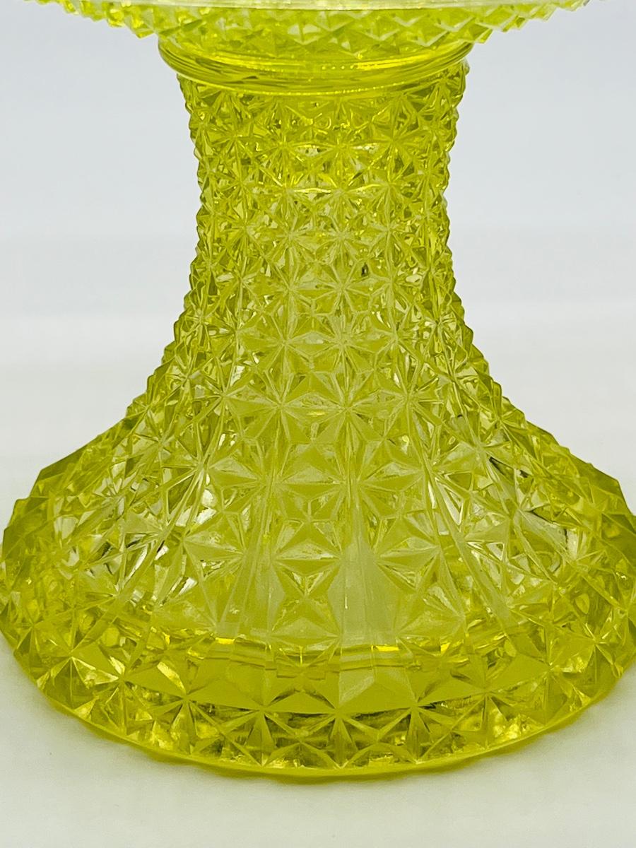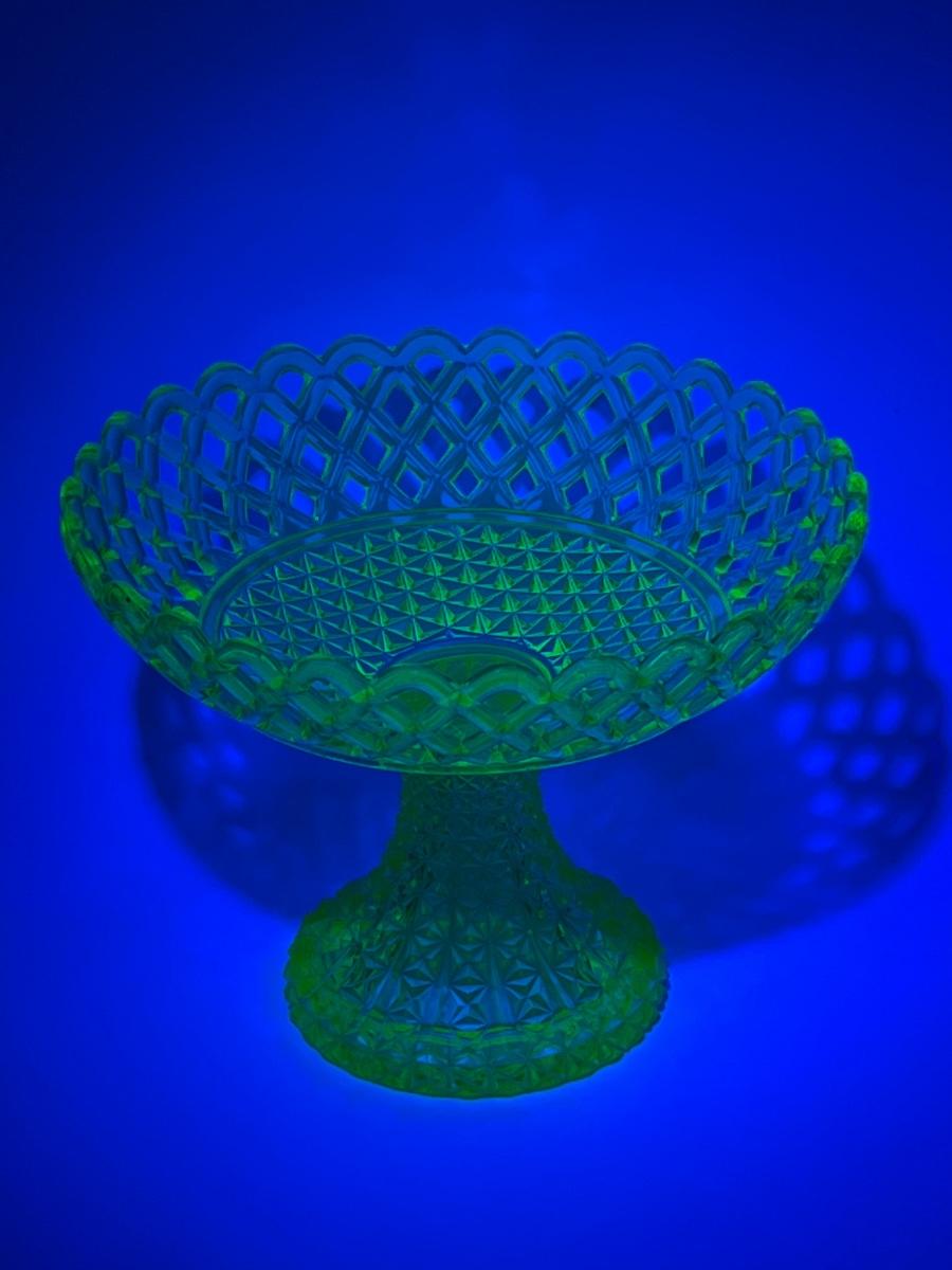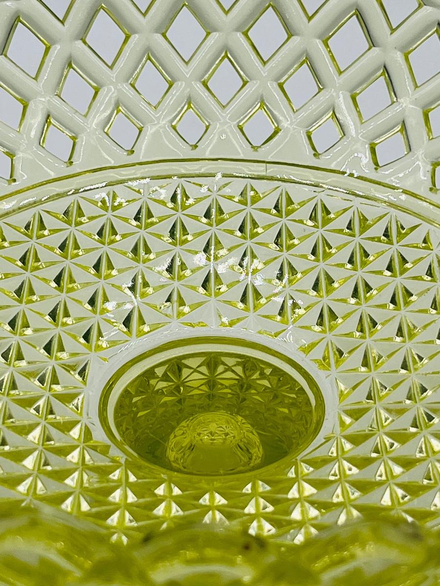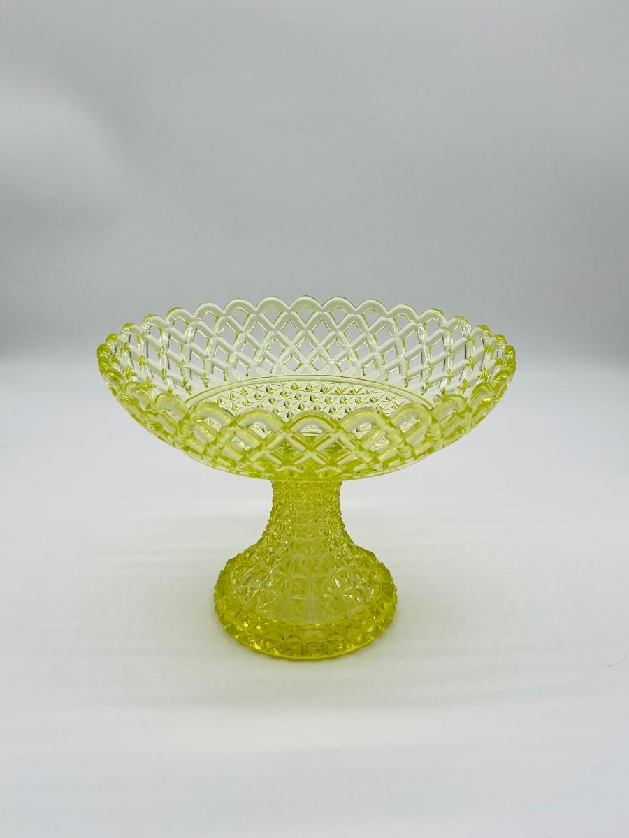 Yellow Lattice ~ Vaseline/Uranium ~ Footed Glass Bowl
