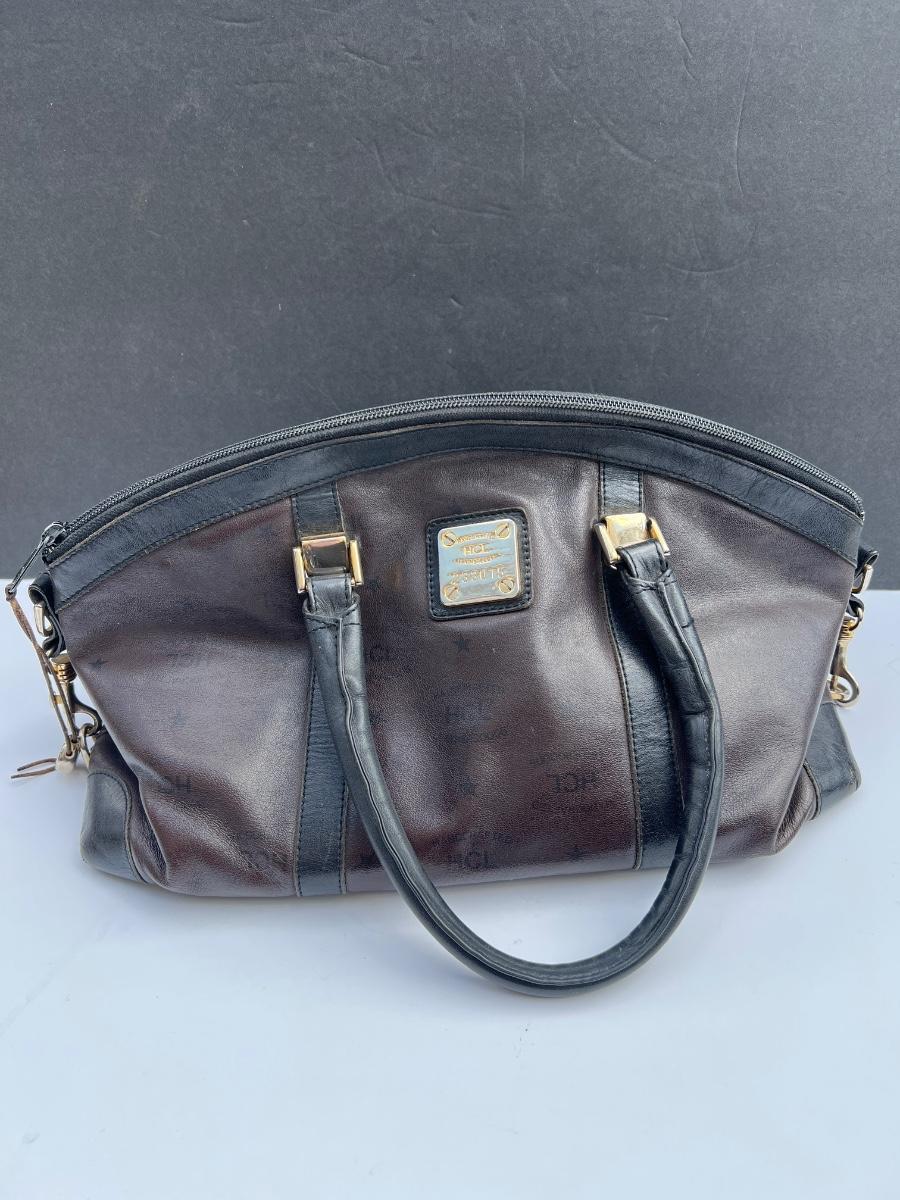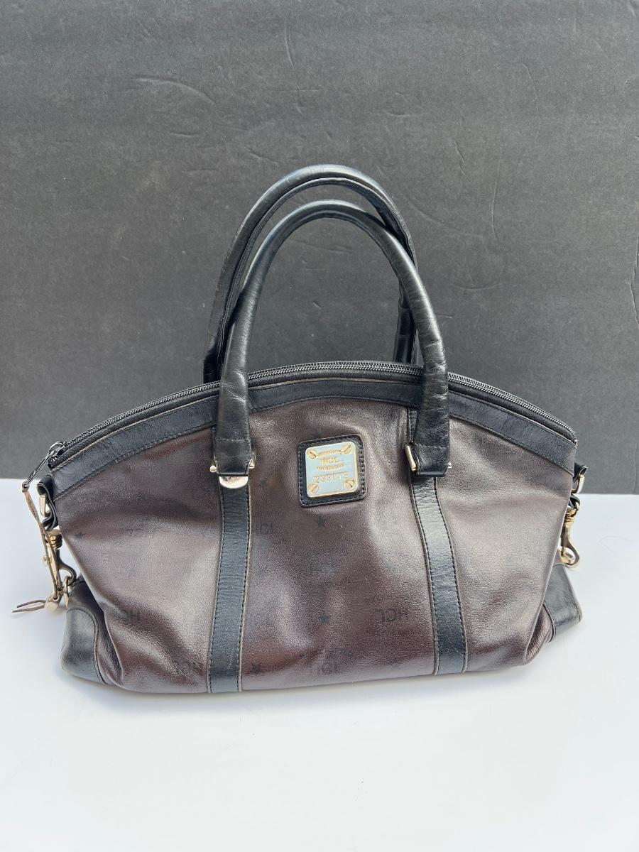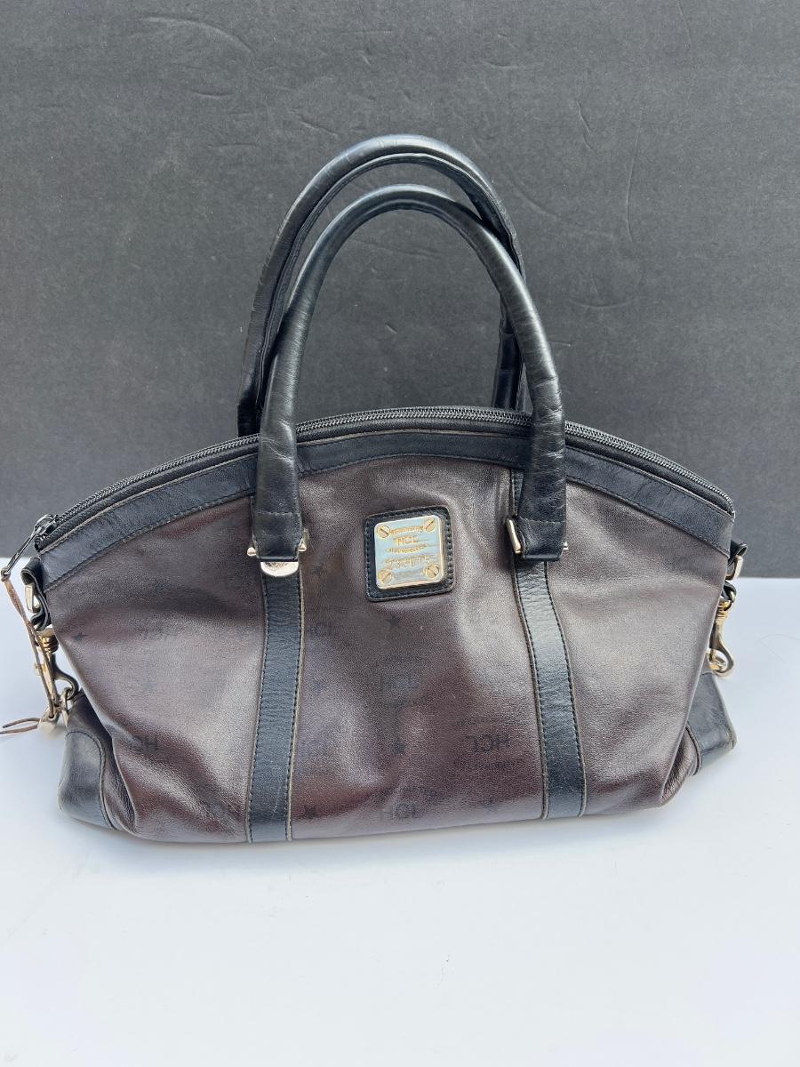 Handcrafted genuine leather HCL #233015 Brown Handbag with handles. HCL leather stamp on inside of purse. Zipper enclosure and zippered pocket inside. This is a vintage bag with minimal wear on outside and soiling to the suede on the inside. 13” x 8.5”
