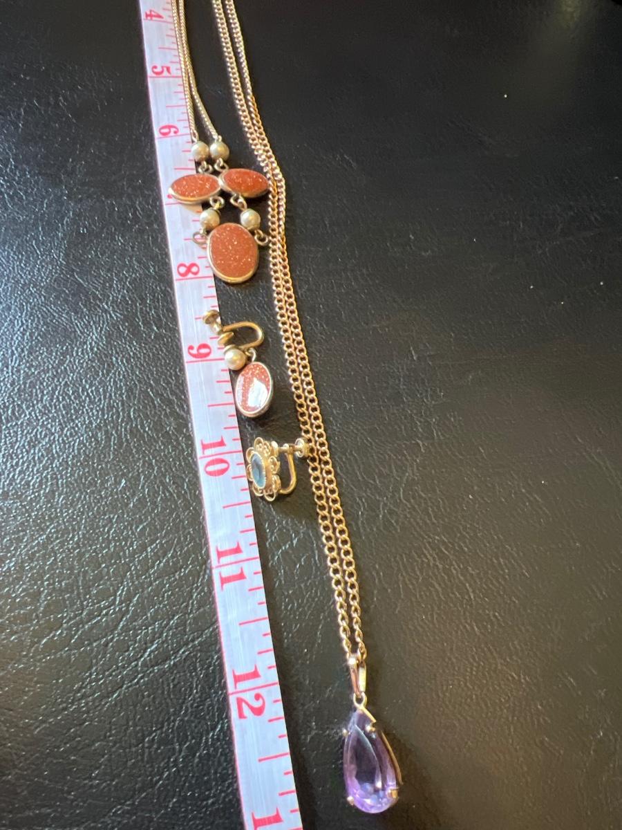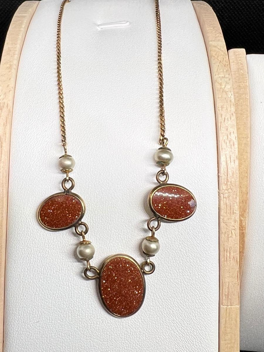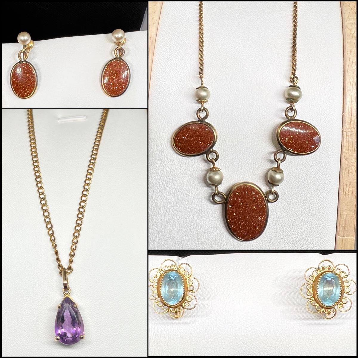 Vintage Gold Filled Jewlery Lot - Van Dell Goldstone Pearl Set, GF Necklace, GF Earrings